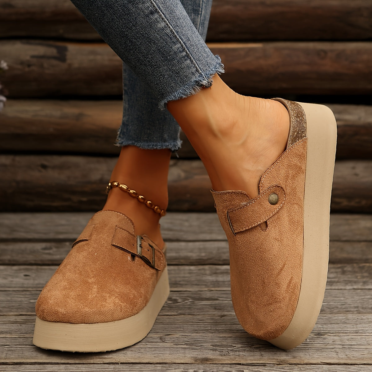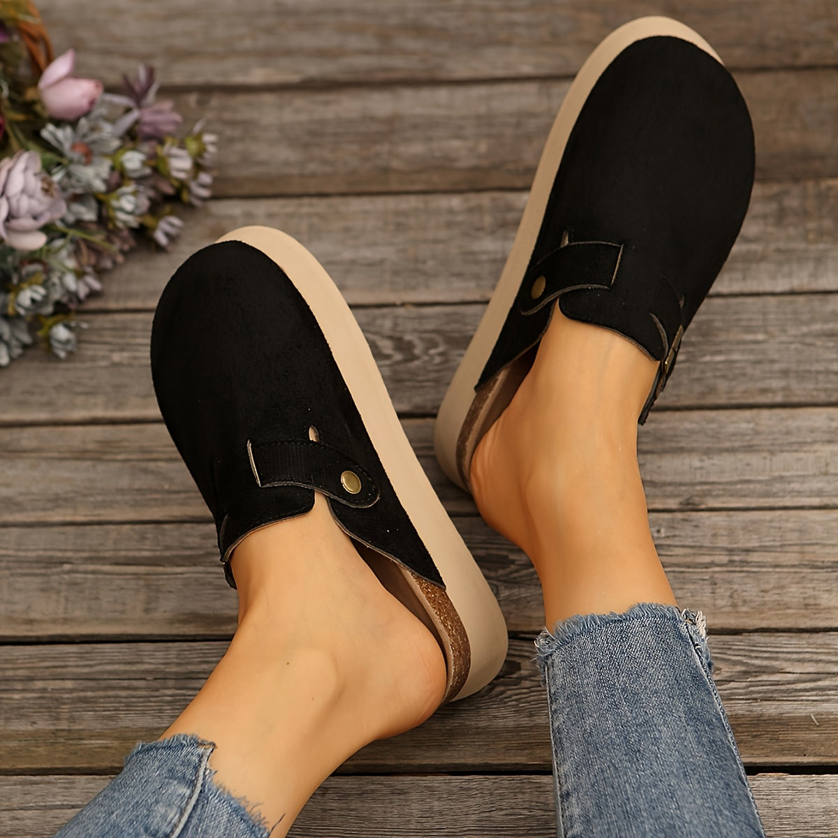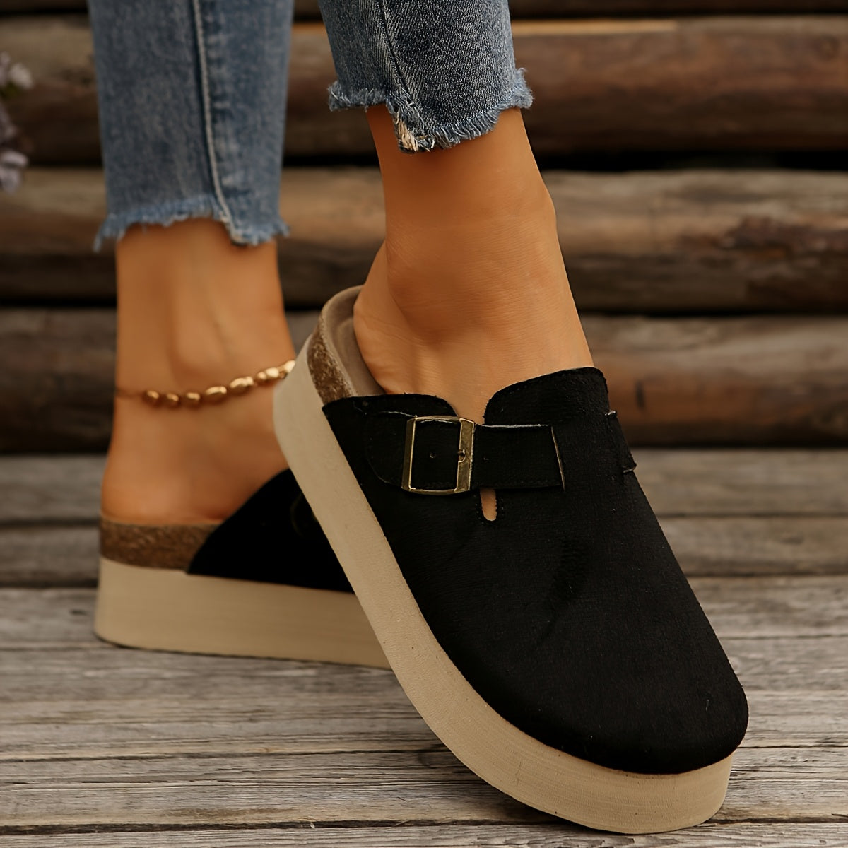 Женские повседневные мюли с толстой подошвой в черном цвете, стильная обувь для комфорта