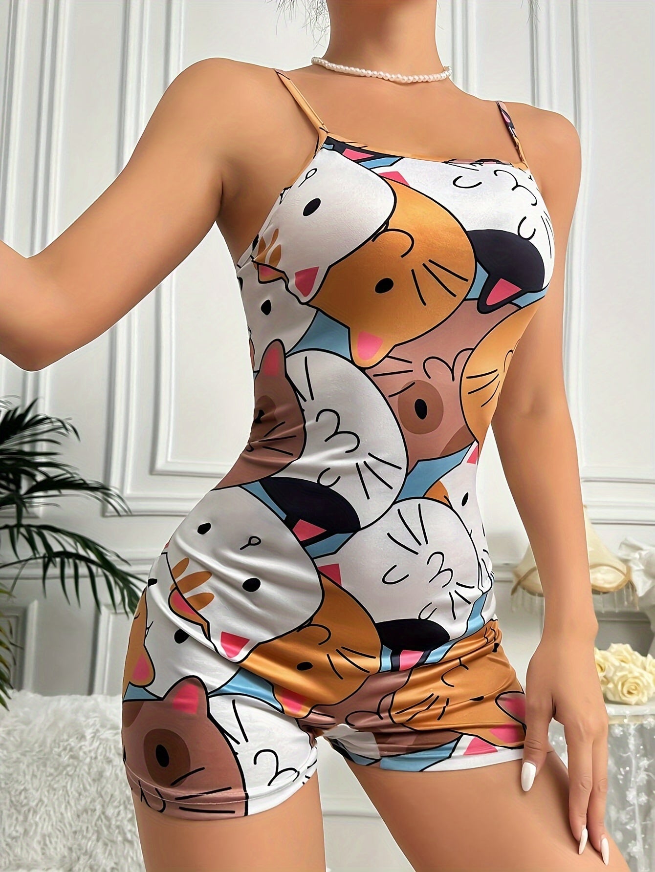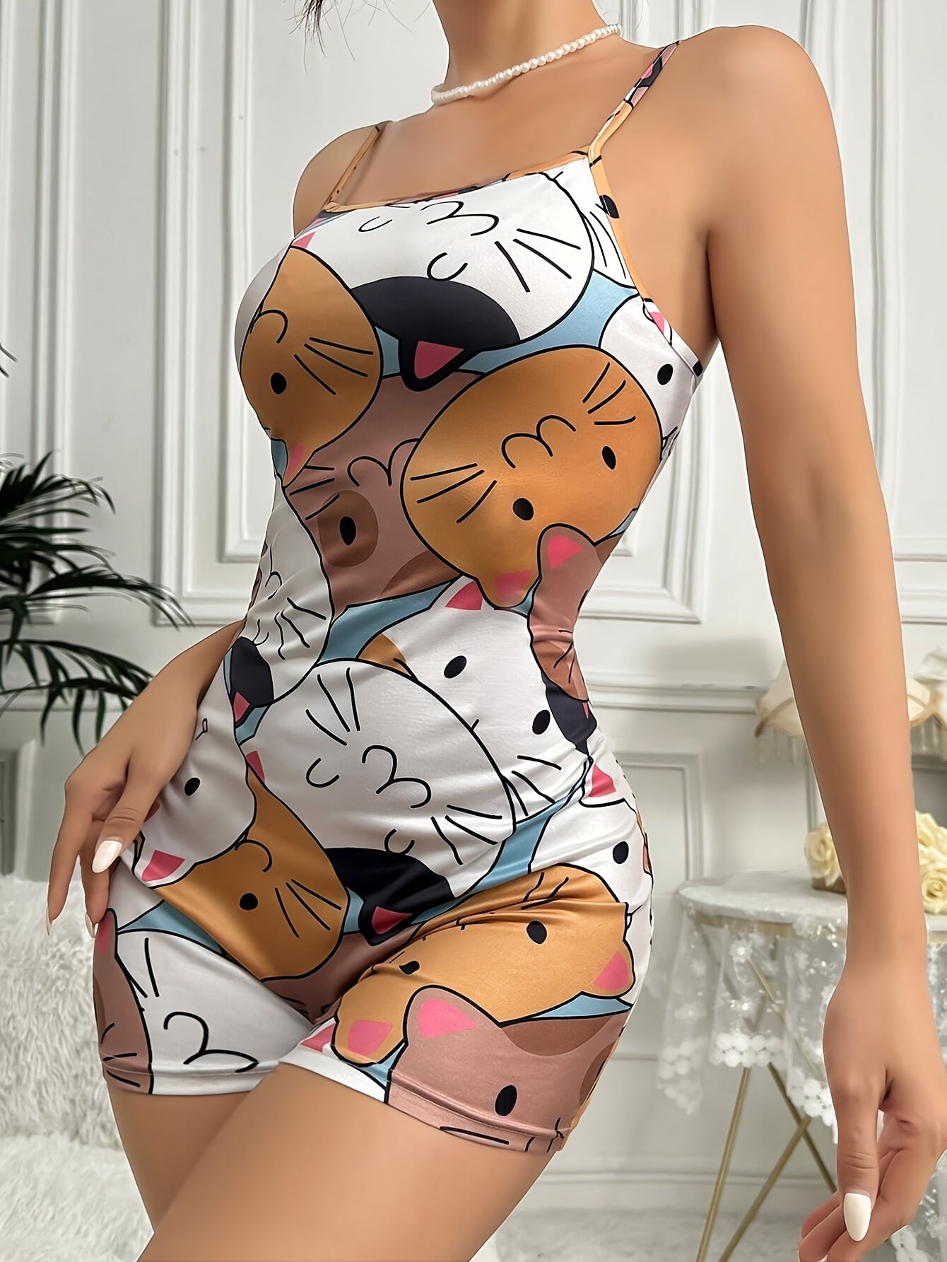 Женский комбинезон с кошачьим принтом, идеальный для лета.