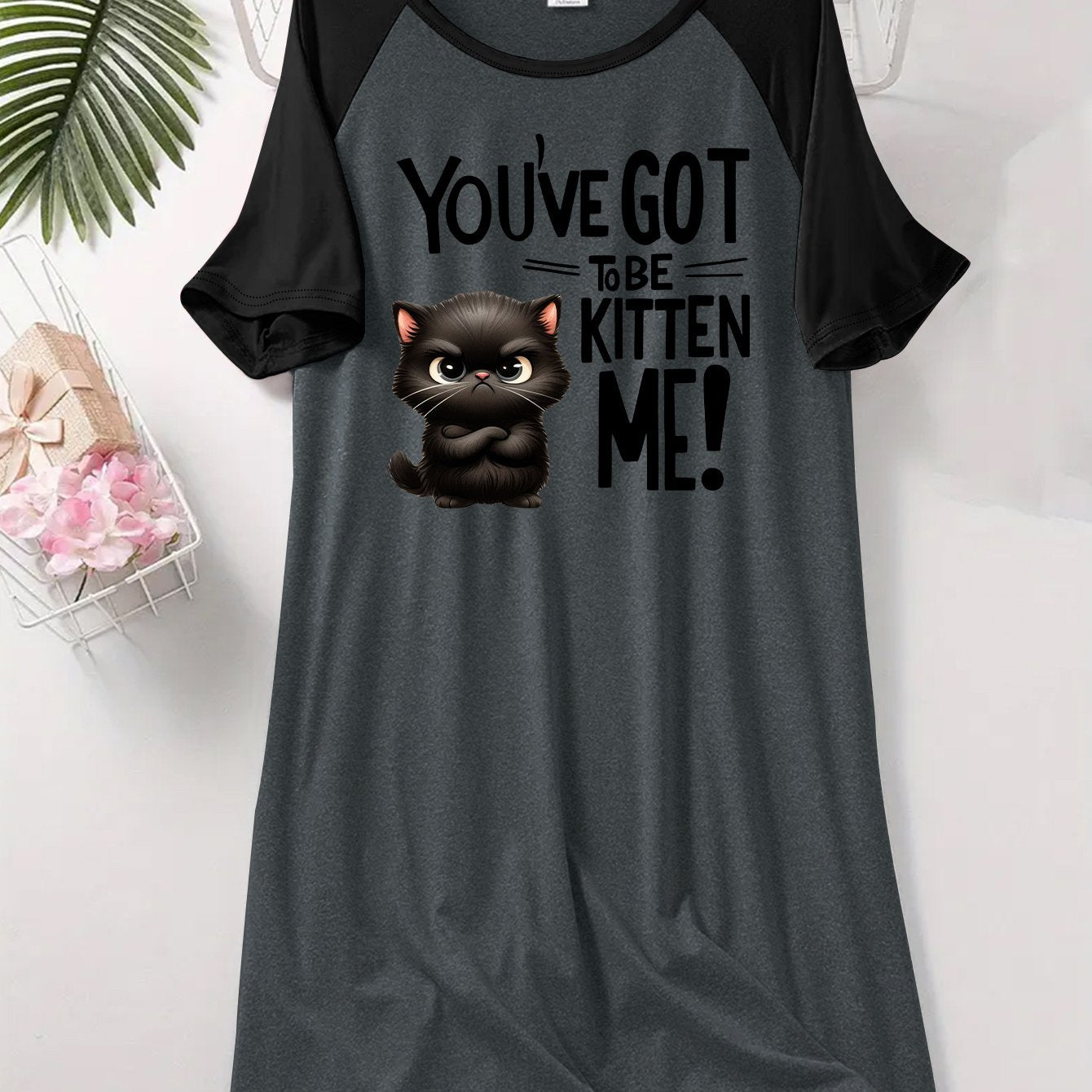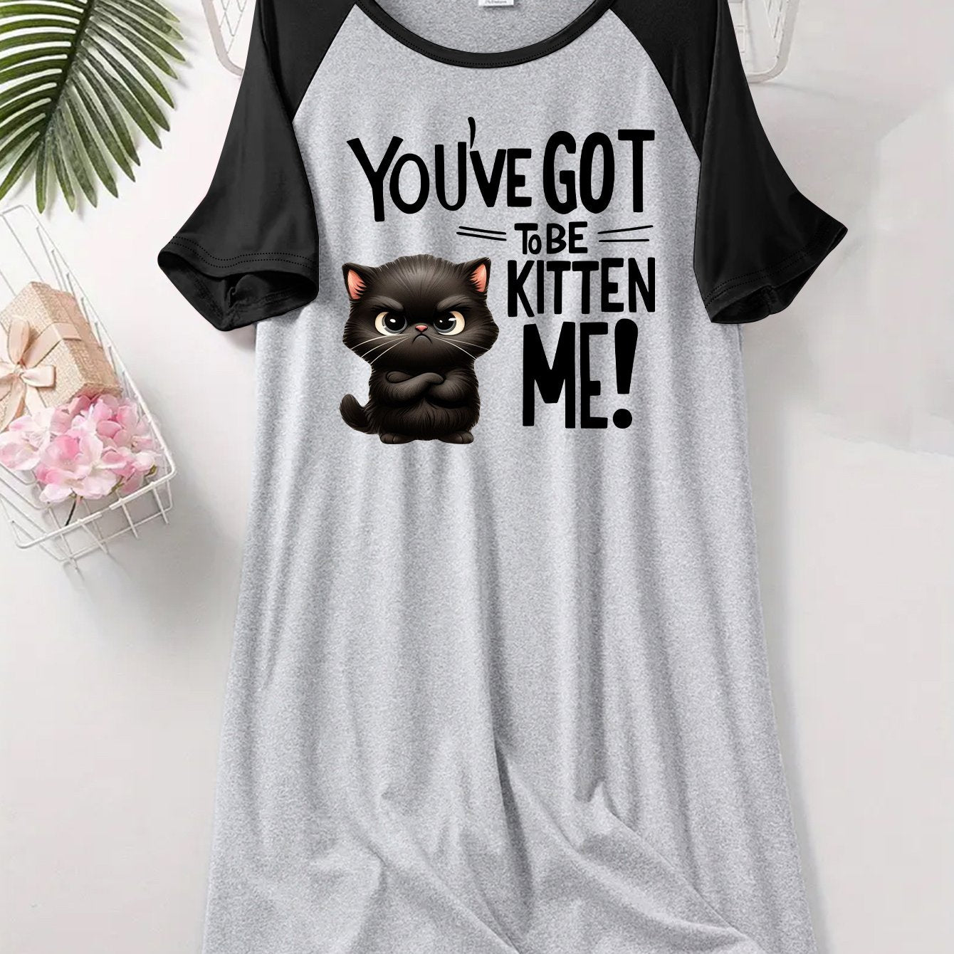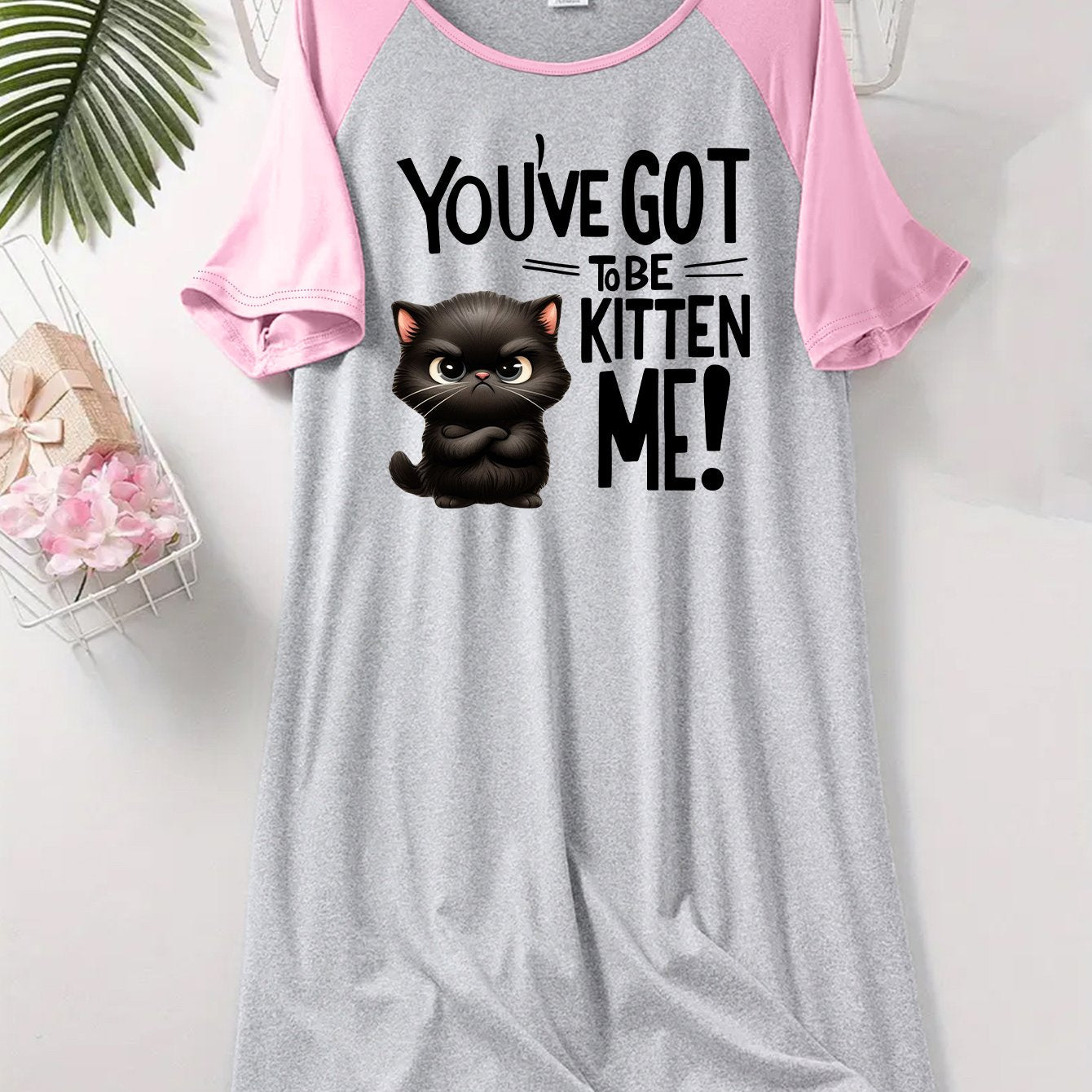 Women’s Cat Print Sleep Dress Short Sleeve Lounge Nightgown Soft Stretchy Fabric