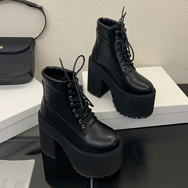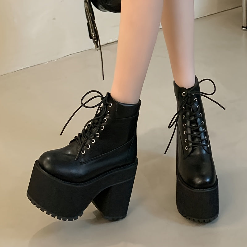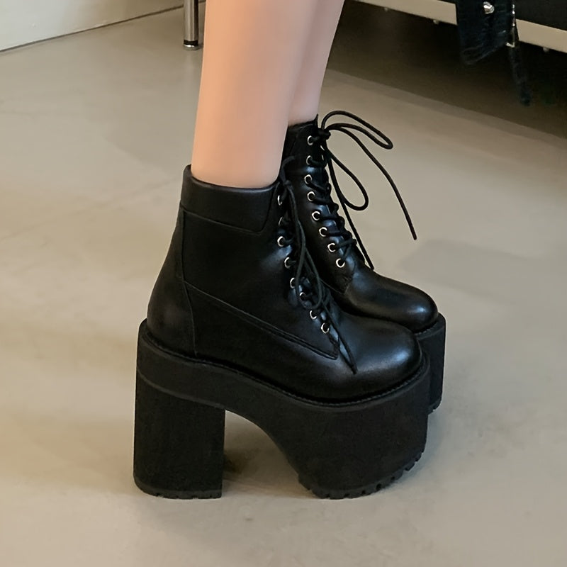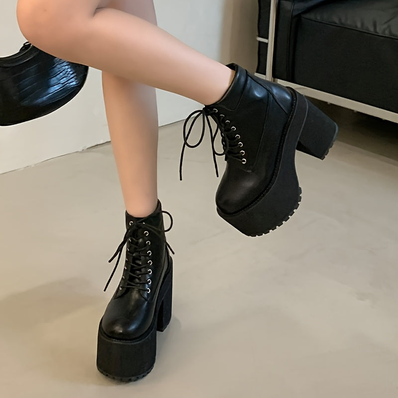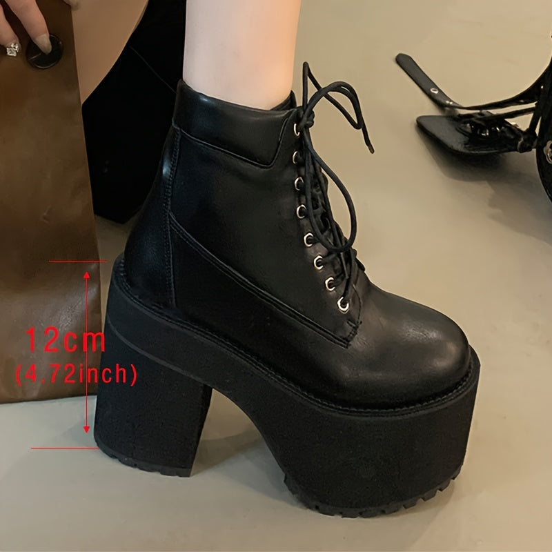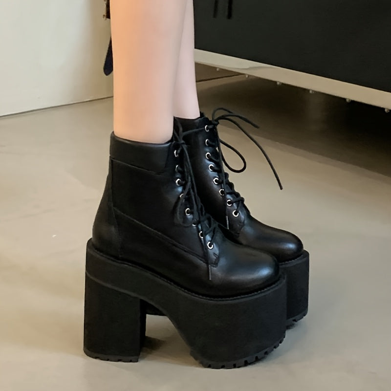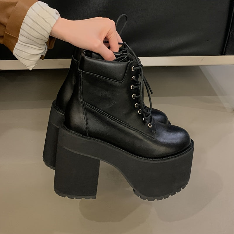 Женские массивные платформенные ботинки на щиколотке однотонные с шнуровкой на широком каблуке