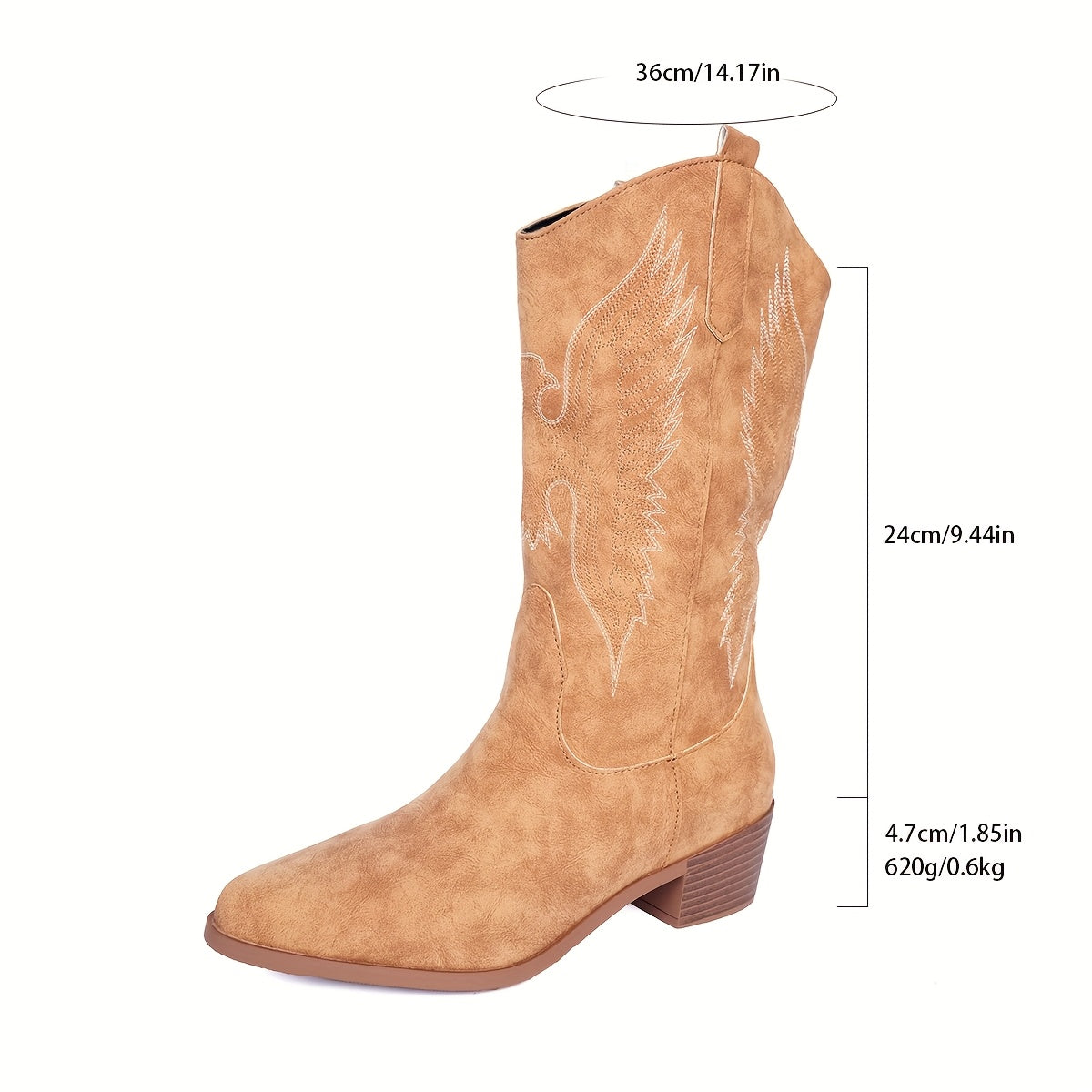 Женские ковбойские сапоги до середины икры, западный стиль, на Slip-On с вышивкой в виде крыльев