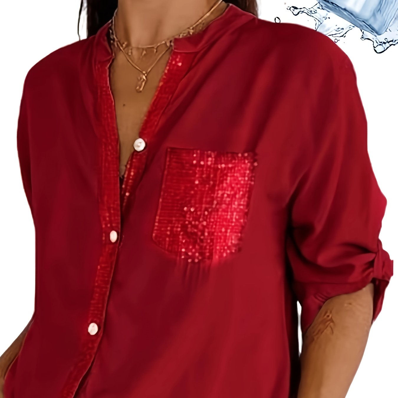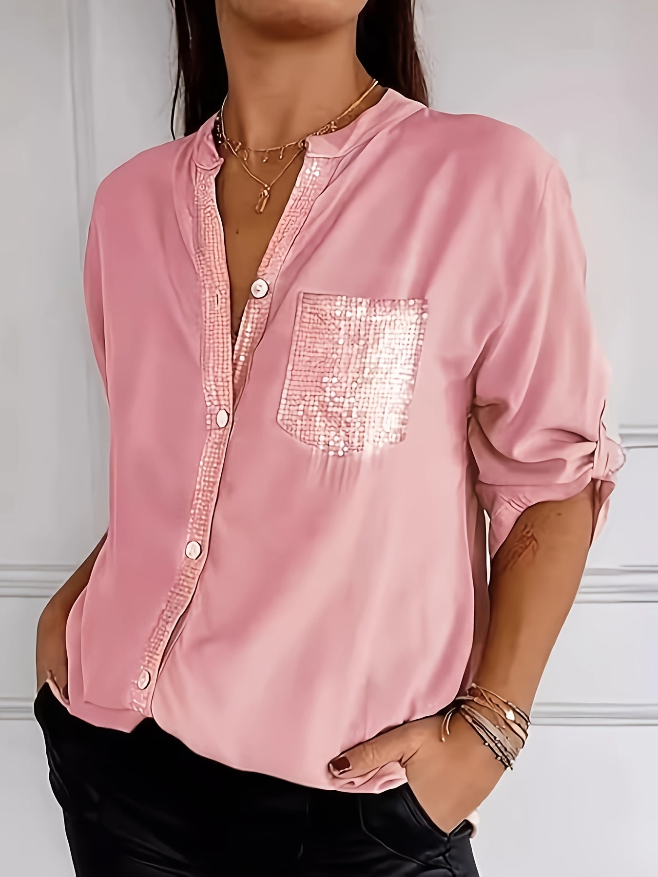 Женская элегантная бежевую рубашка с пуговицами - легкий полиэстер, можно стирать в машине, идеально подходит для весны и осени