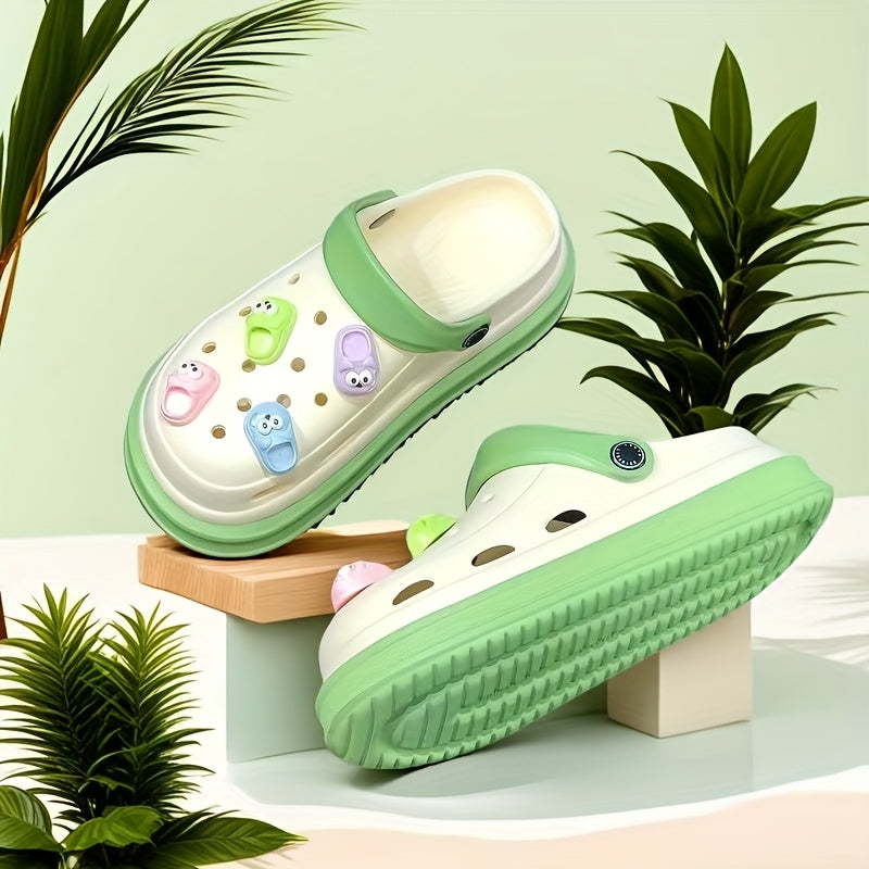 Women's EVA Beach Sandals Light Beige Green Cartoon Frog Ventilation Anti-Slip