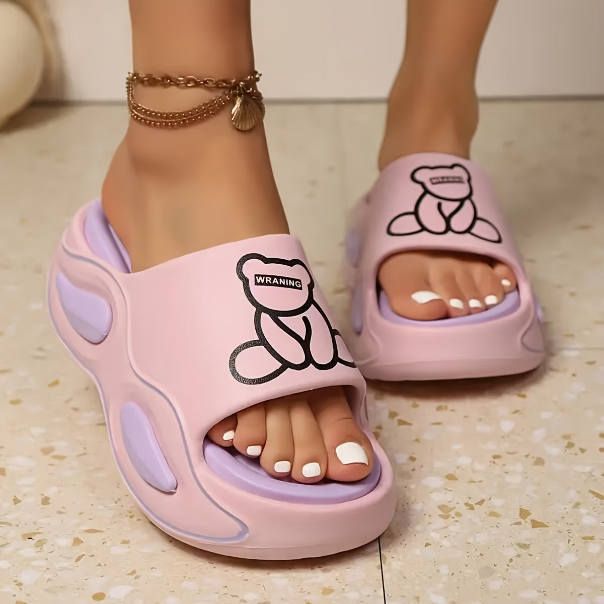 Женские шлепанцы на платформе EVA белые и черные милые мультяшные медведи повседневные сандалии