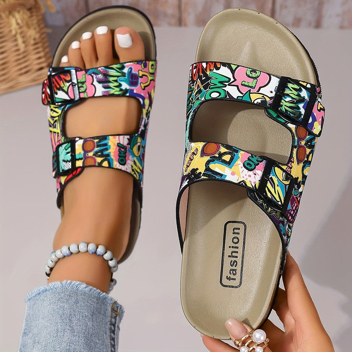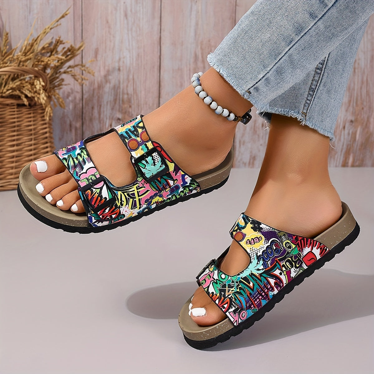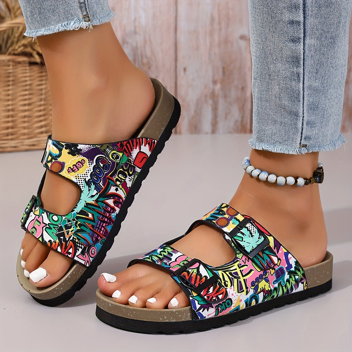 Женские тканевые плоские сандалии с открытым носком, повседневные летние массивные комфортные