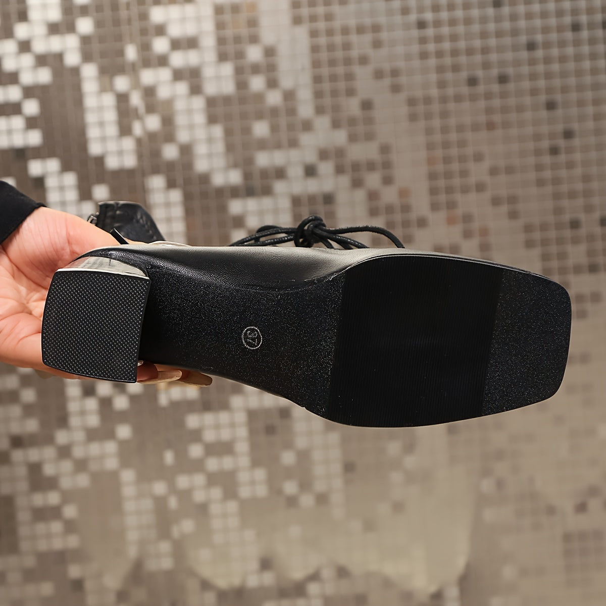 Женские ботинки на каблуке-чunk с массивной подошвой из искусственной кожи, черные, зимняя обувь