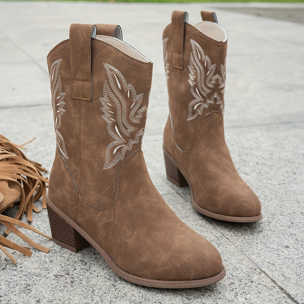 Женские сапоги из искусственной кожи в стиле вестерн с ковбойским дизайном и узором облаков