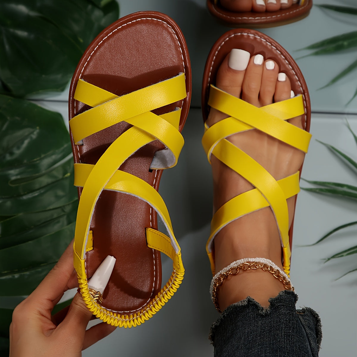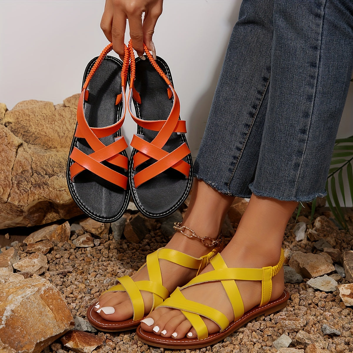Женские плоские сандалии в римском стиле с переплётными ремешками, открытым носком, летние пляжные обувь