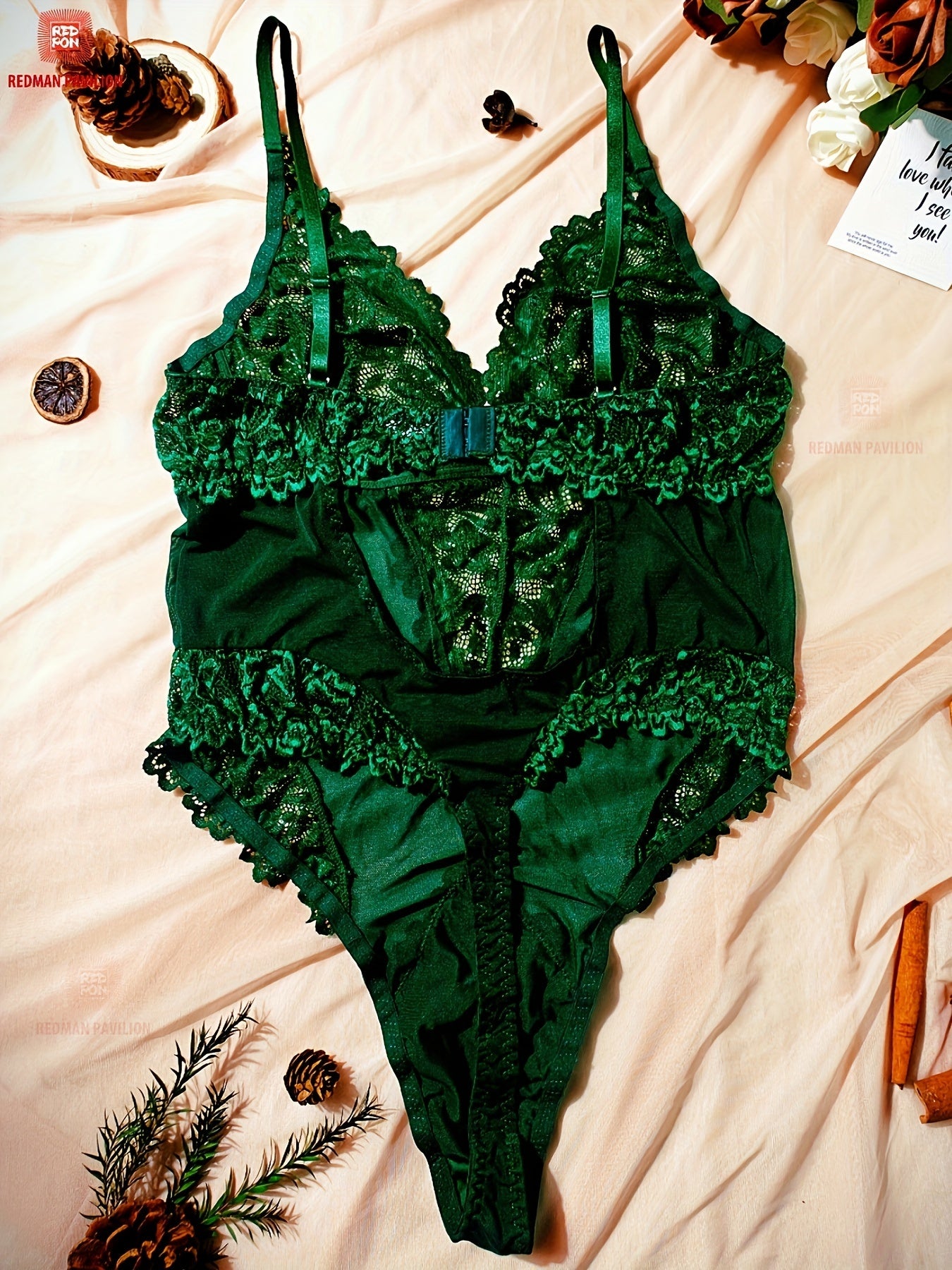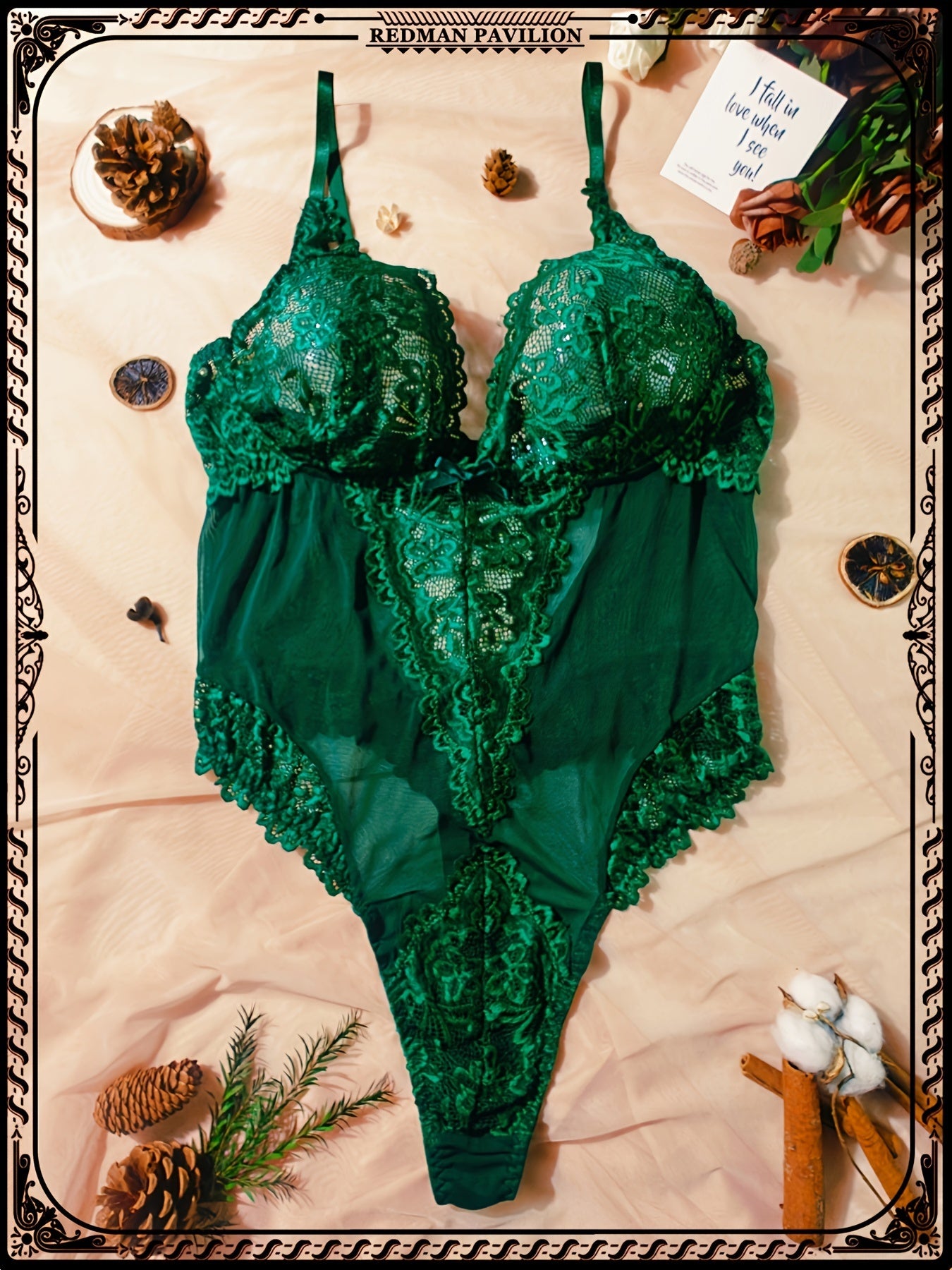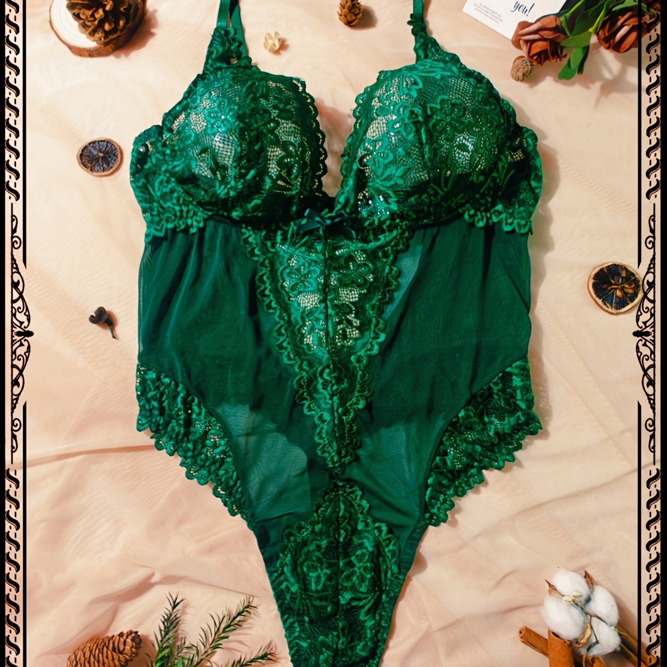 Женский кружевной боди с цветочным узором, с вырезом «сердце» и открытой спиной, зелёный, монокоррект