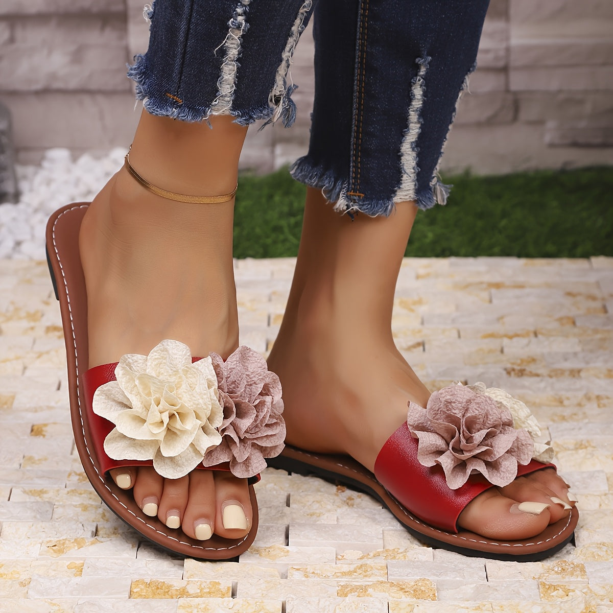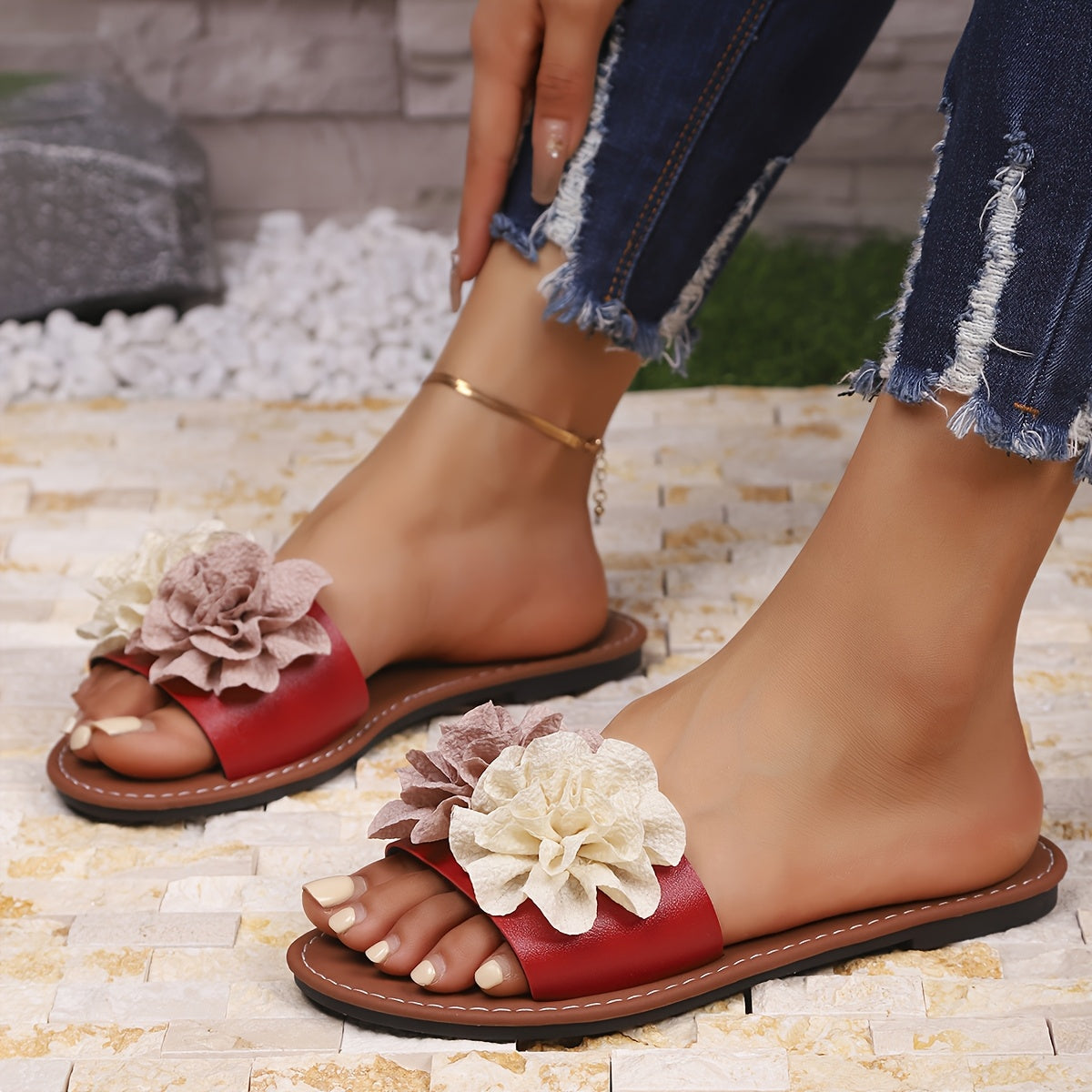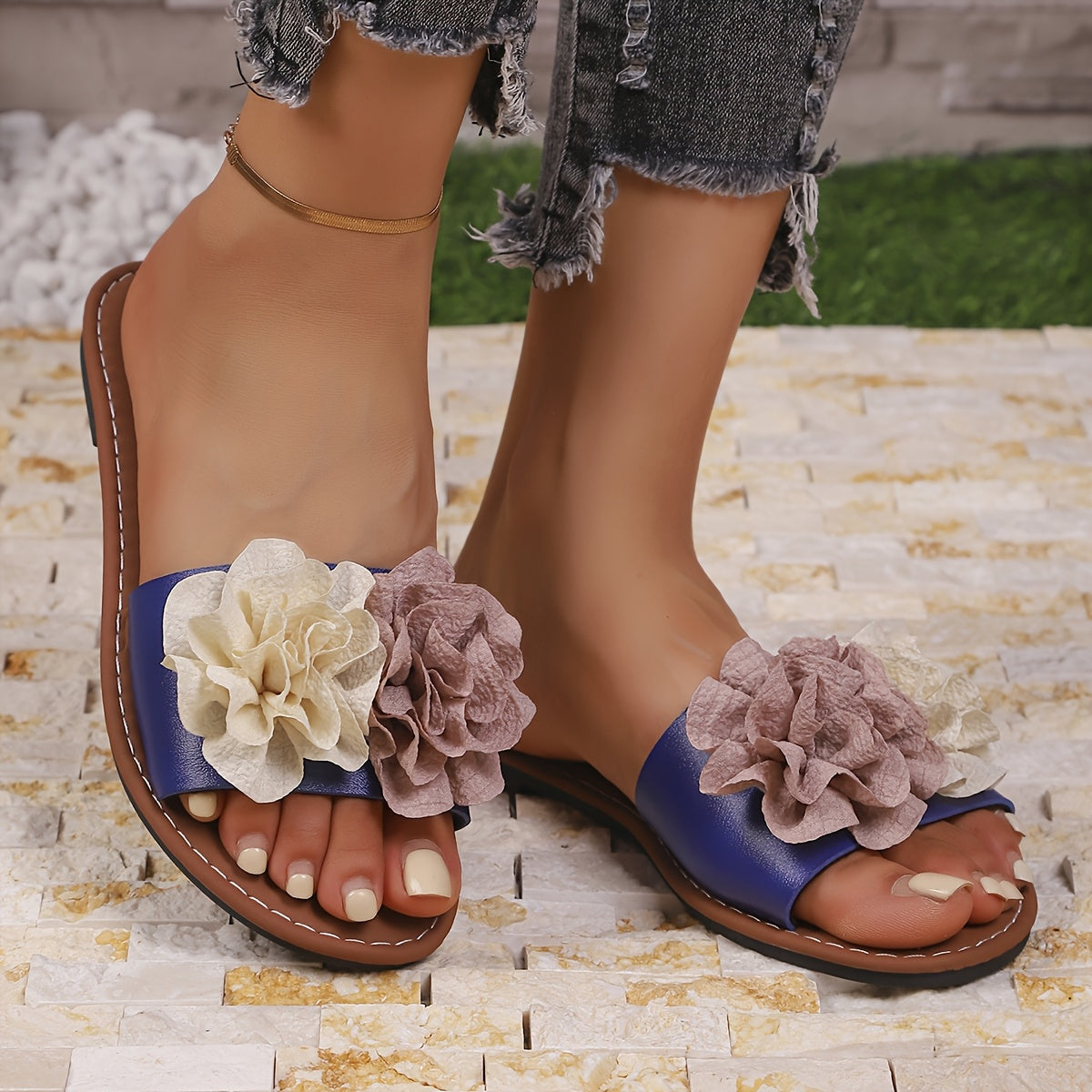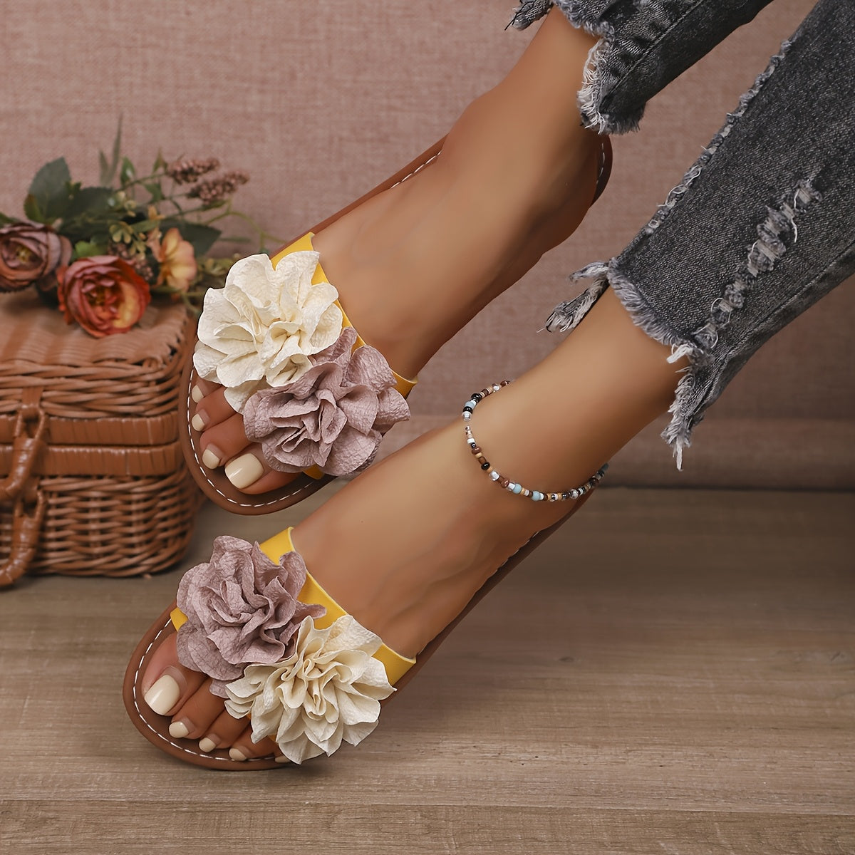 Женские цветочные шлепанцы на плоской подошве с открытым носком, повседневные бежевые и коричневые