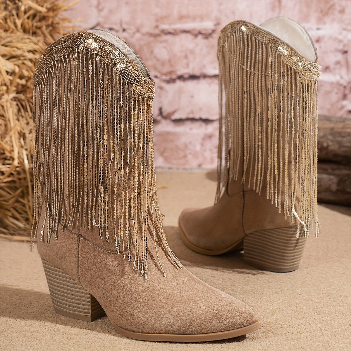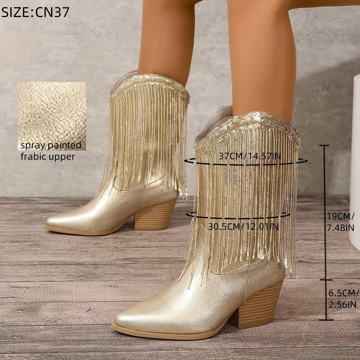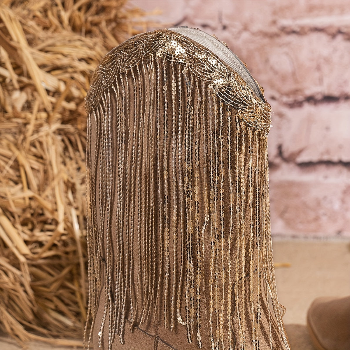 Женские ботинки с блестками и пайетками, с кисточками из пайеток, с острым носком, вестерн-карнавал ботинки