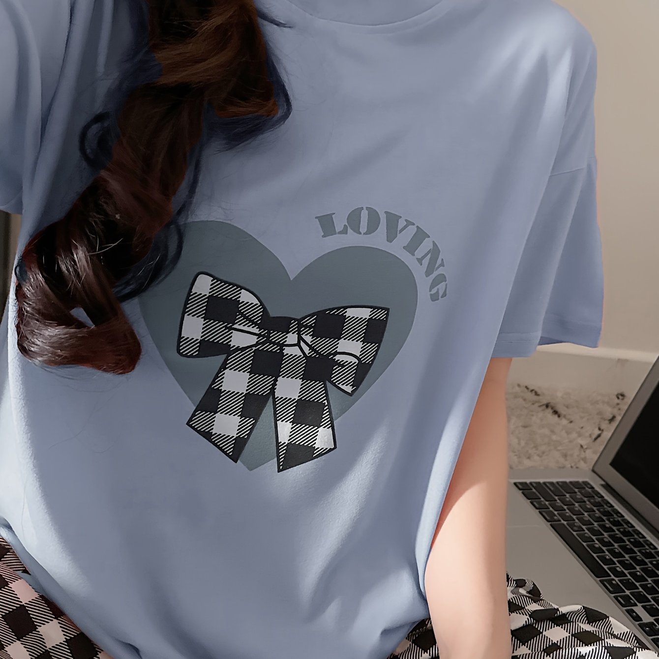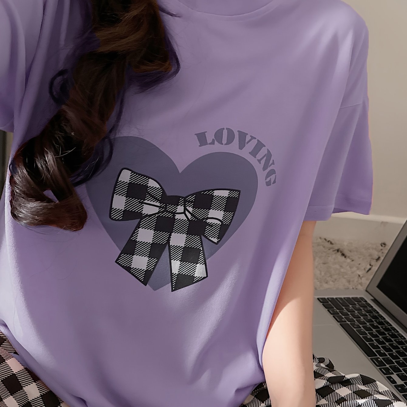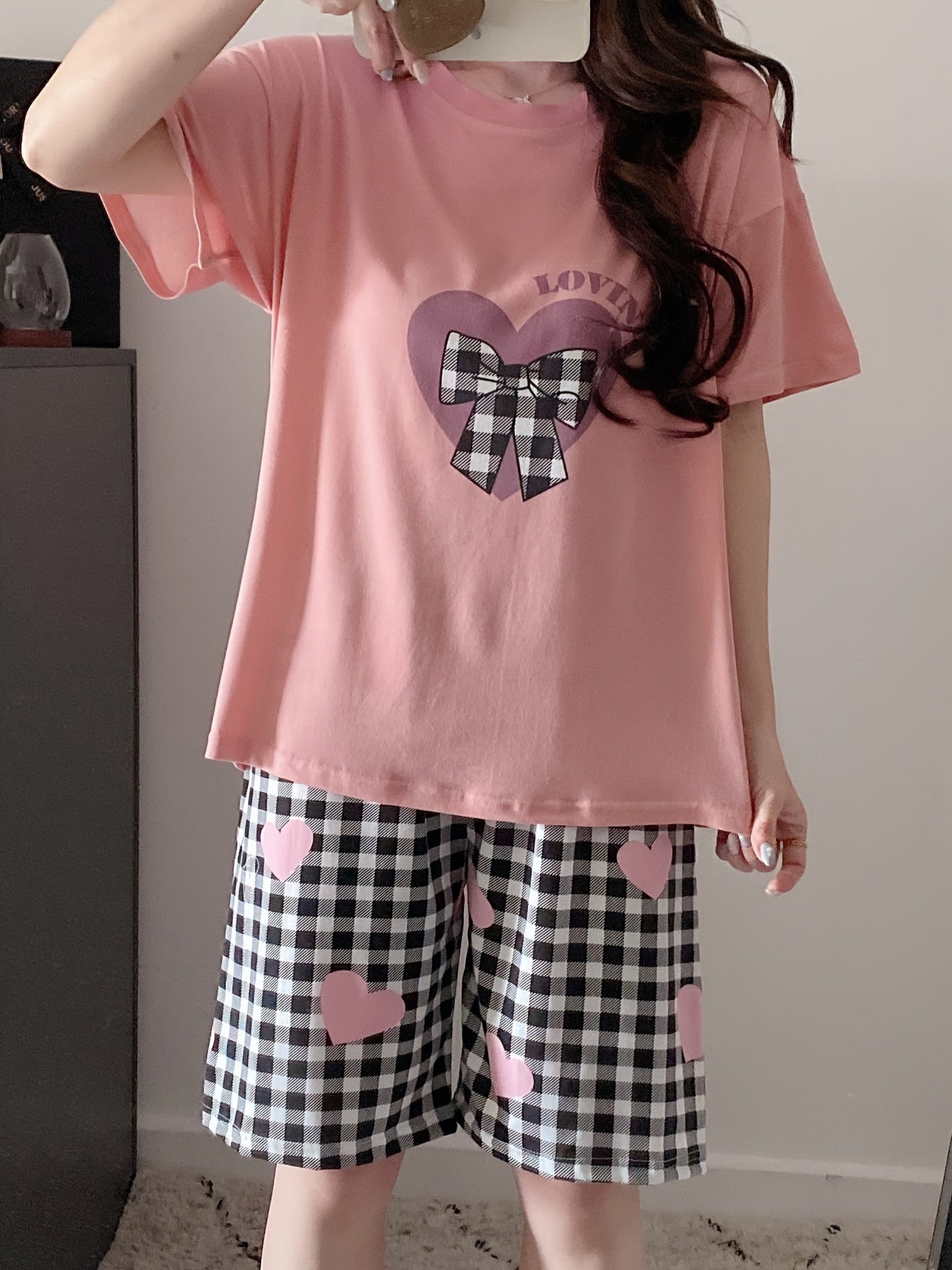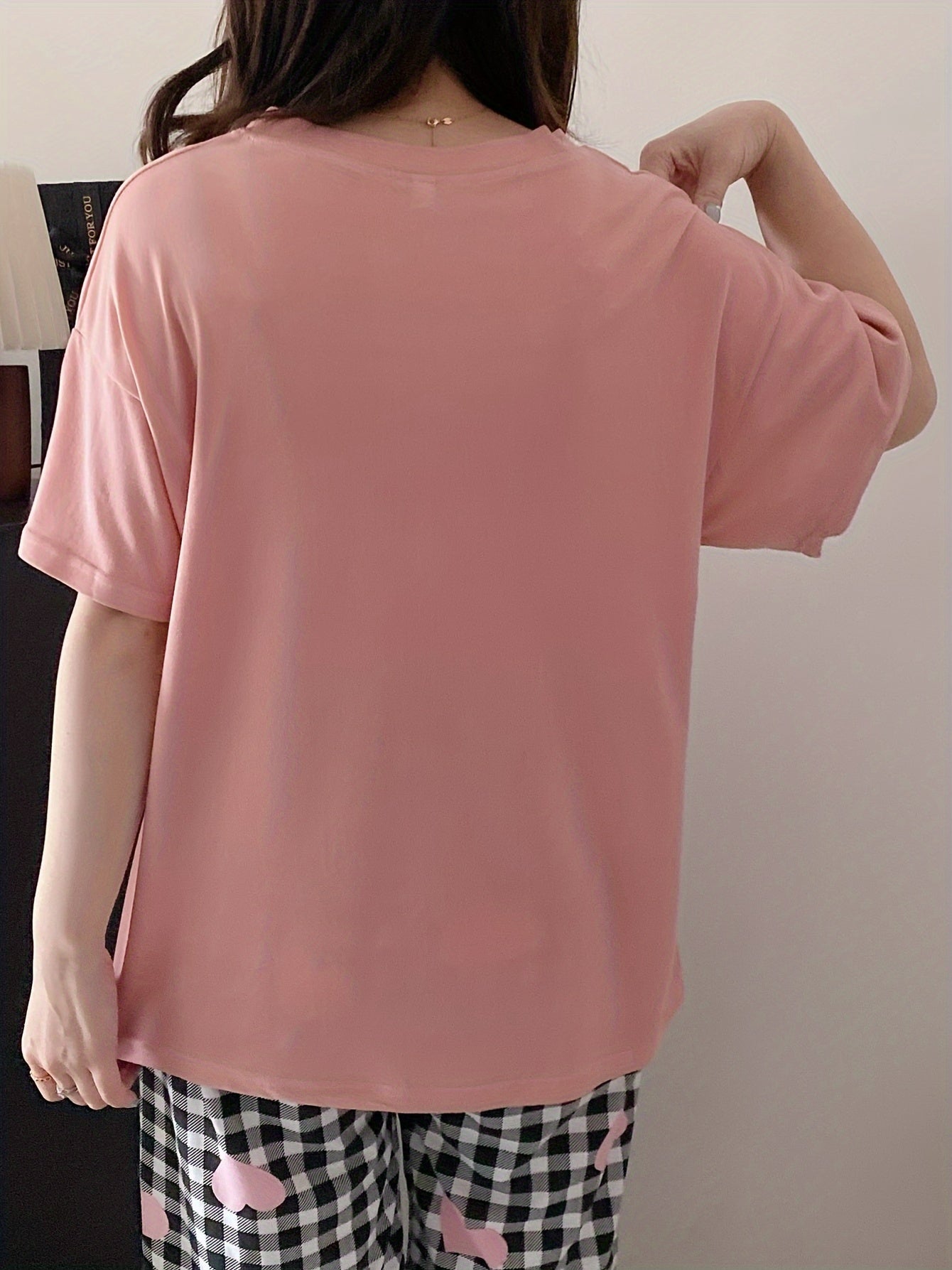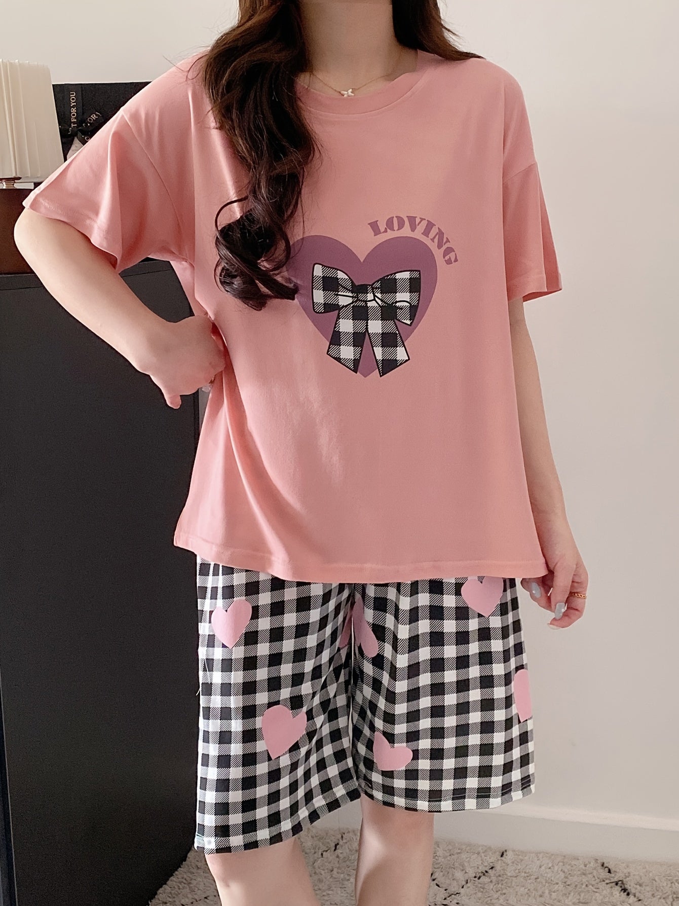 Женский комплект пижамы с топом и шортами в клетку, свободного кроя и комфортный