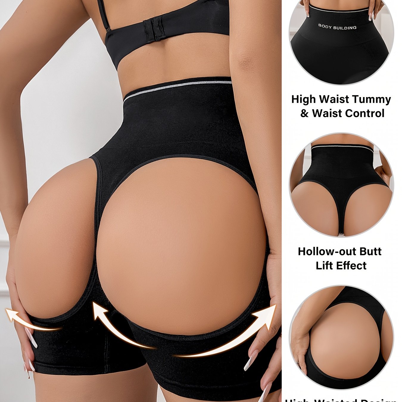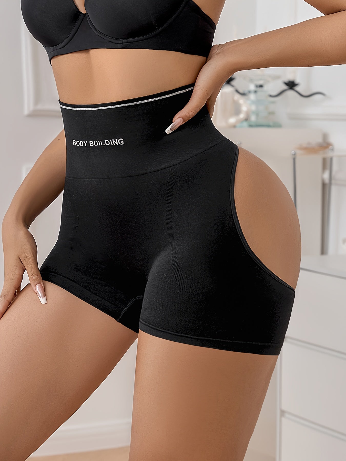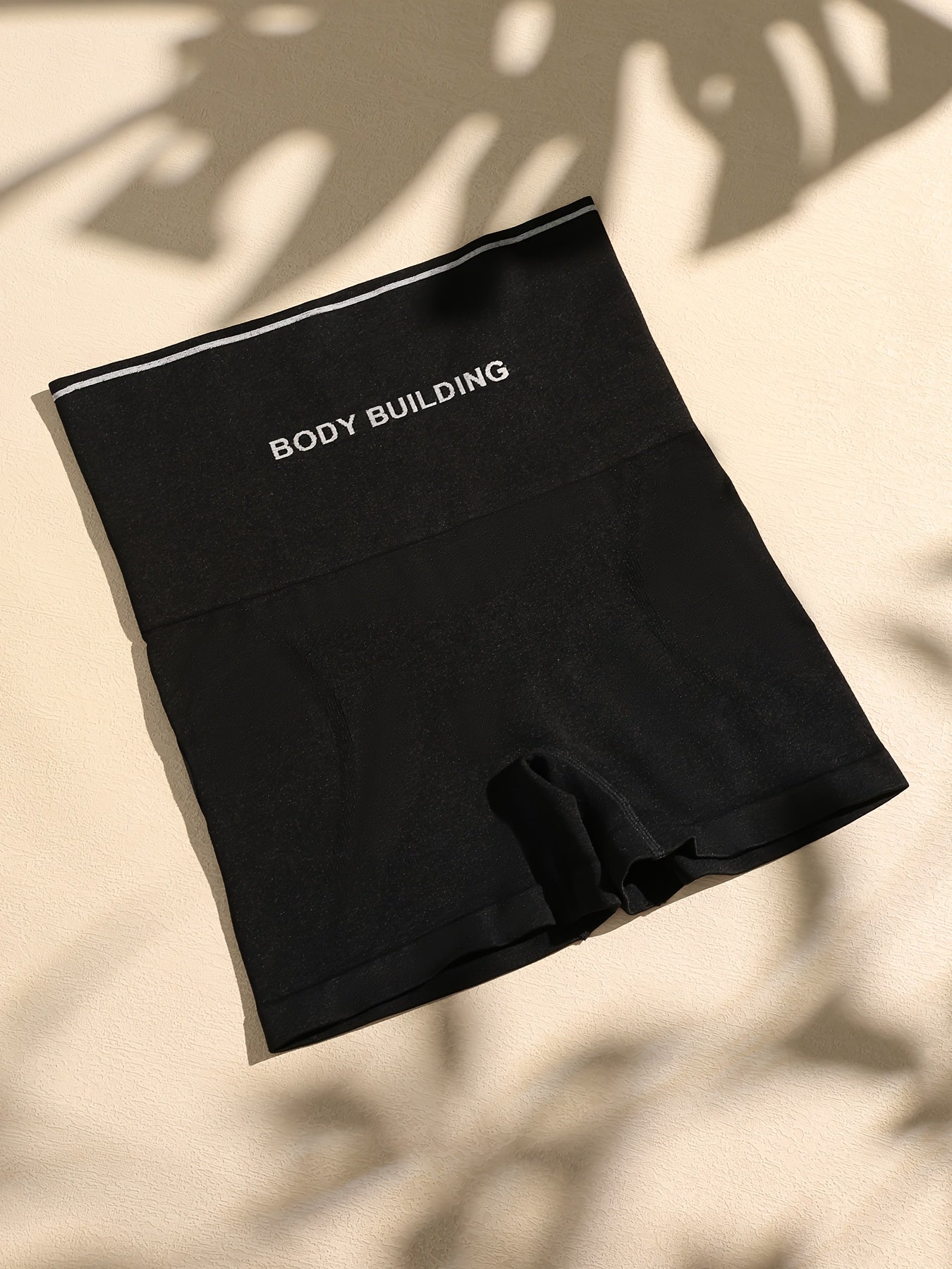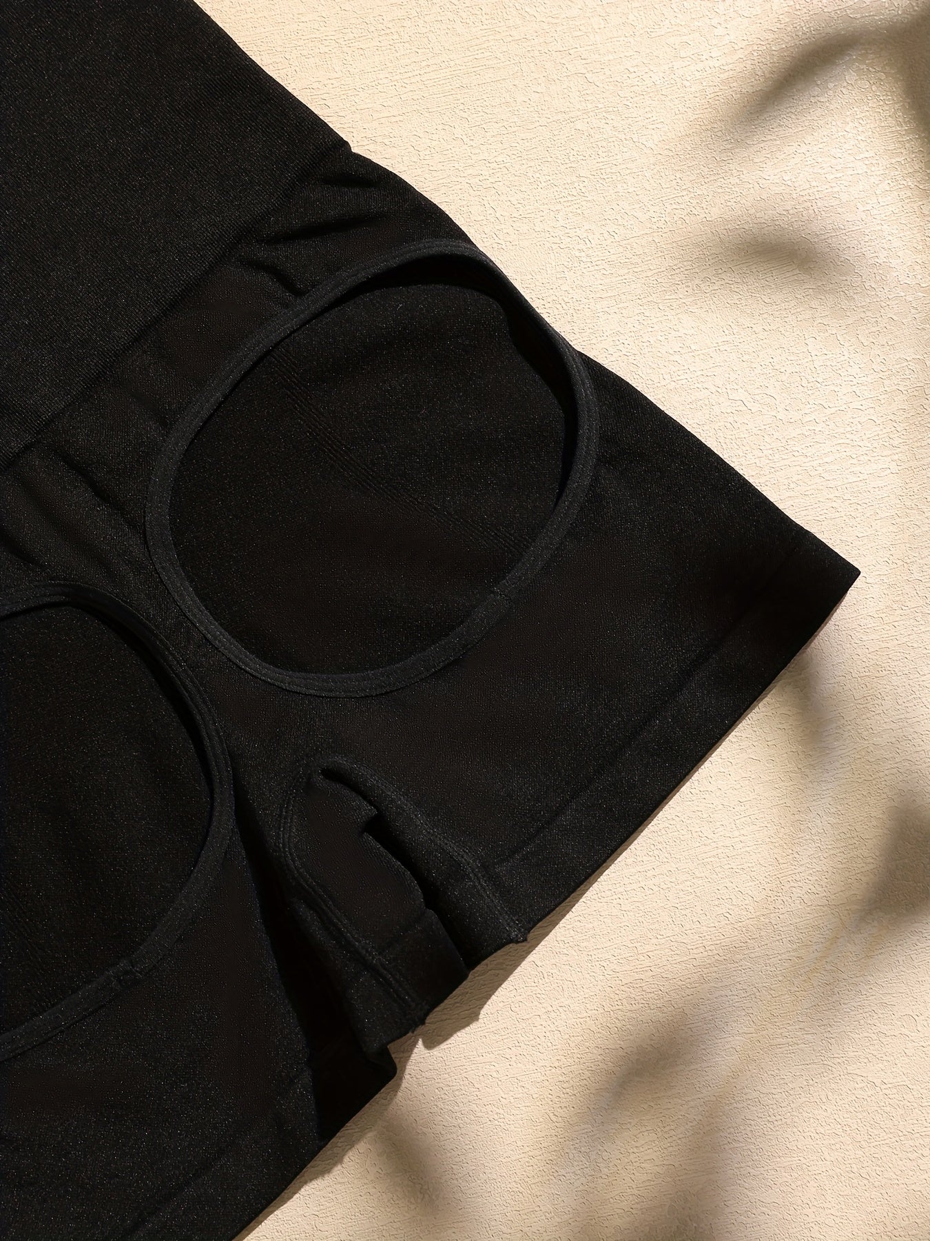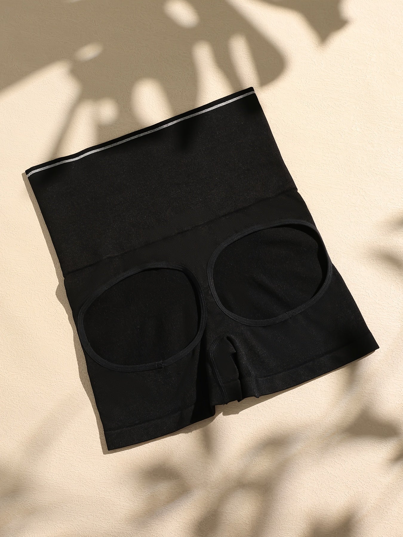 "Женские шорты с высокой талией для сужения бедер однотонного цвета, бесшовные контурные шорты из трикотажной ткани на основе полиамида и эластана с вырезом на спине."