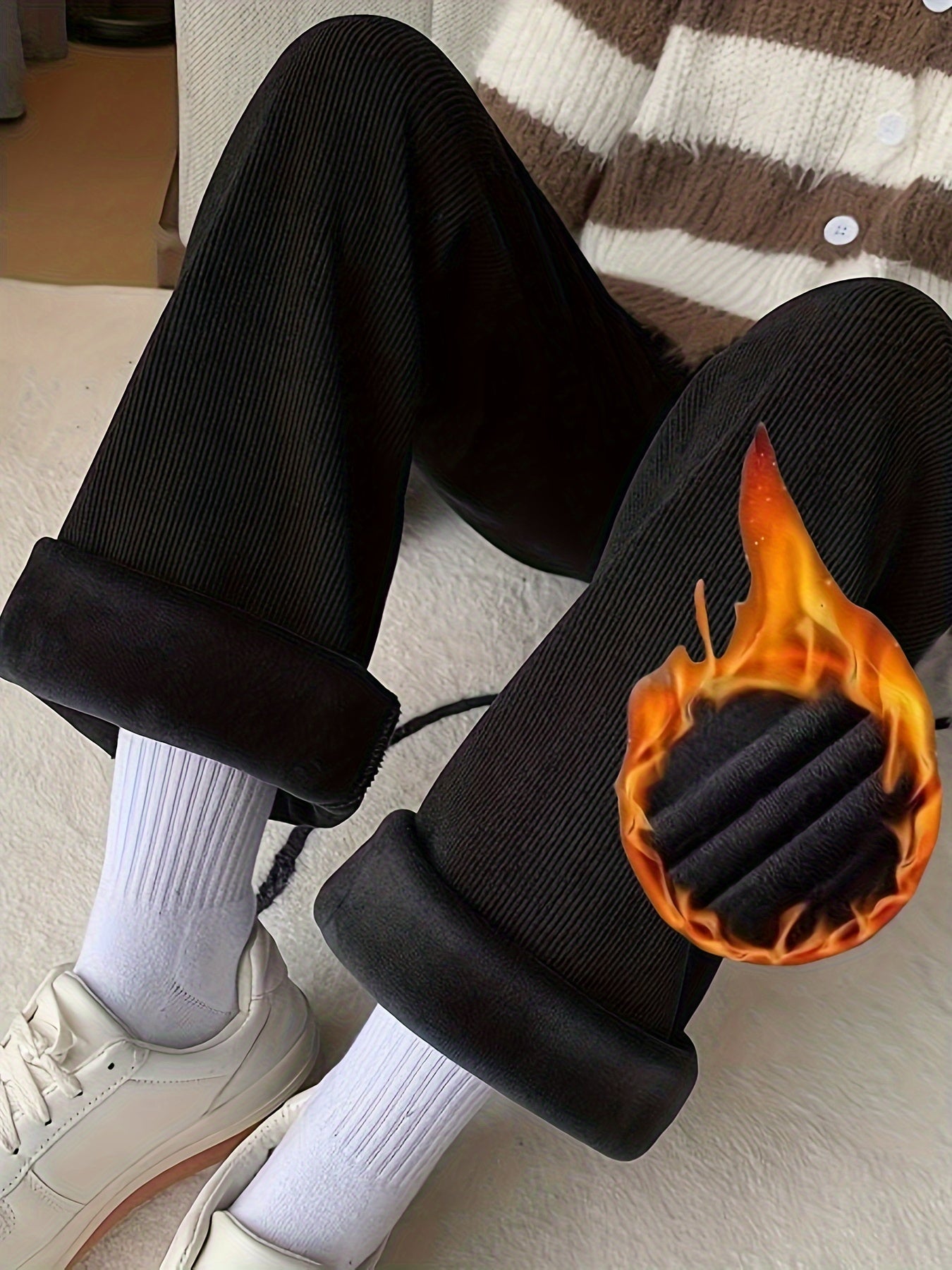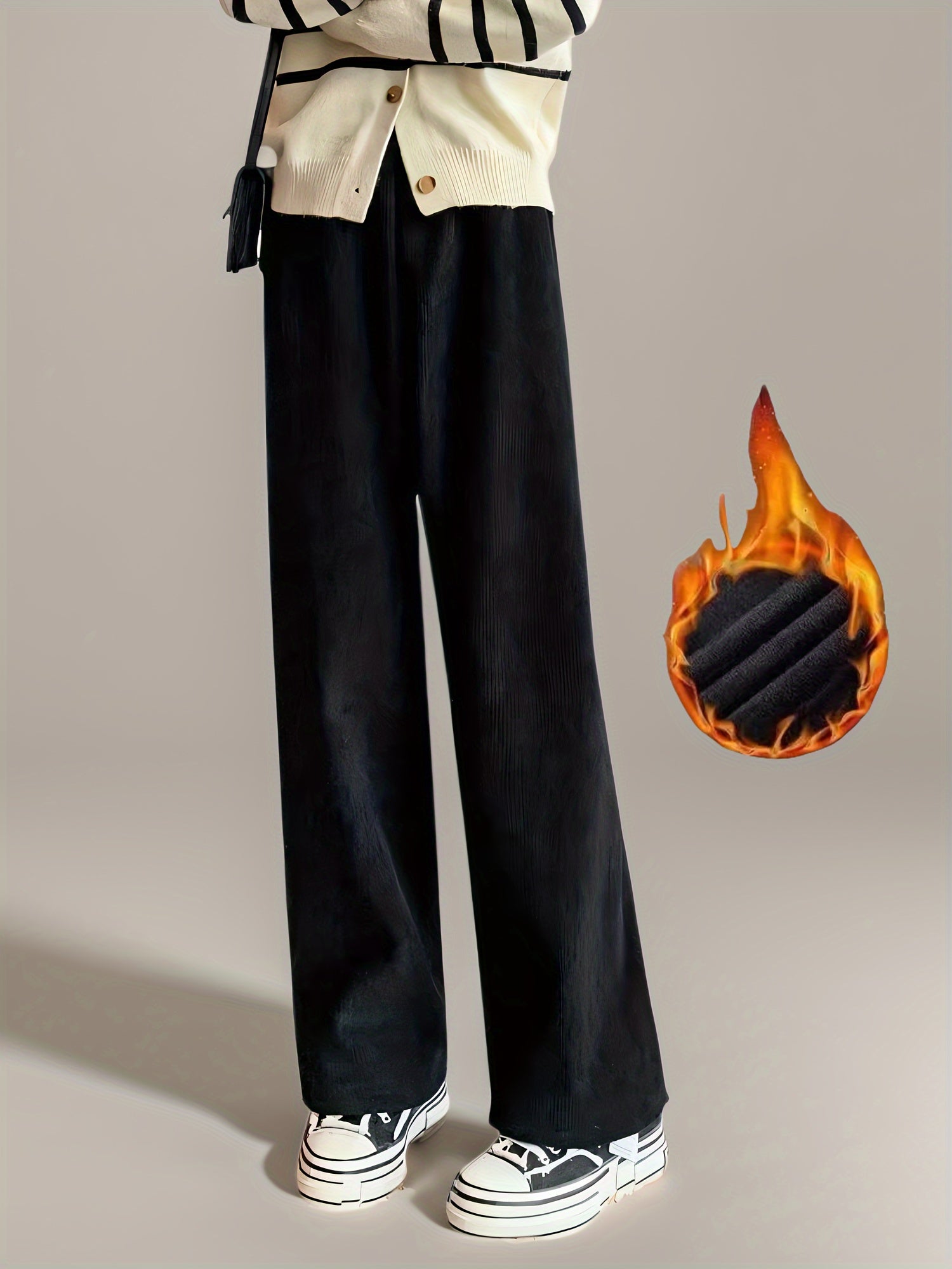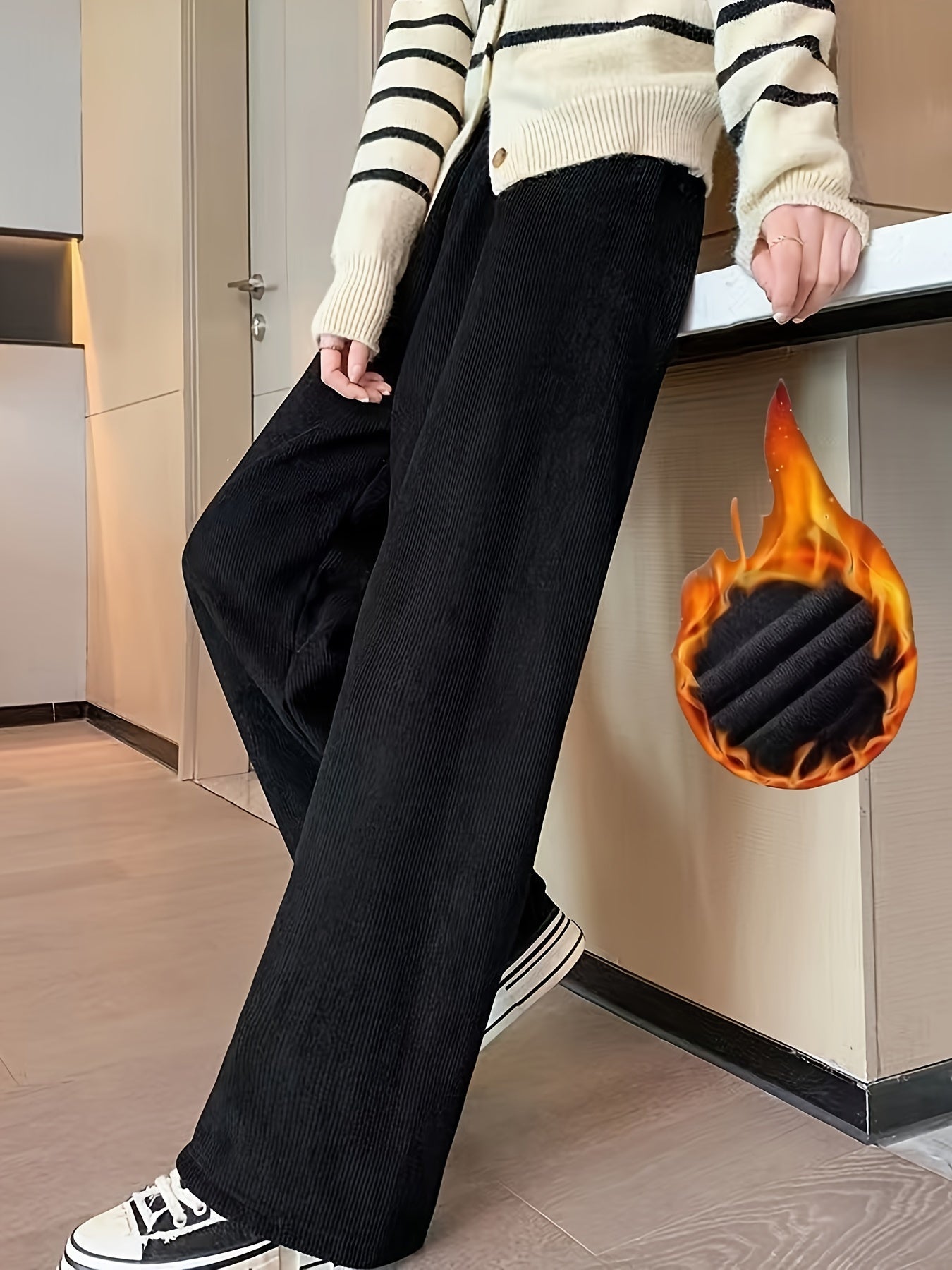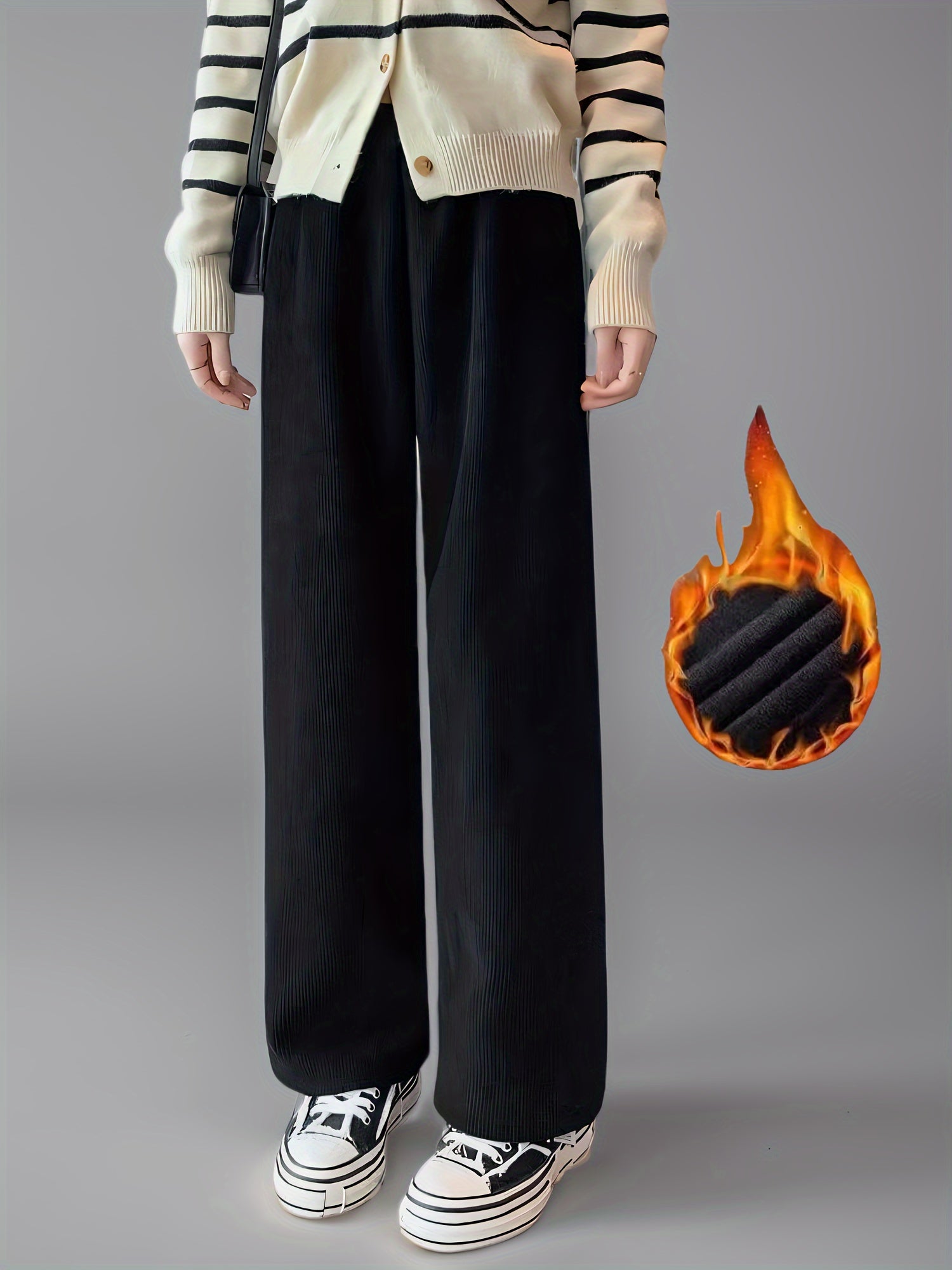 Женские брюки с высокой талией и широкими штанинами с флисовой подкладкой для зимнего тепла и комфорта. Стильный и стройнящий дизайн.