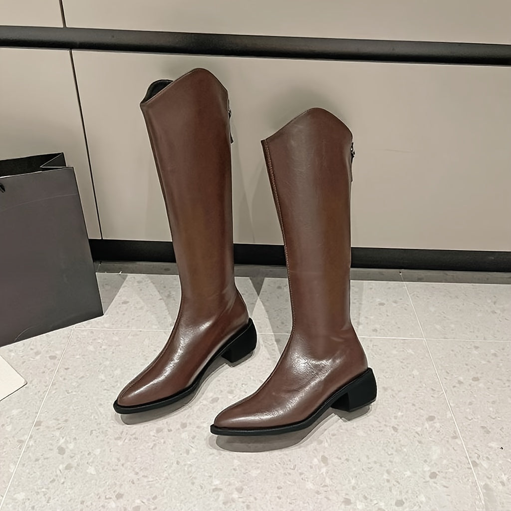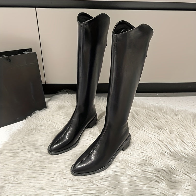 Женские сапоги до колена из искусственной кожи с противоскользящими стельками и застежкой-молнией