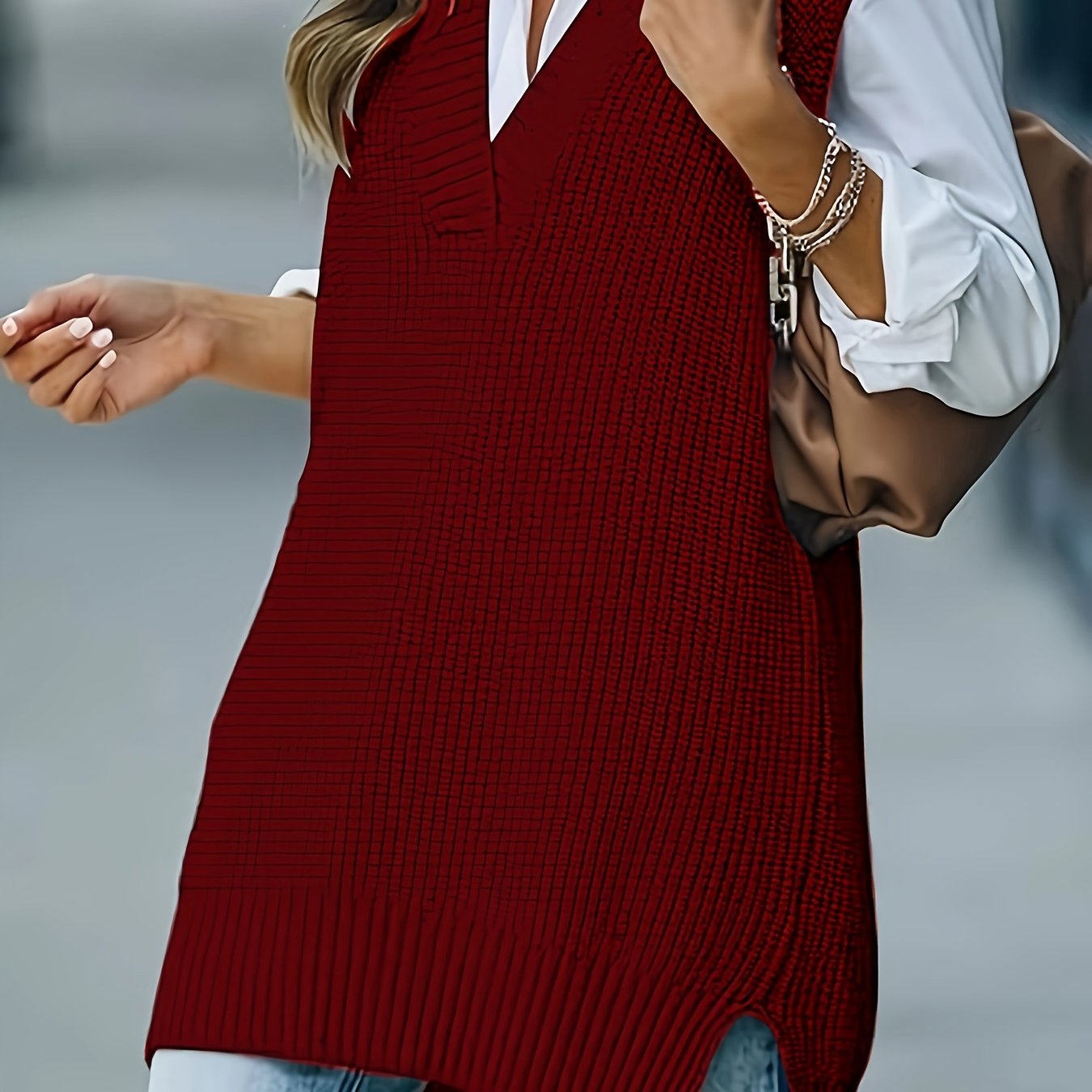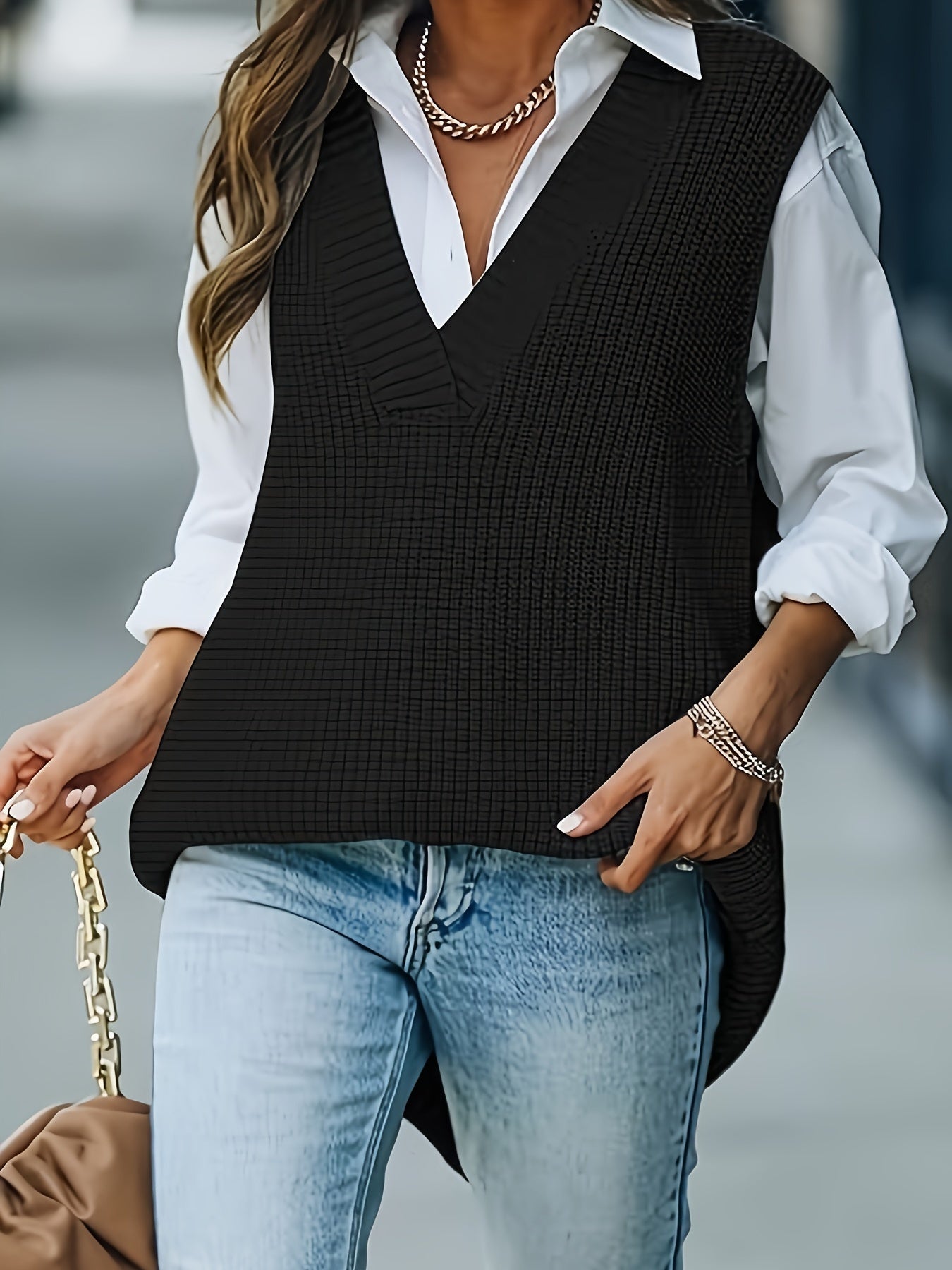 Женский вязаный жилет с V-образным вырезом, однотонный, повседневный свитер на выходные