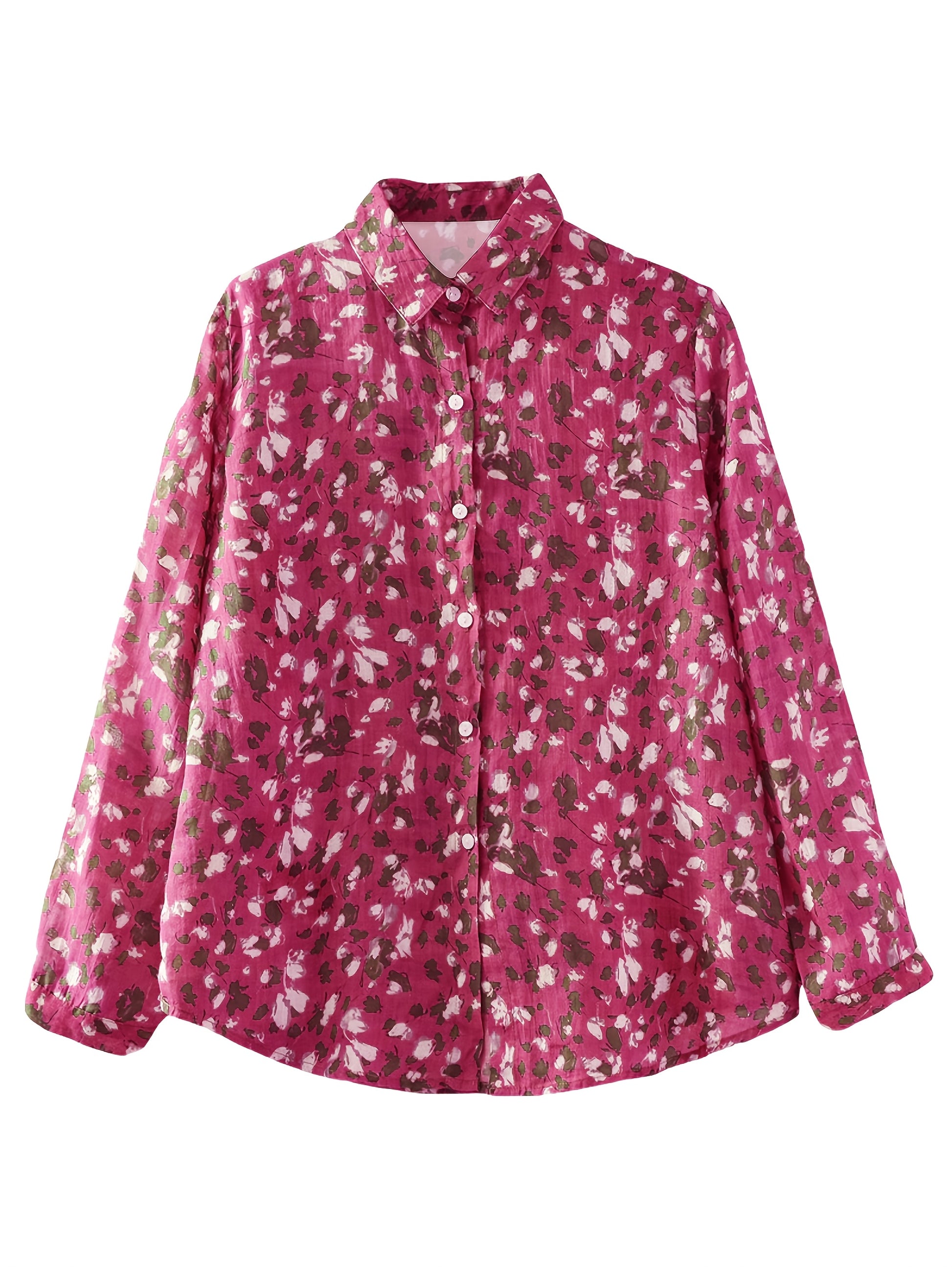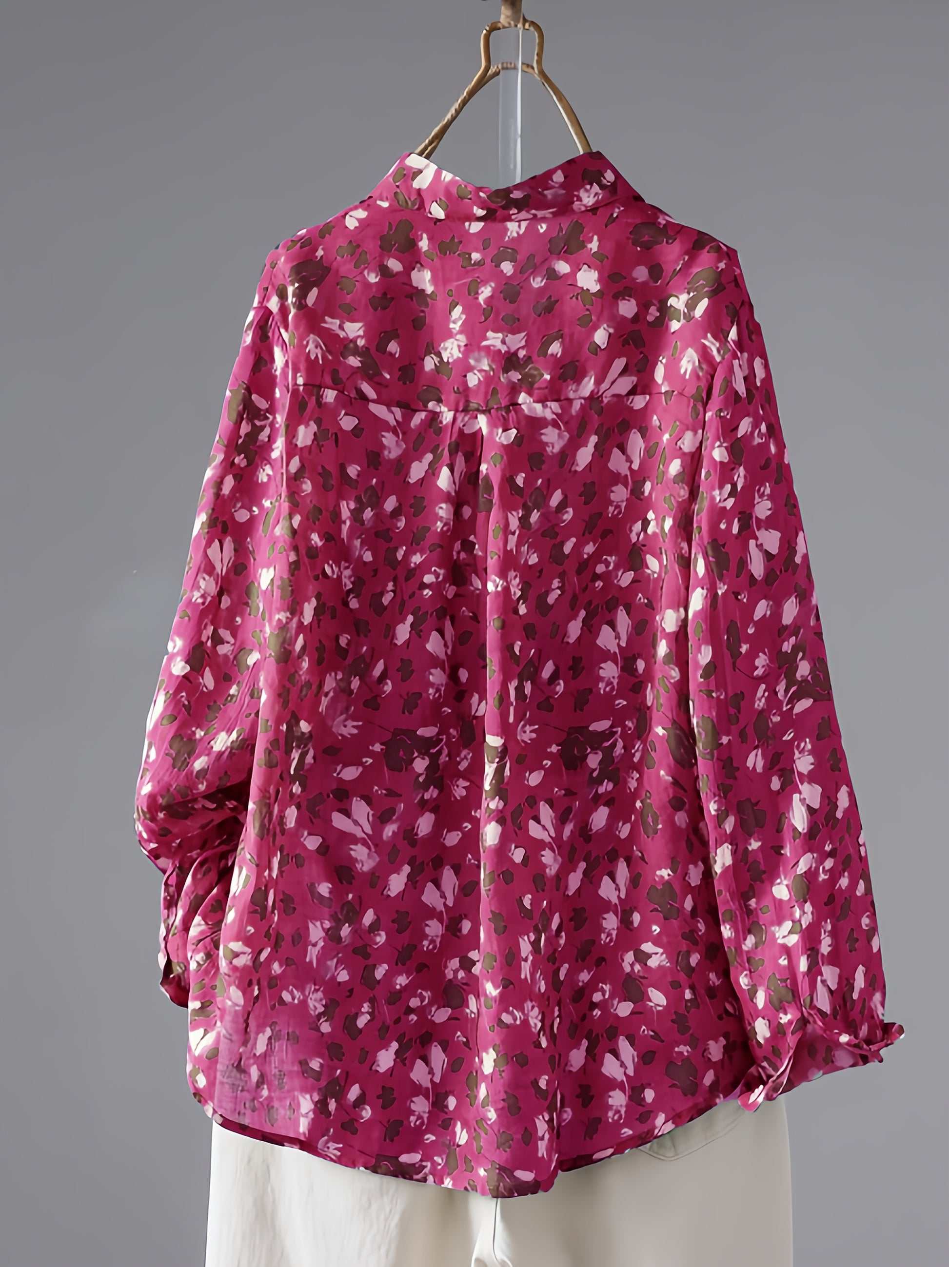 Women's Large Size Printed Long Sleeve Shirt Casual Fashion Elegant
