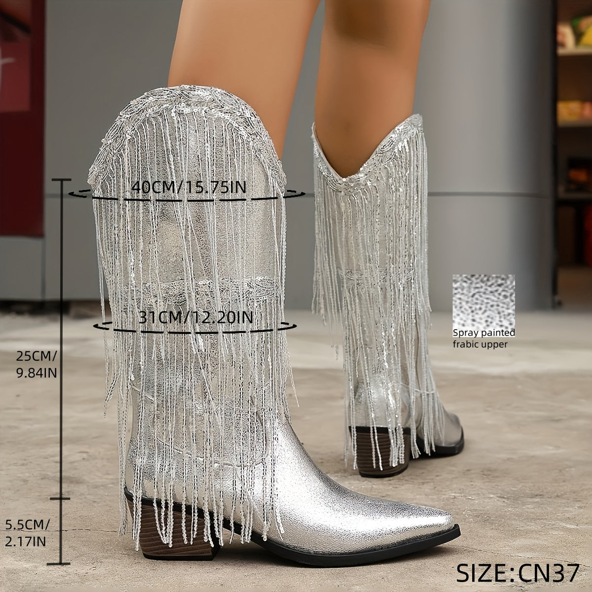 Женские кожаные сапоги-казаки с двойной бахромой и пряжками на slip-on с массивным каблуком