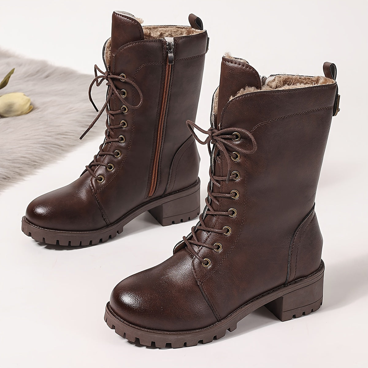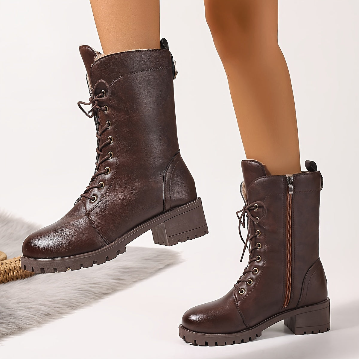 Женские кожаные сапоги до середины икры с молнией, стильные и удобные