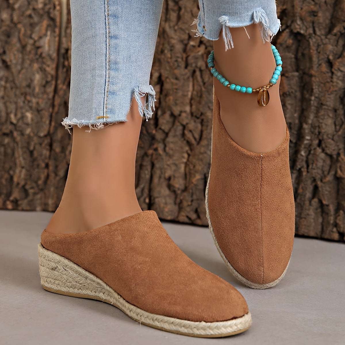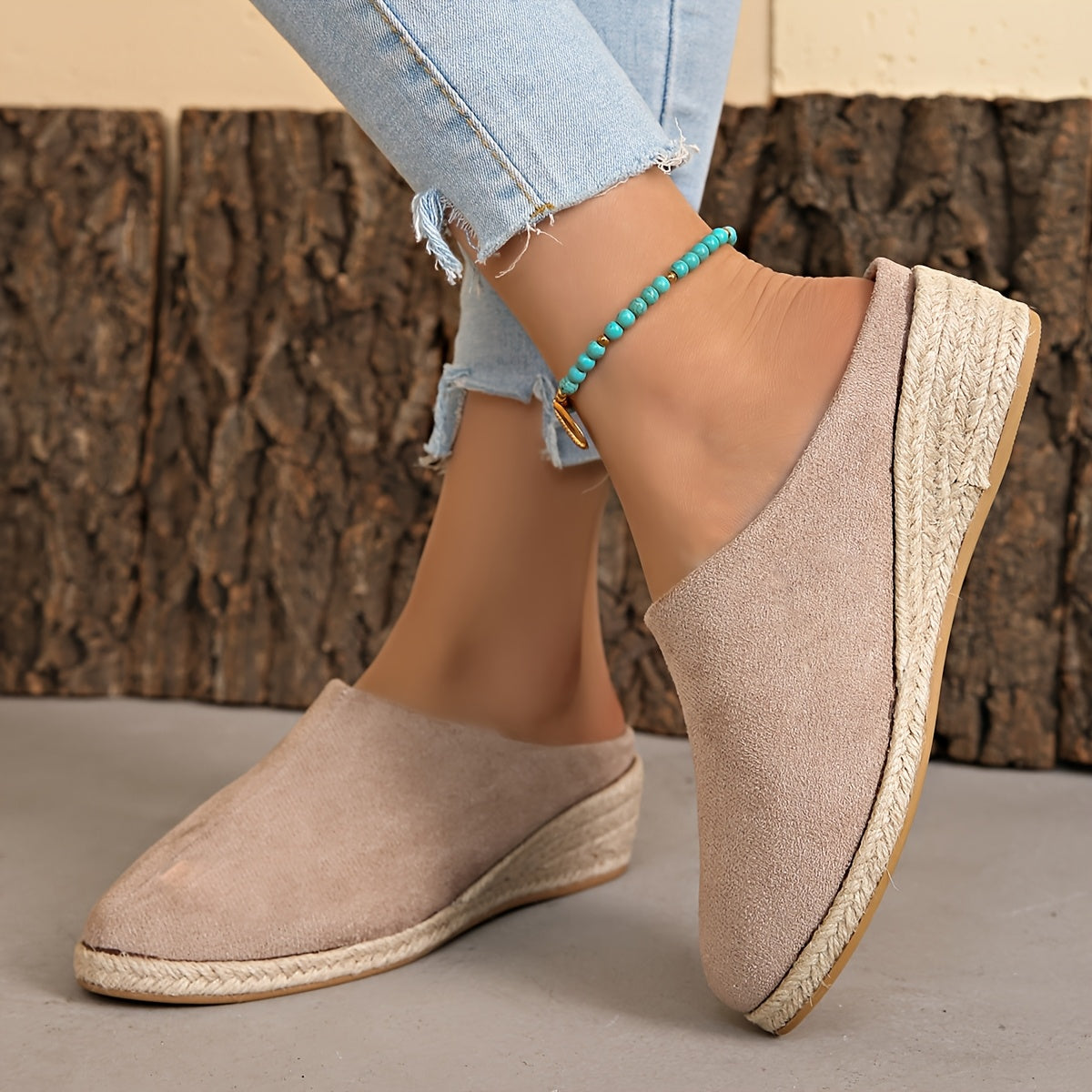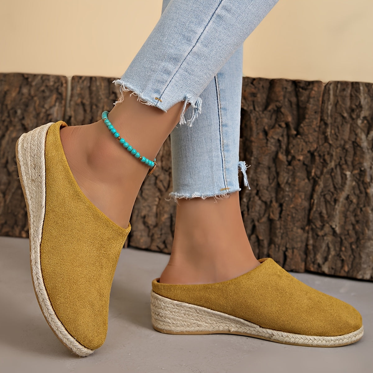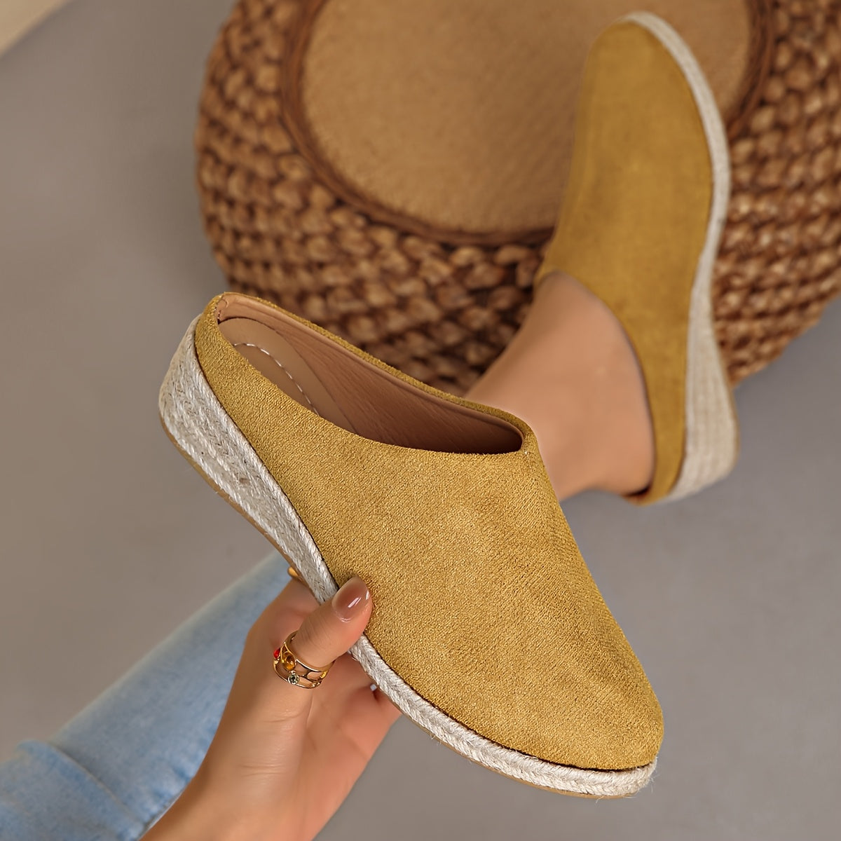 Женские льняные слипоны на среднем каблуке с джутовой подошвой черный бежевый