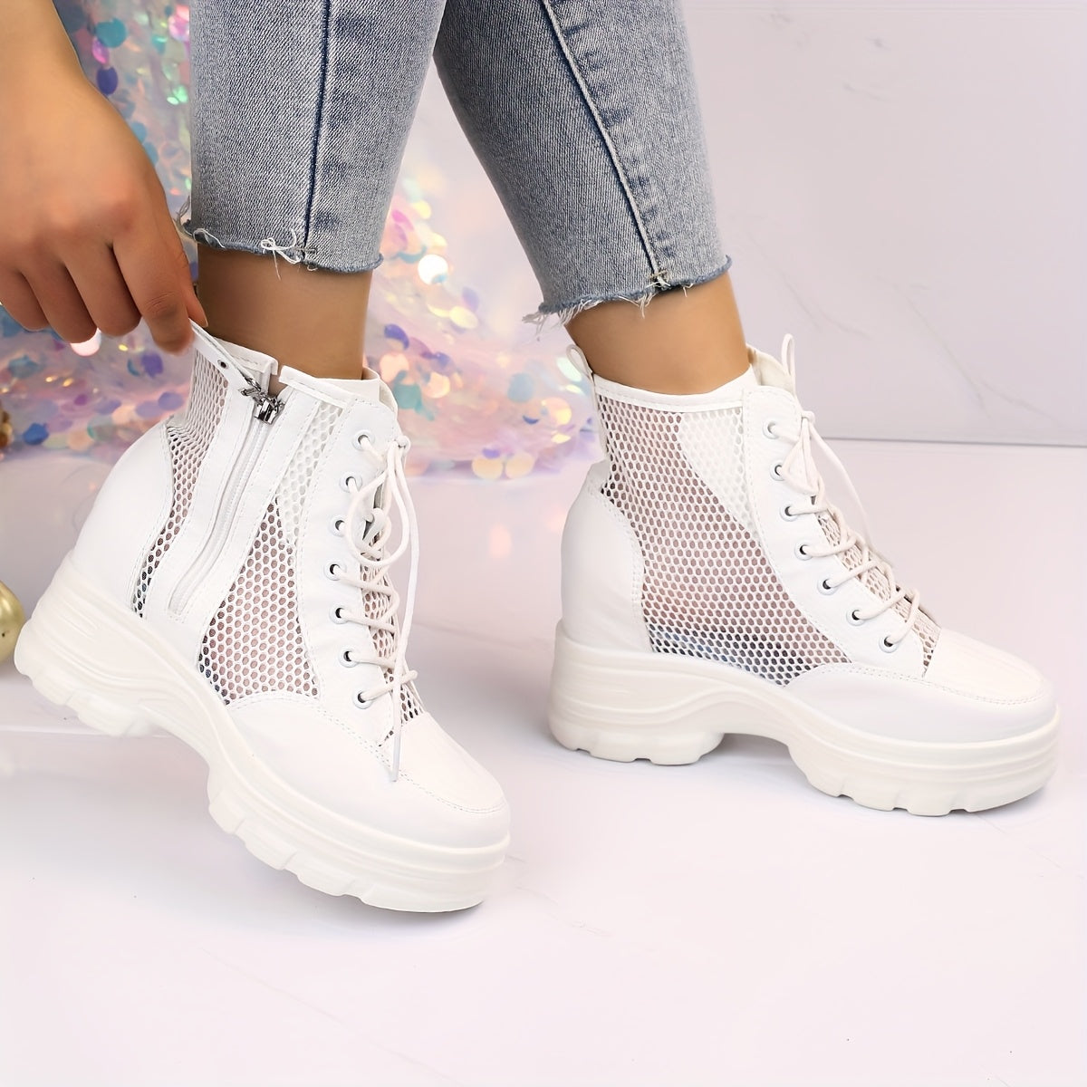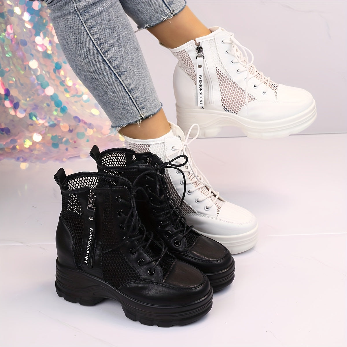 Women's Mesh Summer High Heel Booties with Side Zipper and Hollow Design