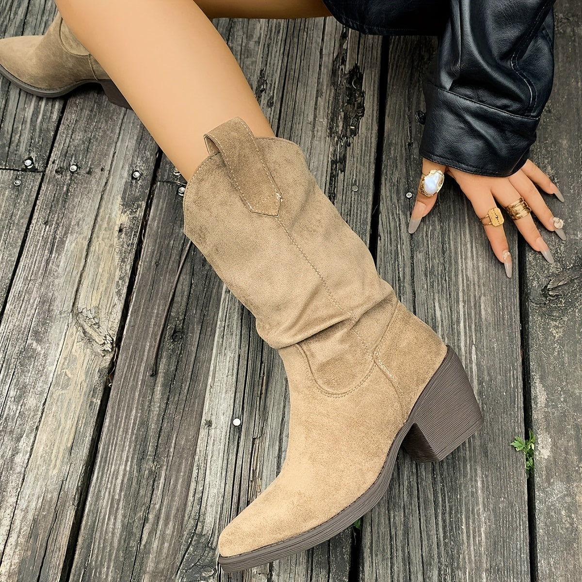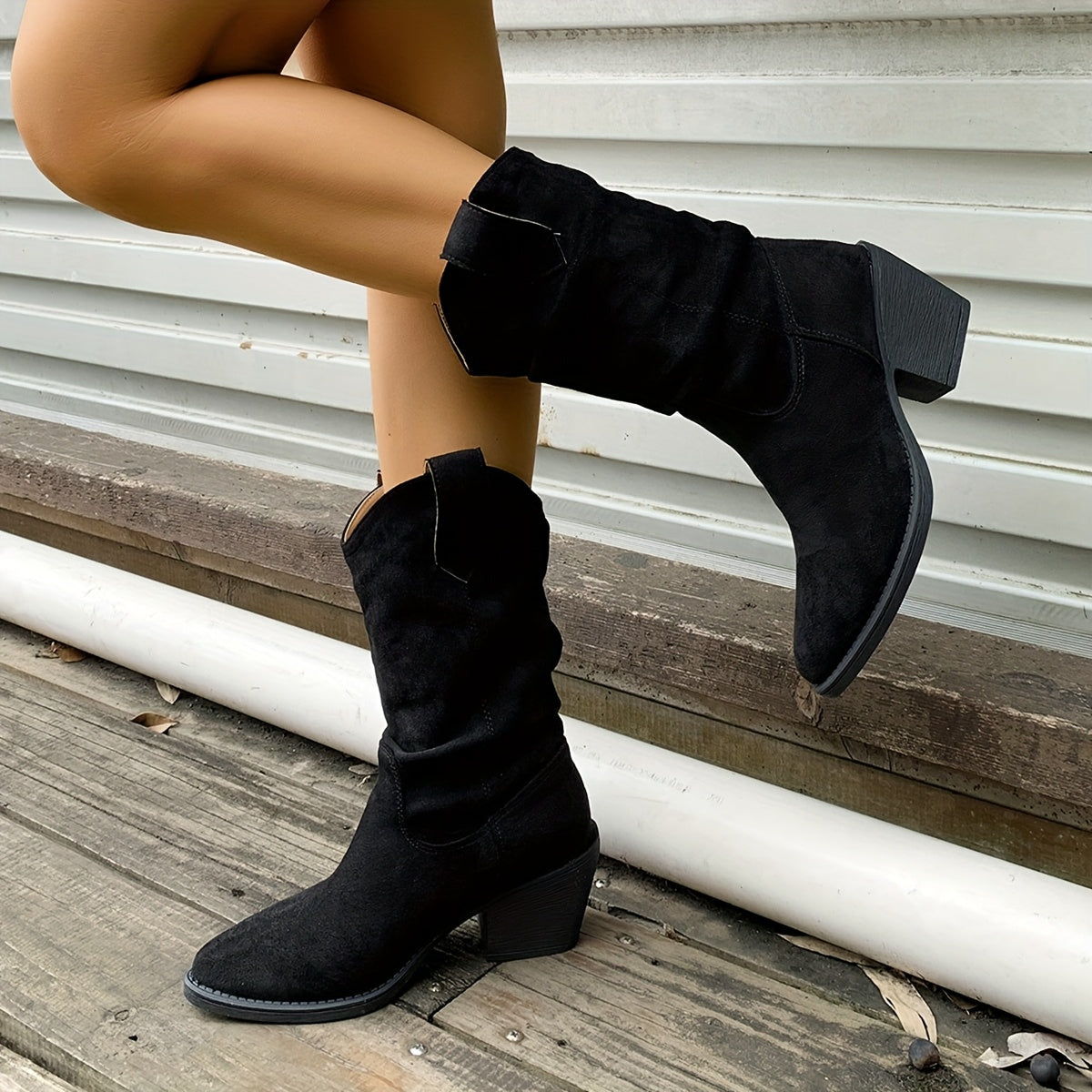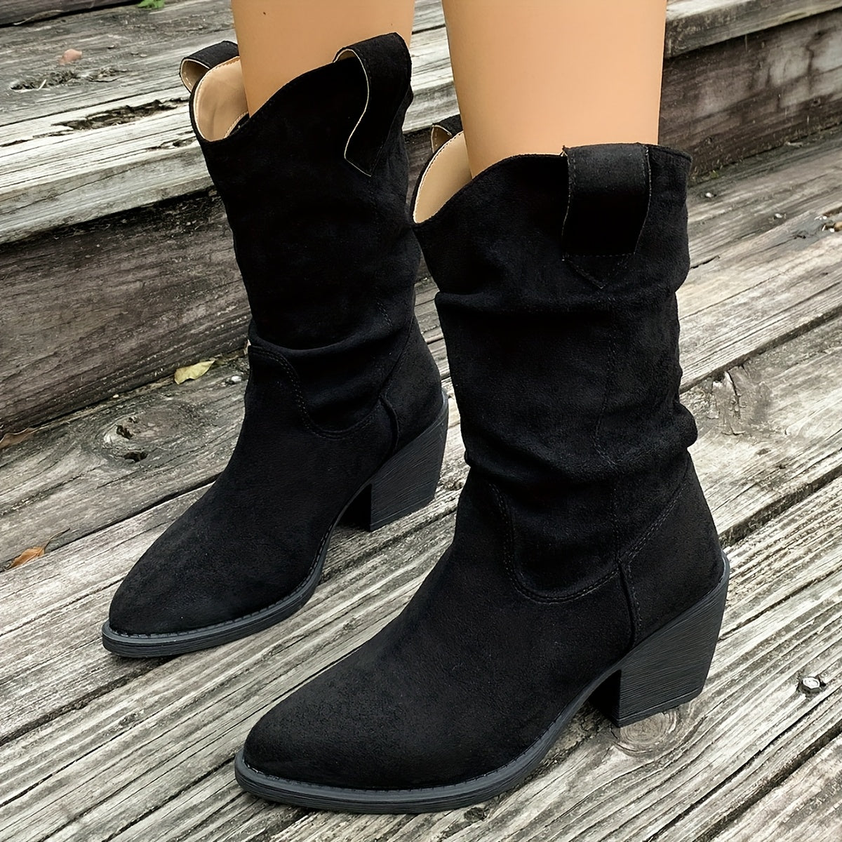 Женские ботинки на среднем каблуке с массивной подошвой и кожзаменителем, легко надевающиеся, для городского стиля