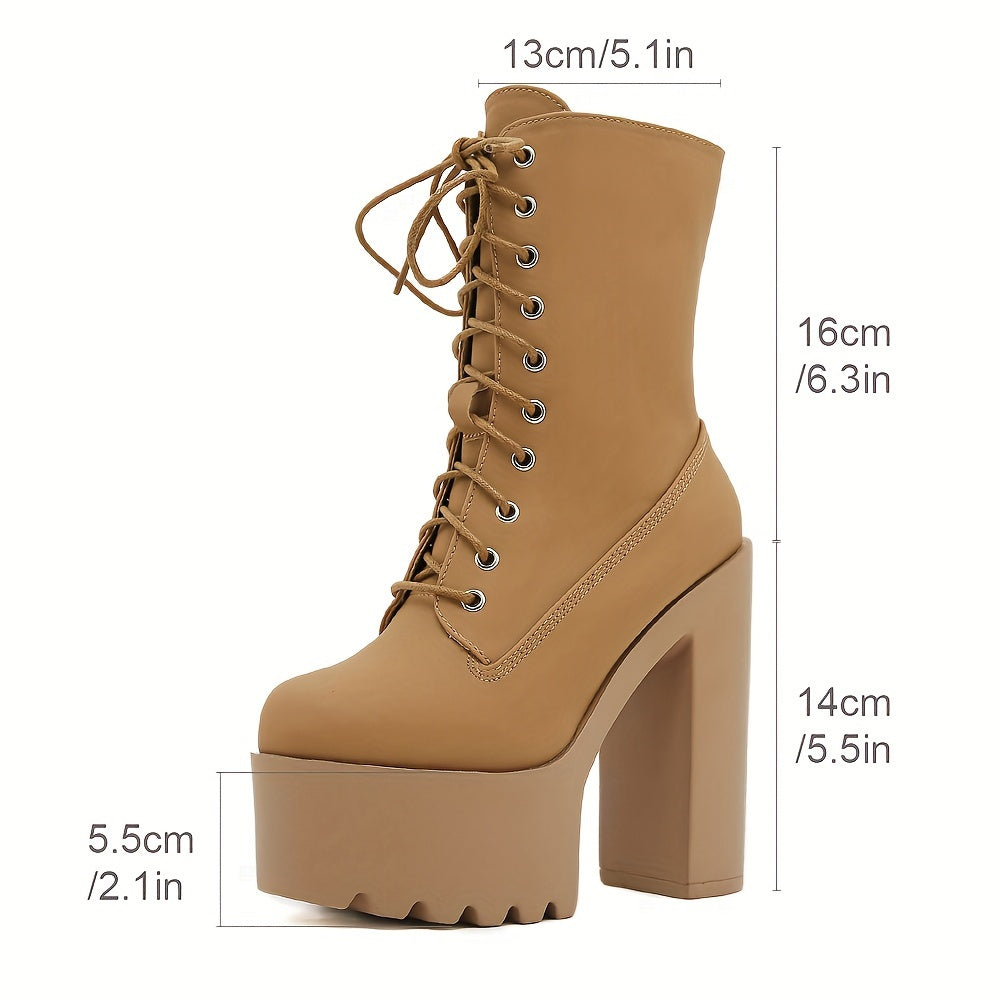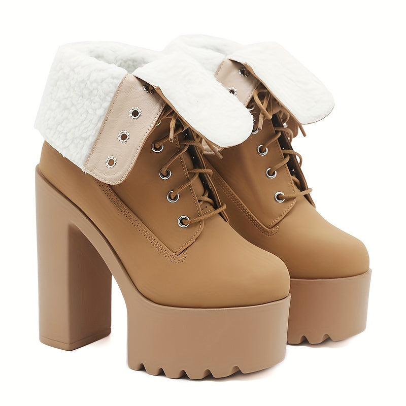 Женские ботинки на платформе до середины икры с блоковым каблуком, шнуровка, зимняя повседневная обувь