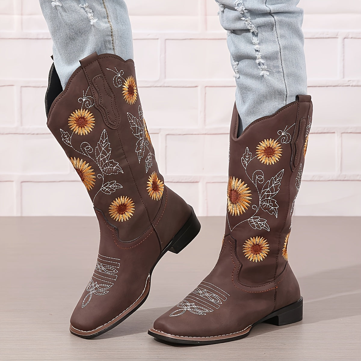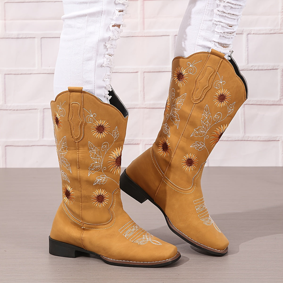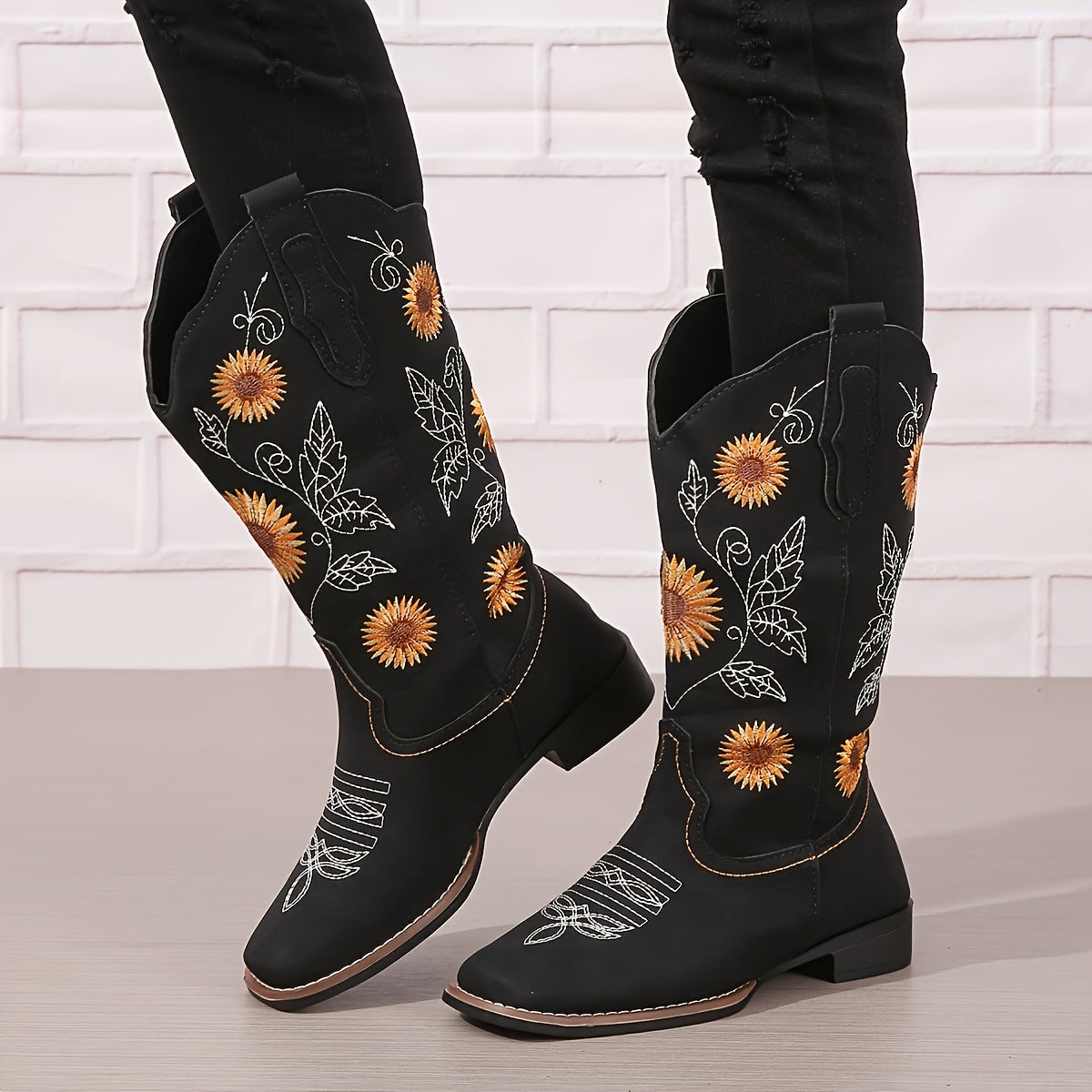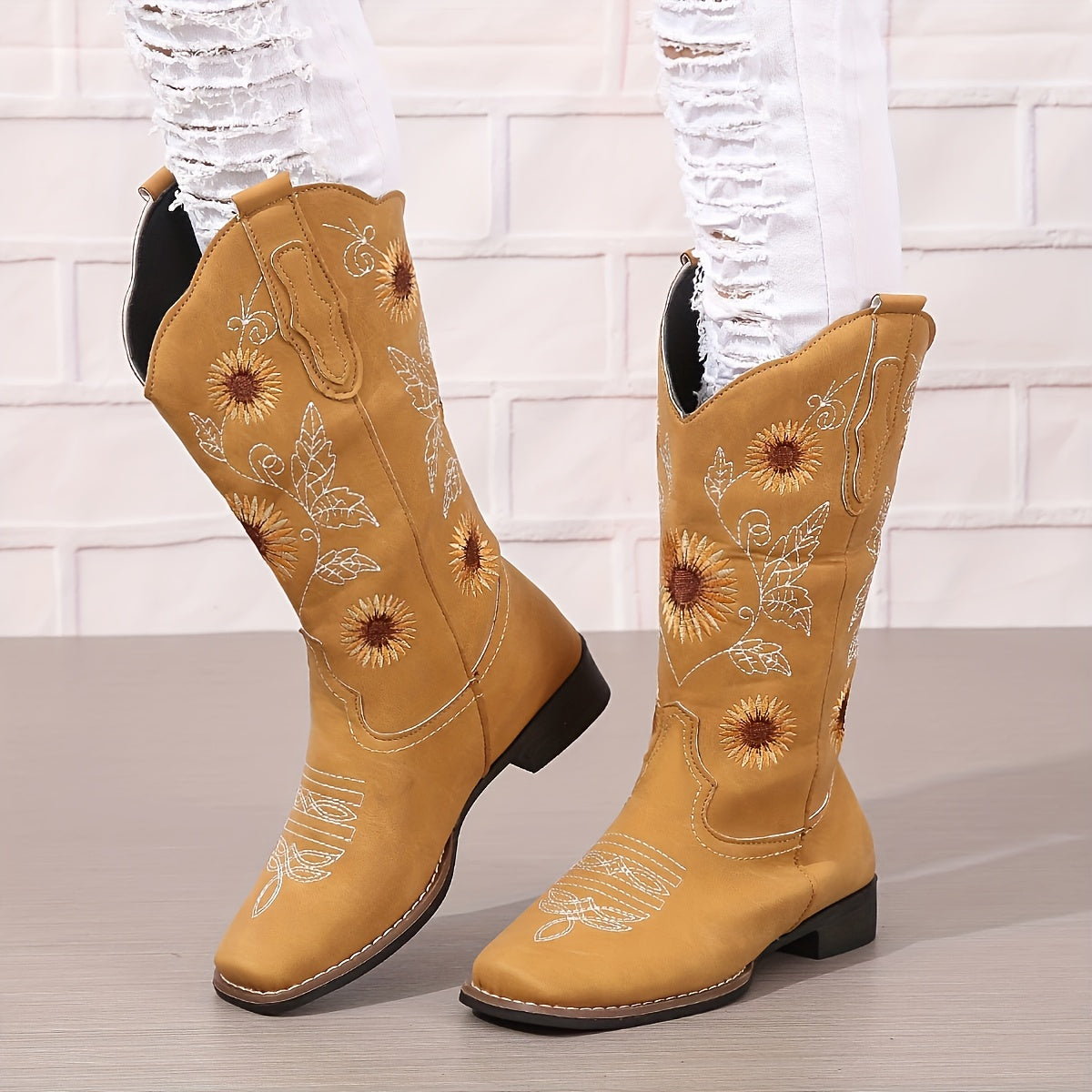 Женские сапоги вестерн до середины икры с вышивкой, молния, обувь