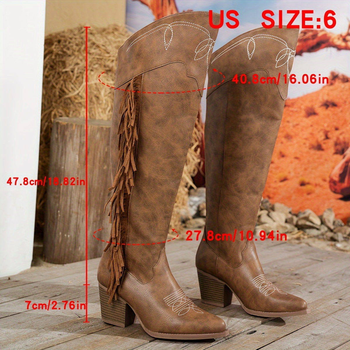 Женские сапоги-ботфорты с кисточками и блоковым каблуком, с тканевой подкладкой
