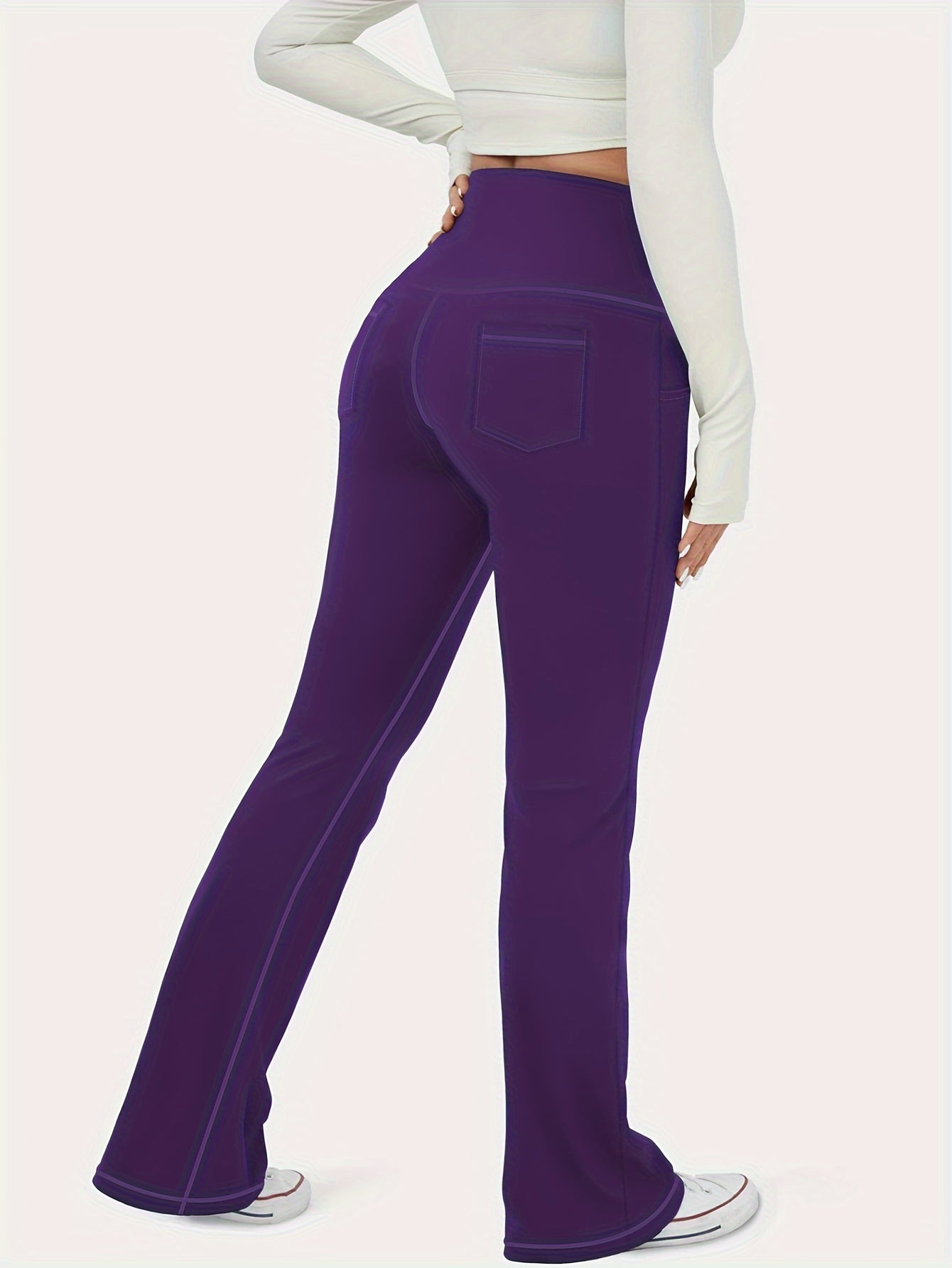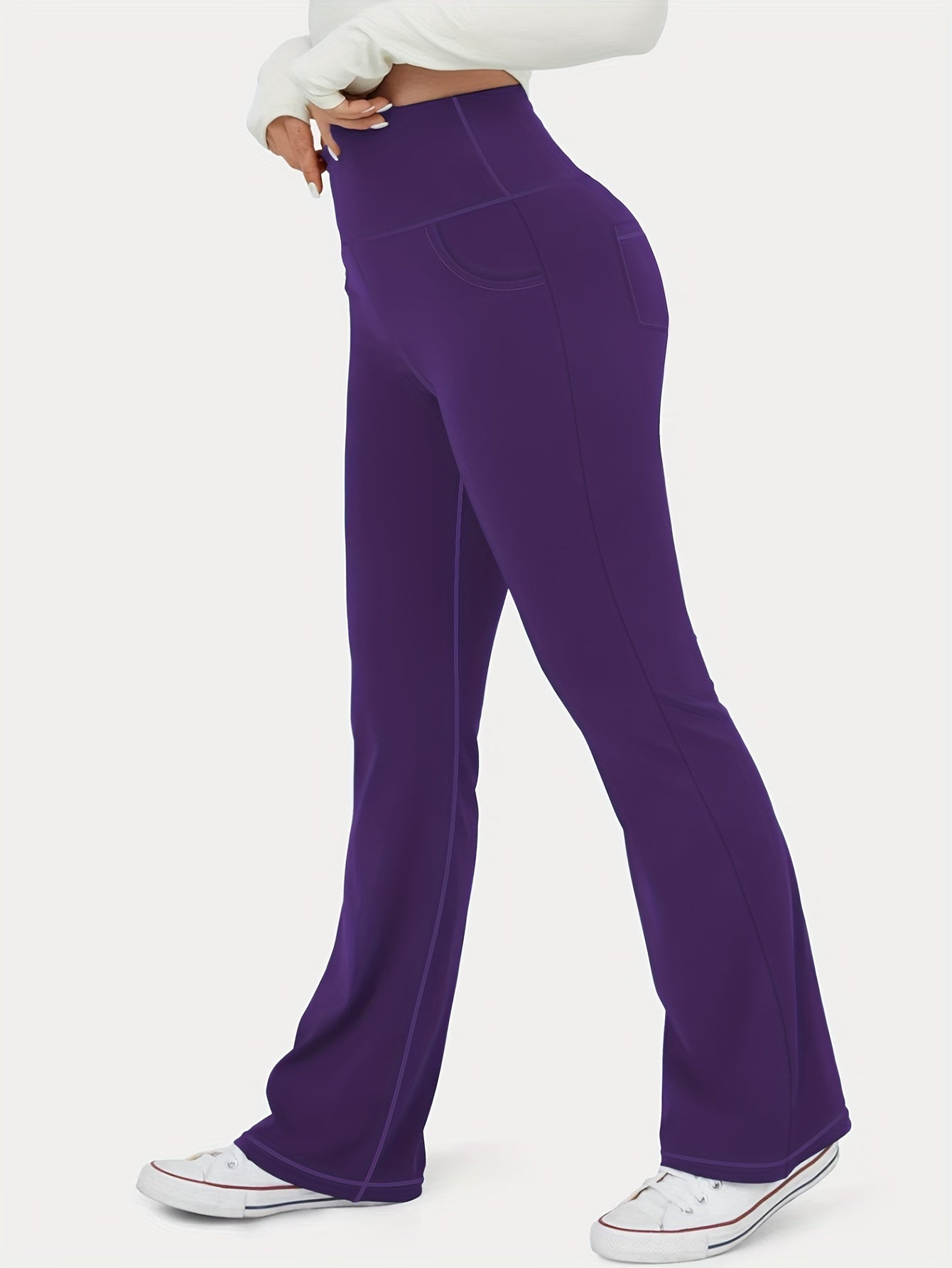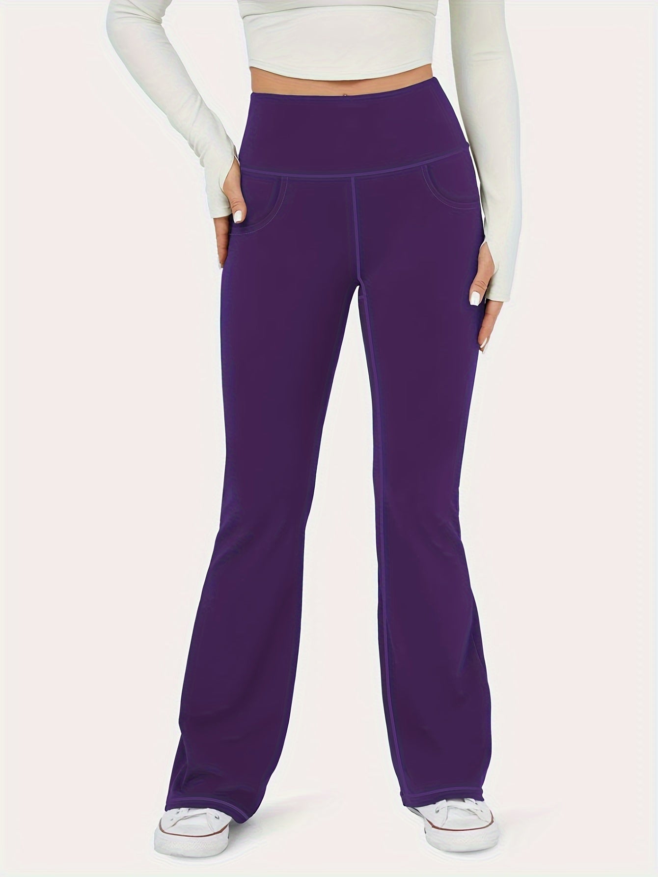 Женские спортивные леггинсы с расклешёнными штанинами и карманами, высокая талия, однотонные, эластичные штаны plus size