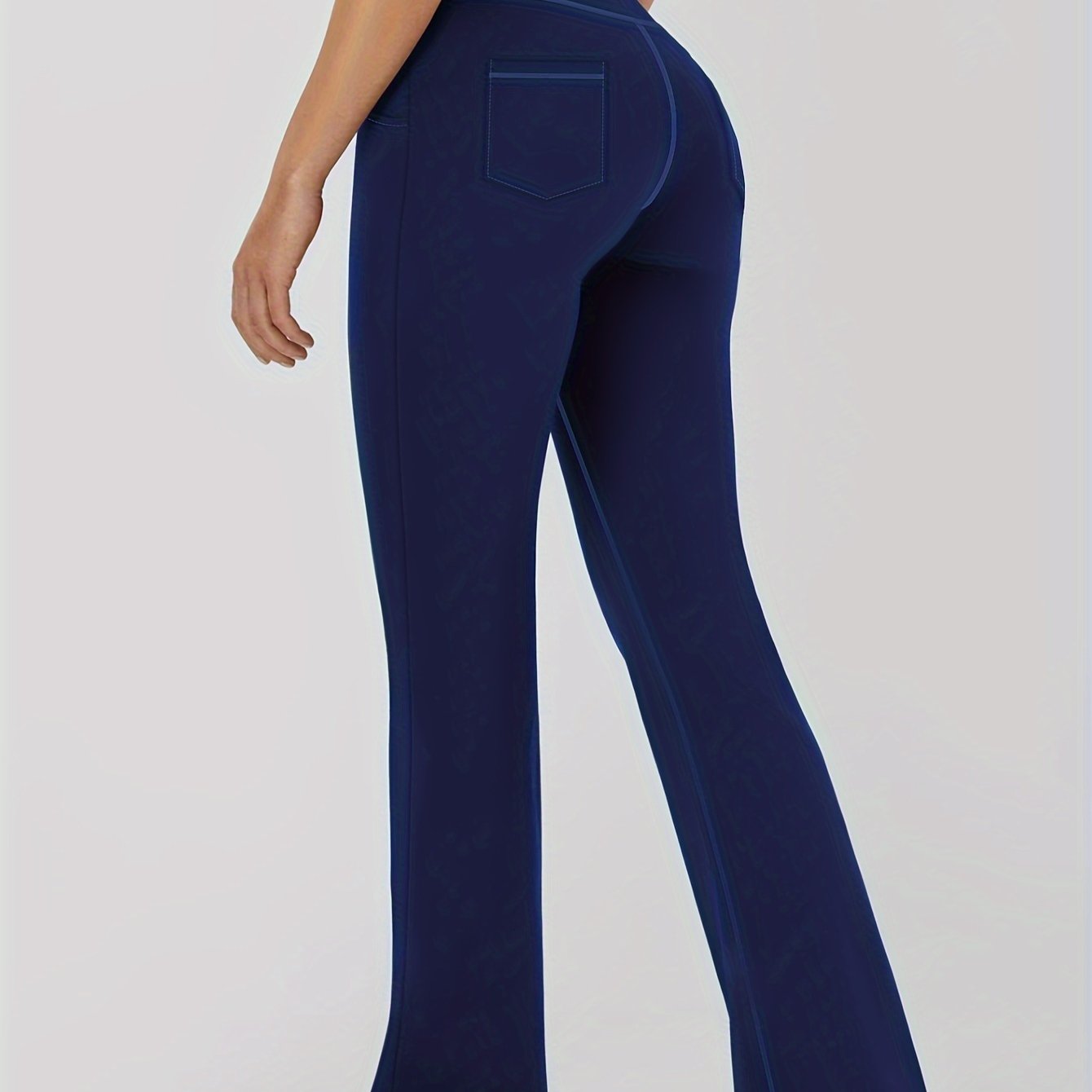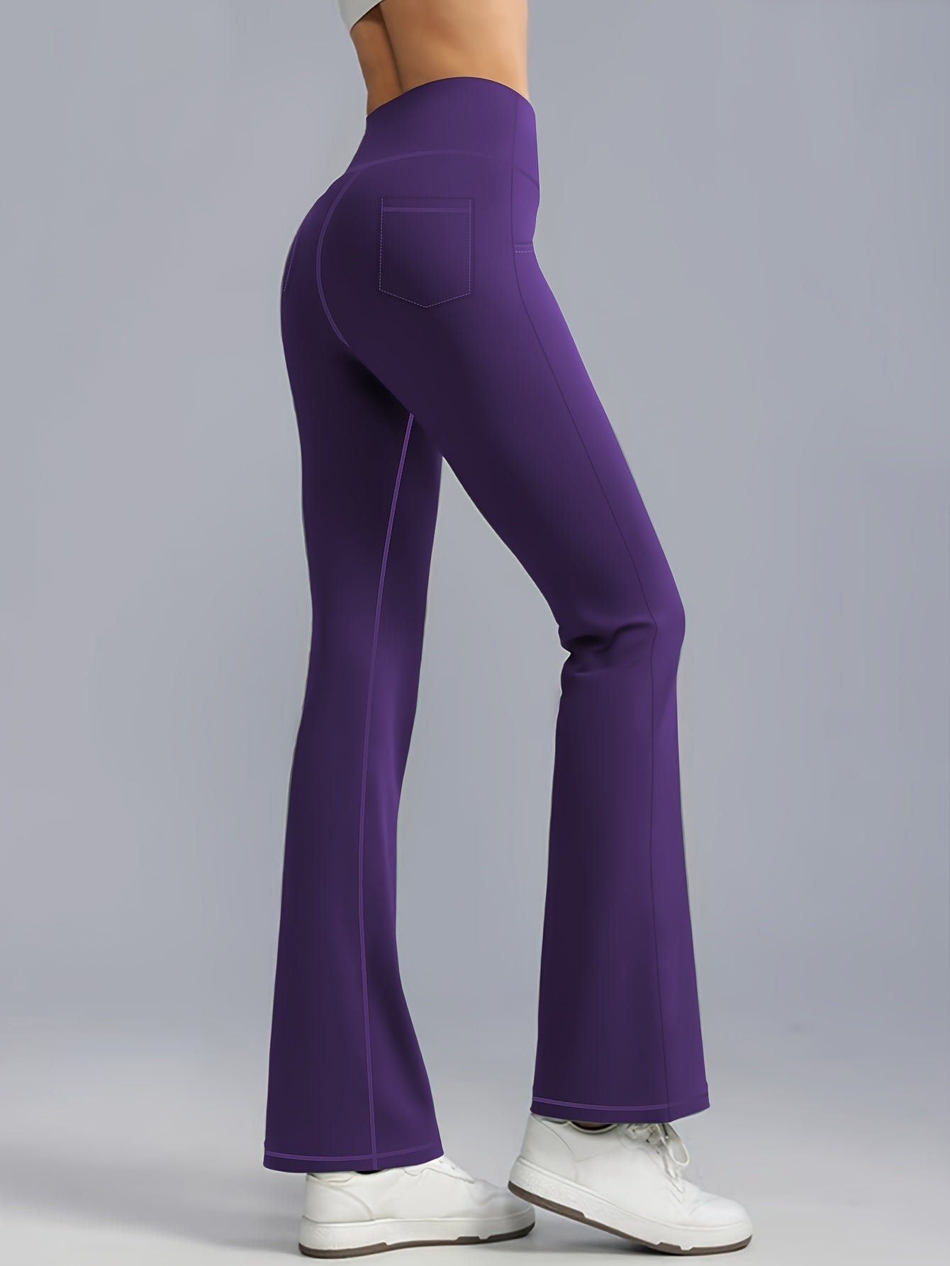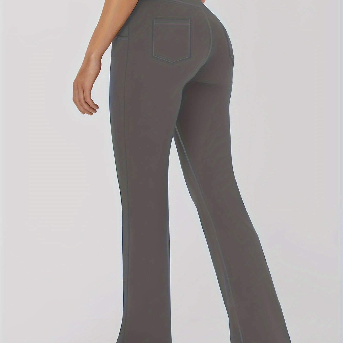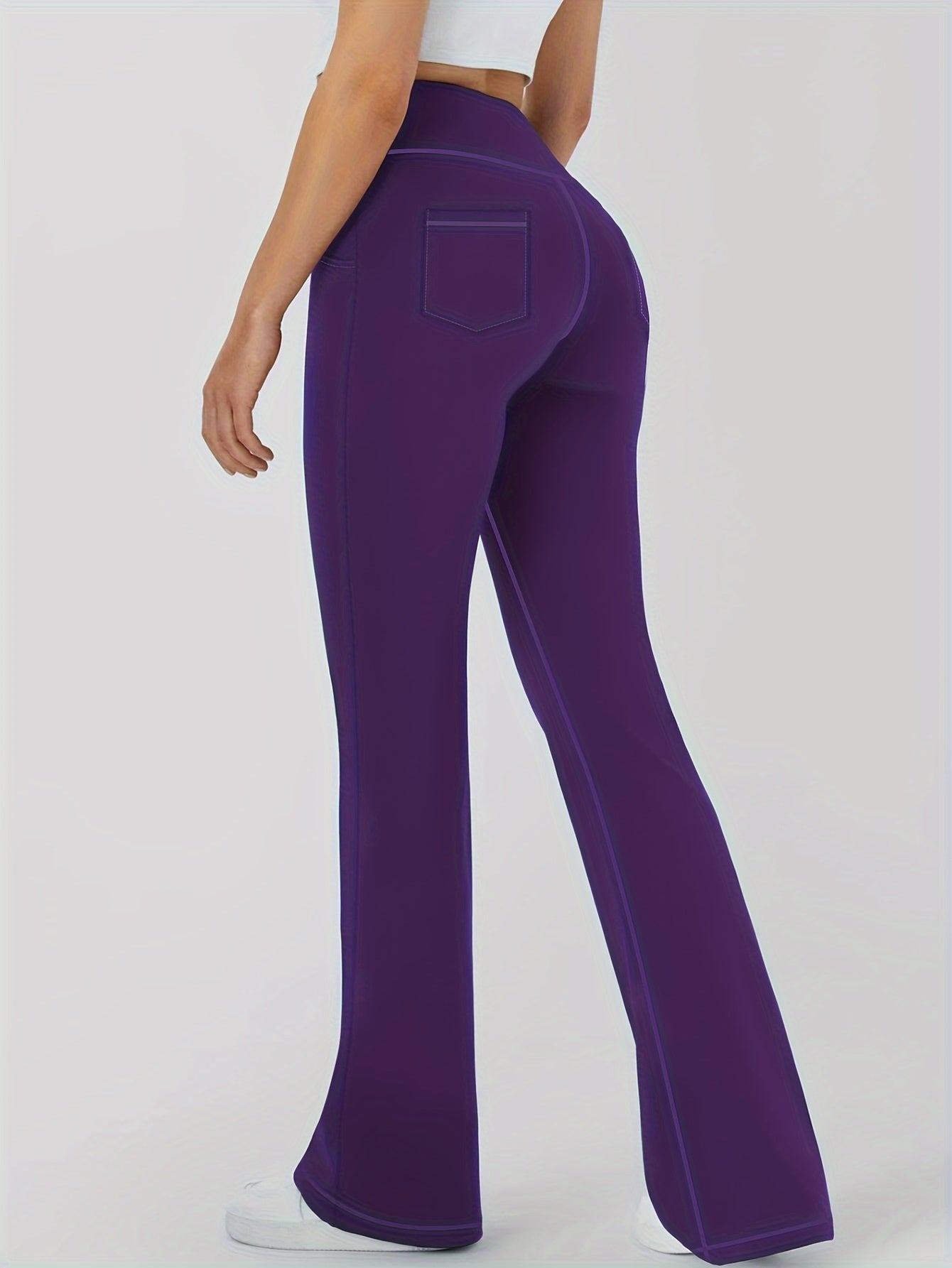 Женские спортивные леггинсы с расклешёнными штанинами и карманами, высокая талия, однотонные, эластичные штаны plus size
