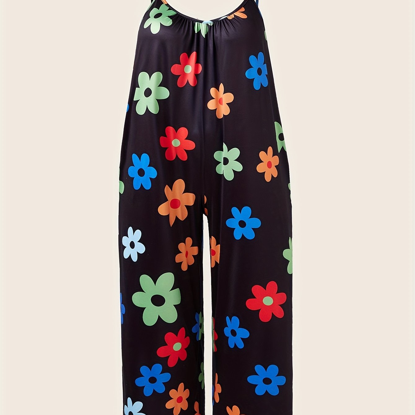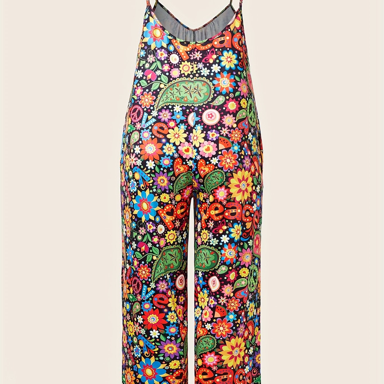 Женский комбинезон с цветочным принтом в стиле бохо, с тонкими бретелями, открытыми плечами, летний ромпер plus size