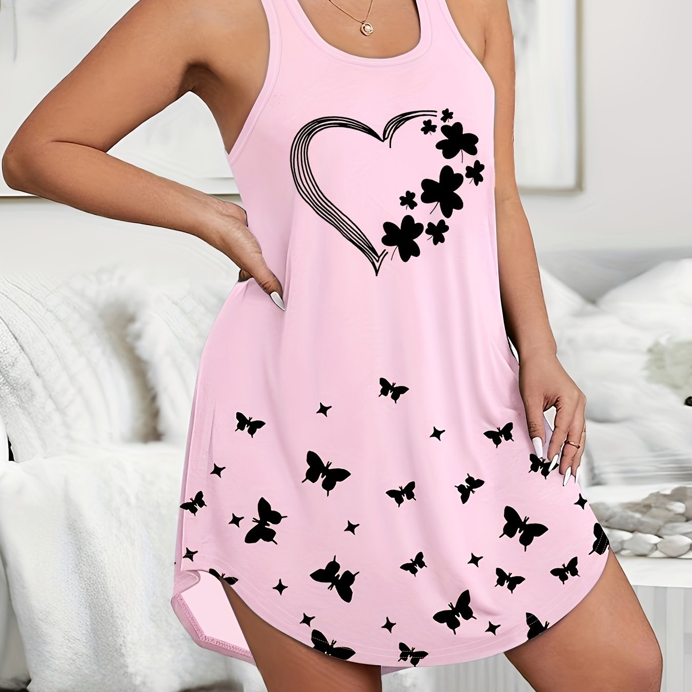 Женское ночное платье больших размеров из хлопка, повседневная пижама с принтом клевер и сердечком