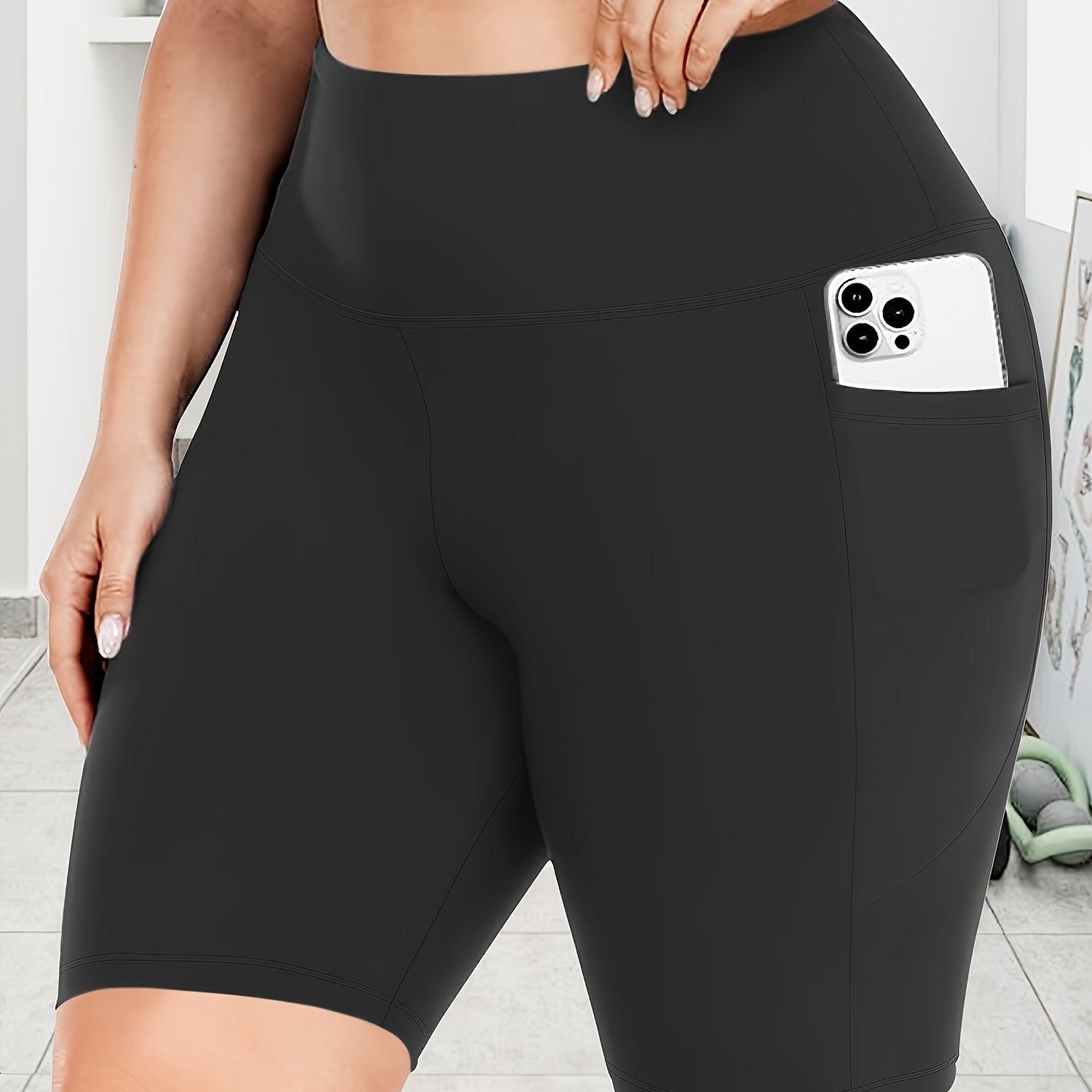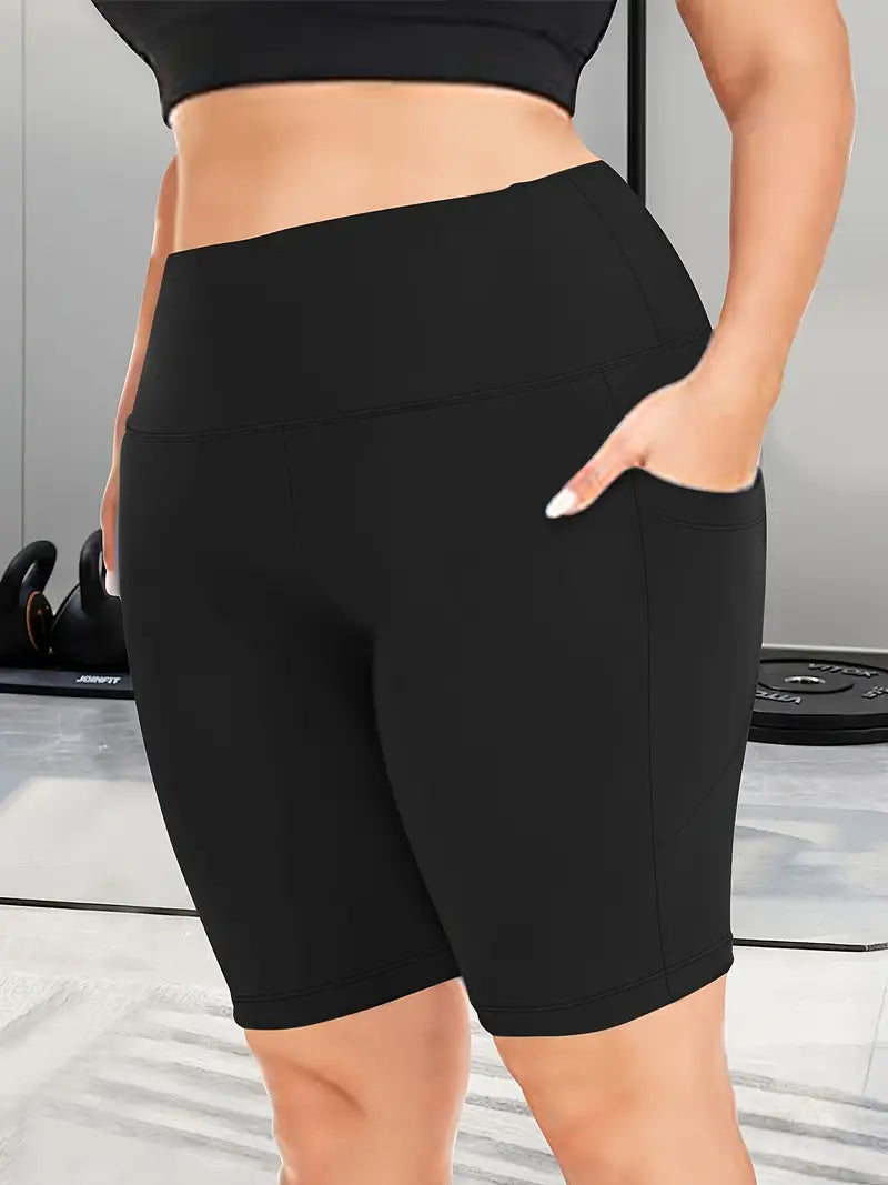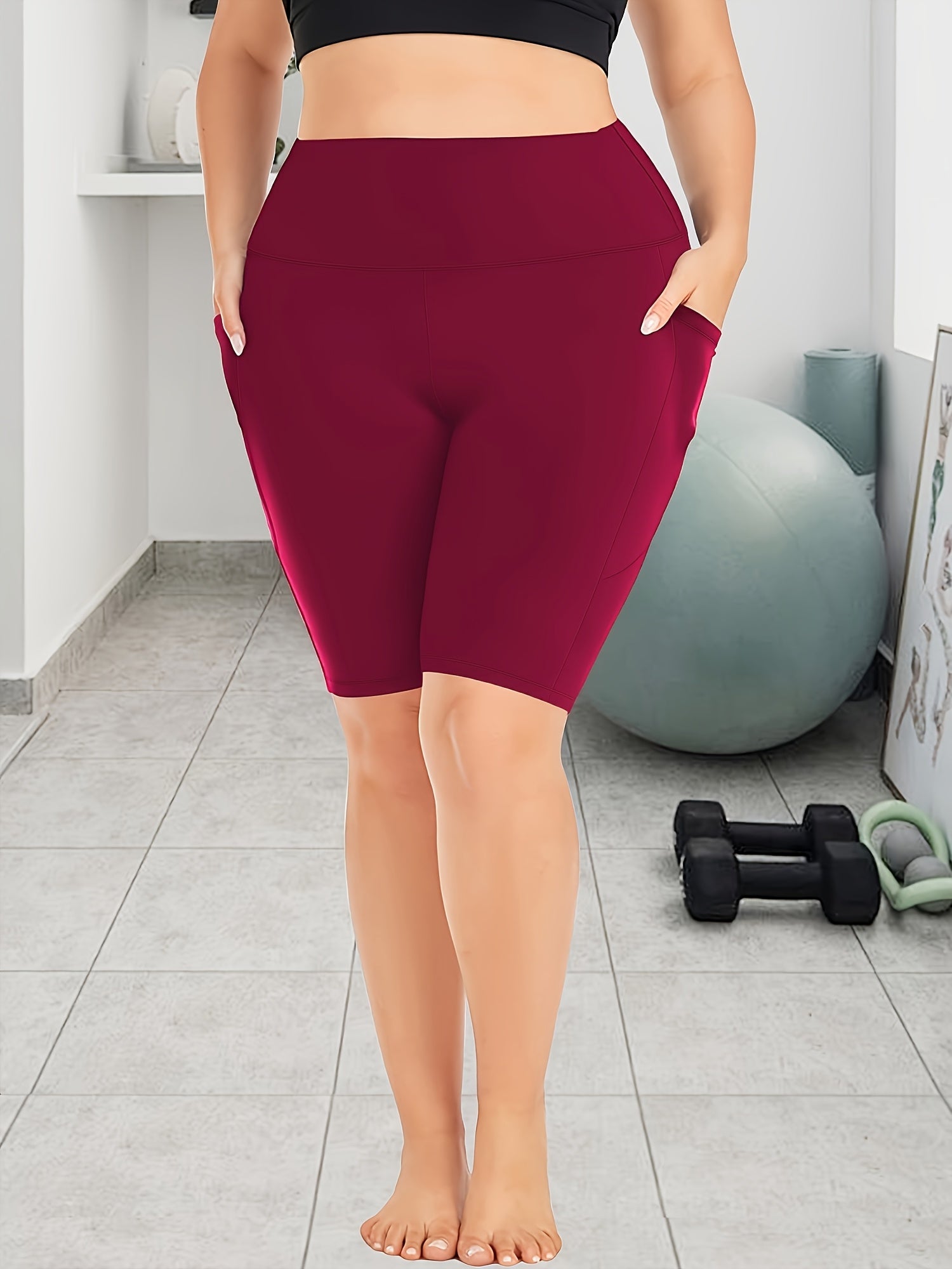 Женские леггинсы капри с высокой талией для полных, эластичные, однотонные, с карманами