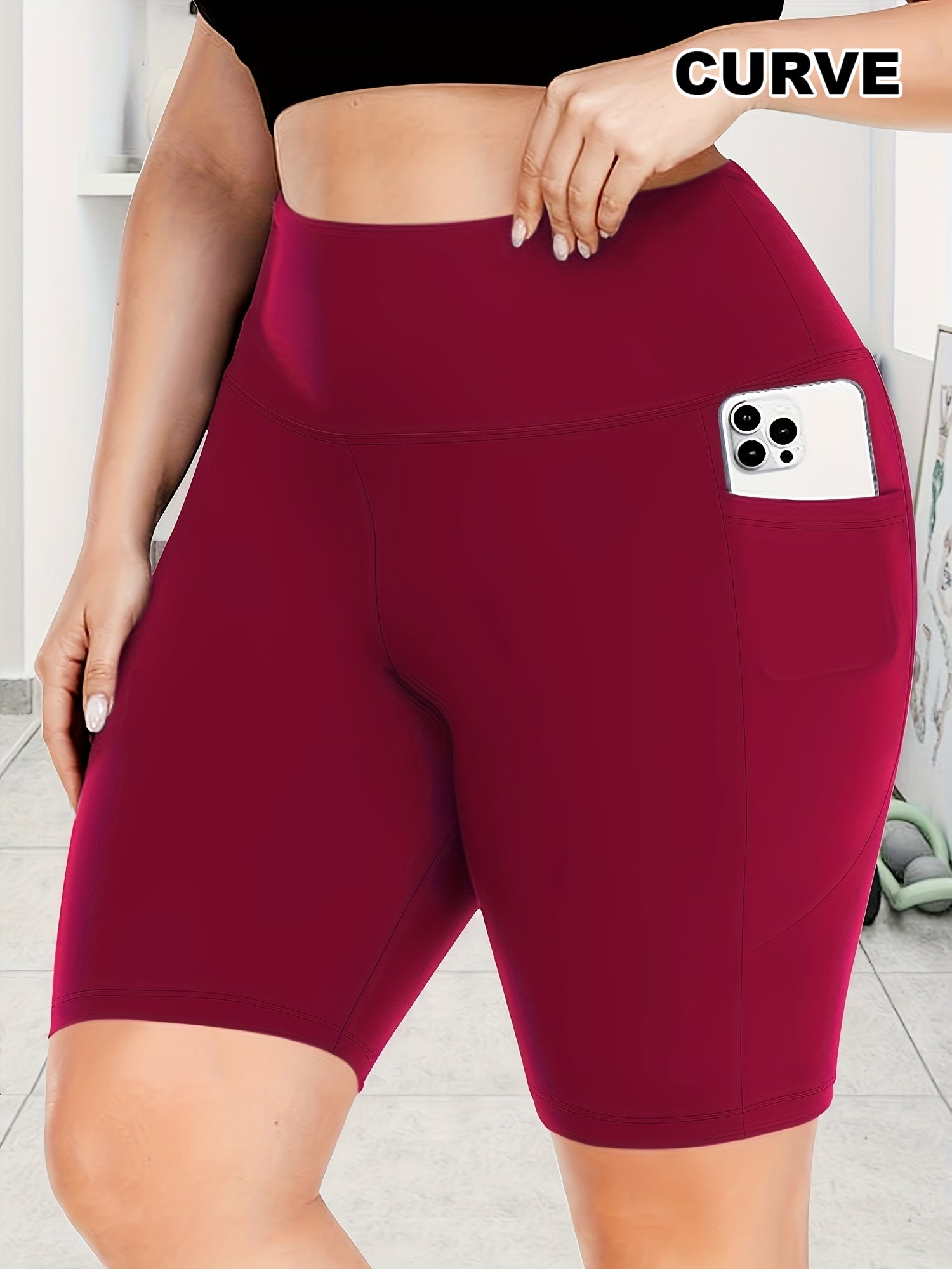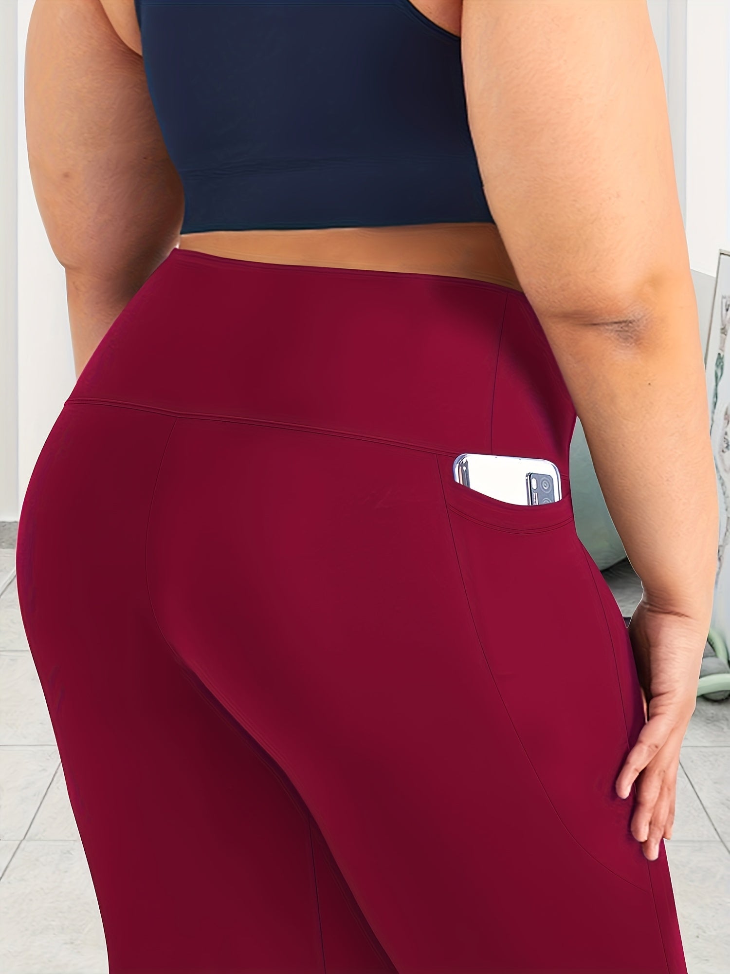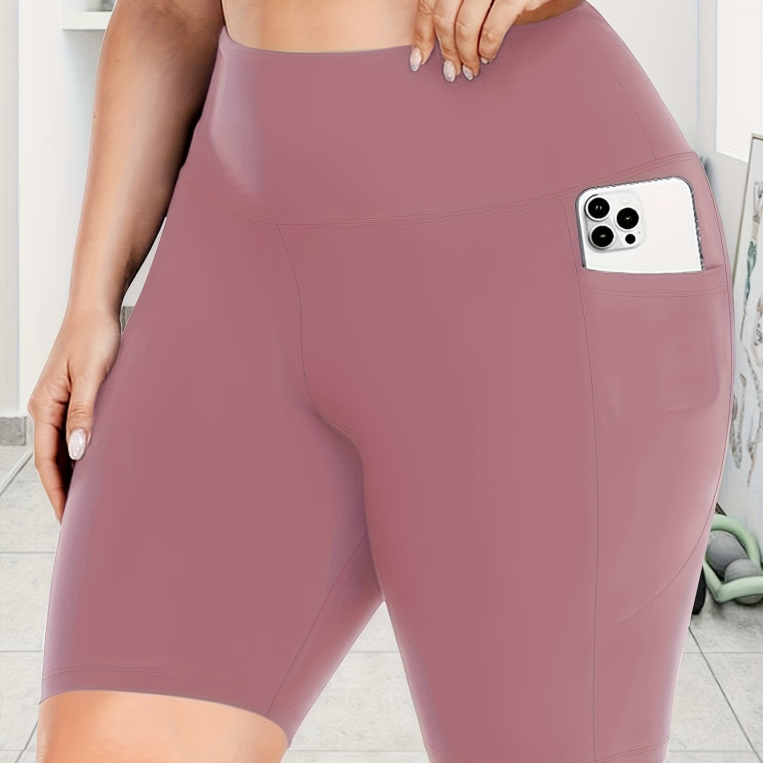 Женские леггинсы капри с высокой талией для полных, эластичные, однотонные, с карманами
