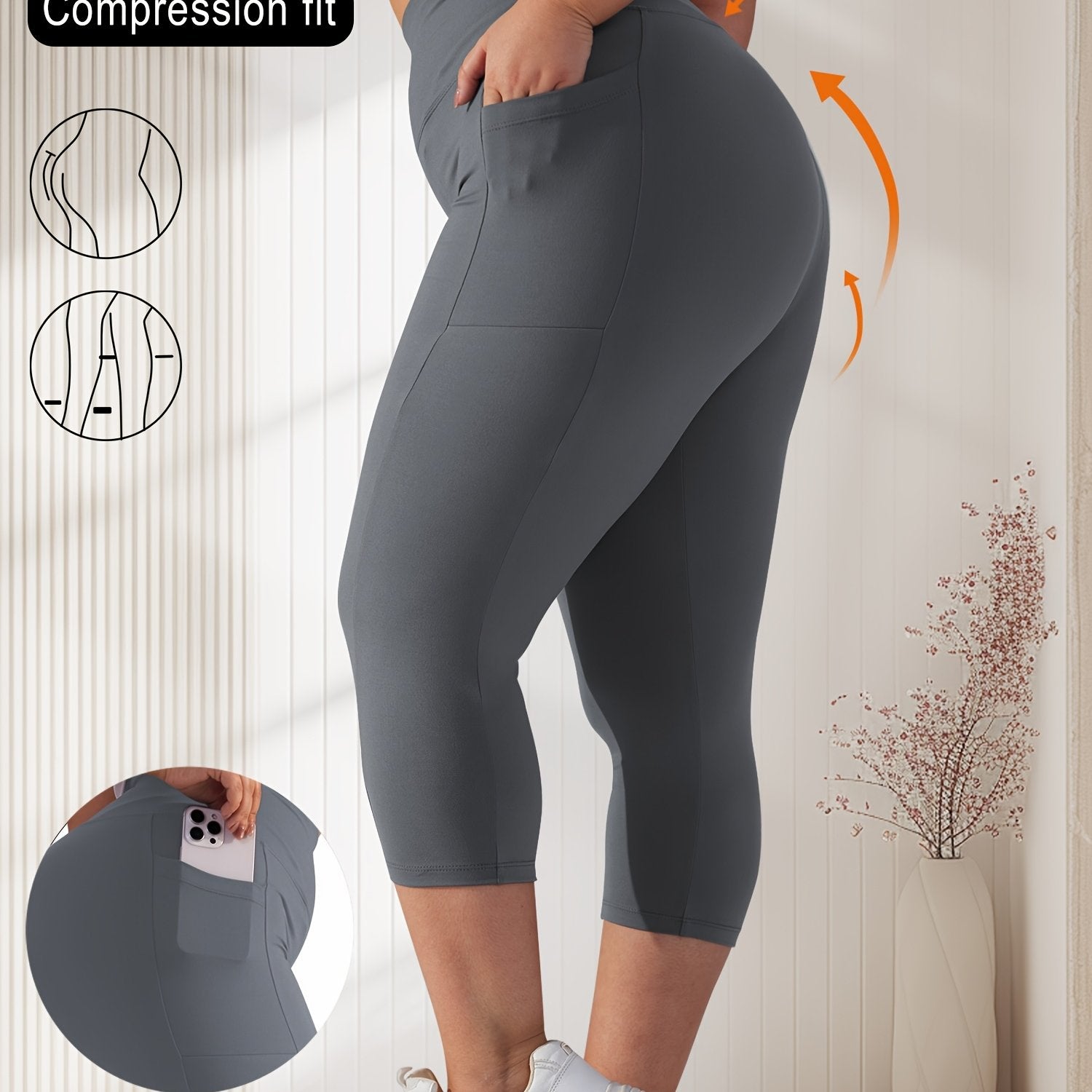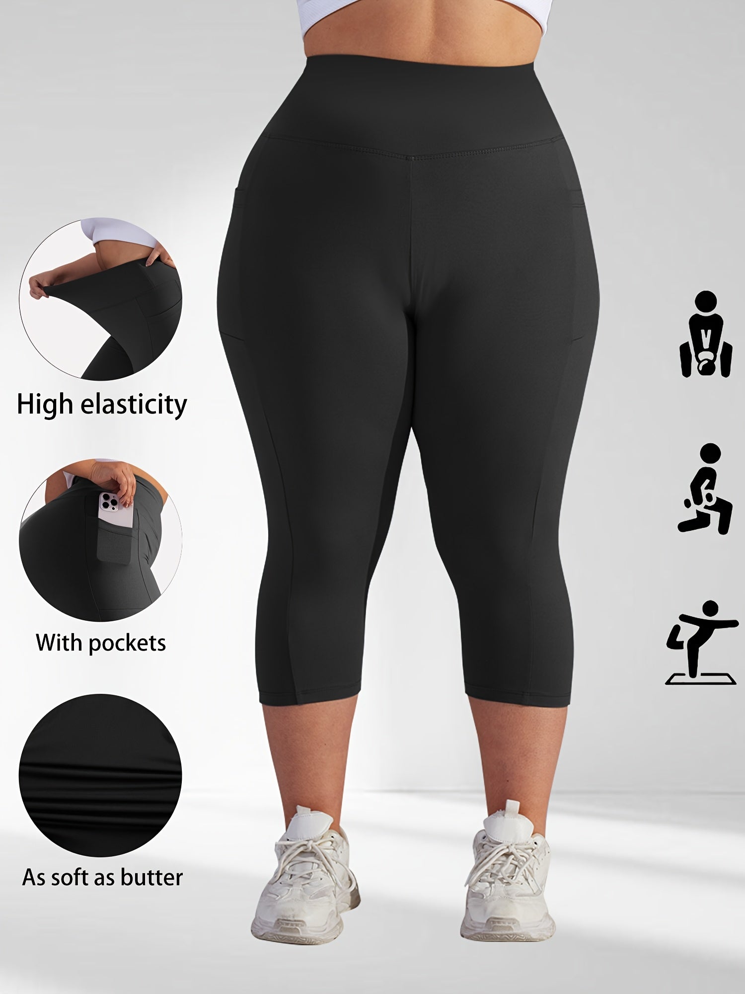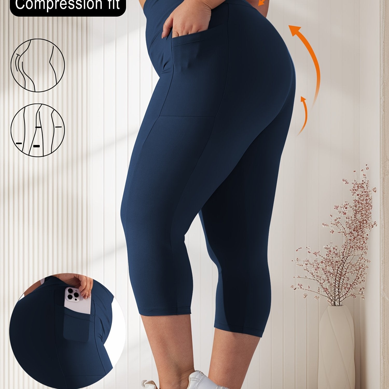Женские капри-лосины большого размера с высокой талией и карманами, из полиэстеровой смеси, тёмно-синий