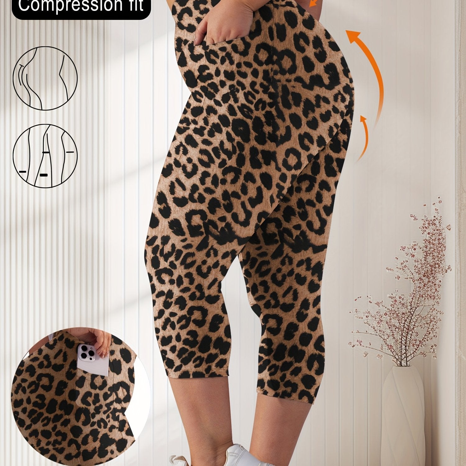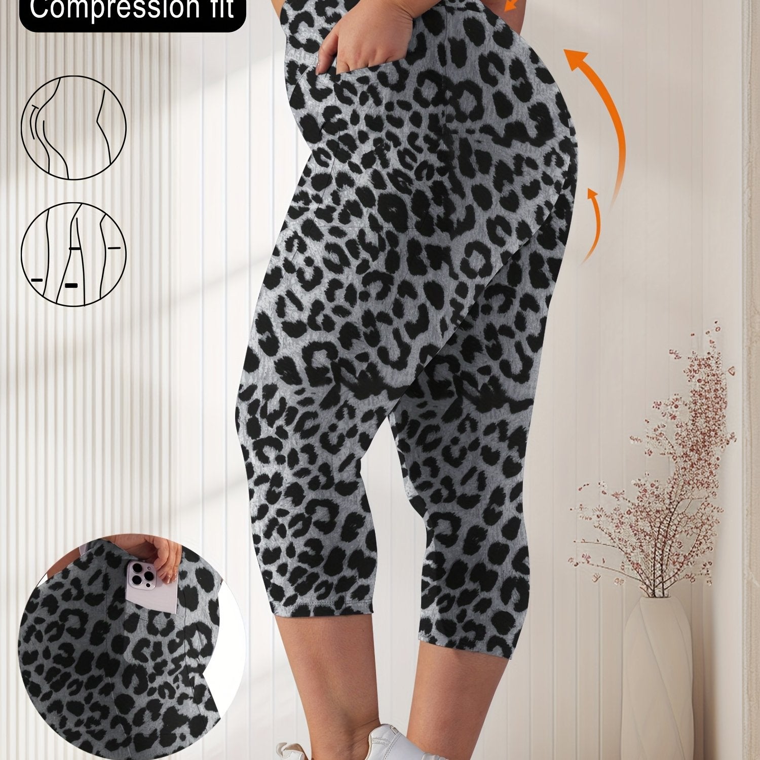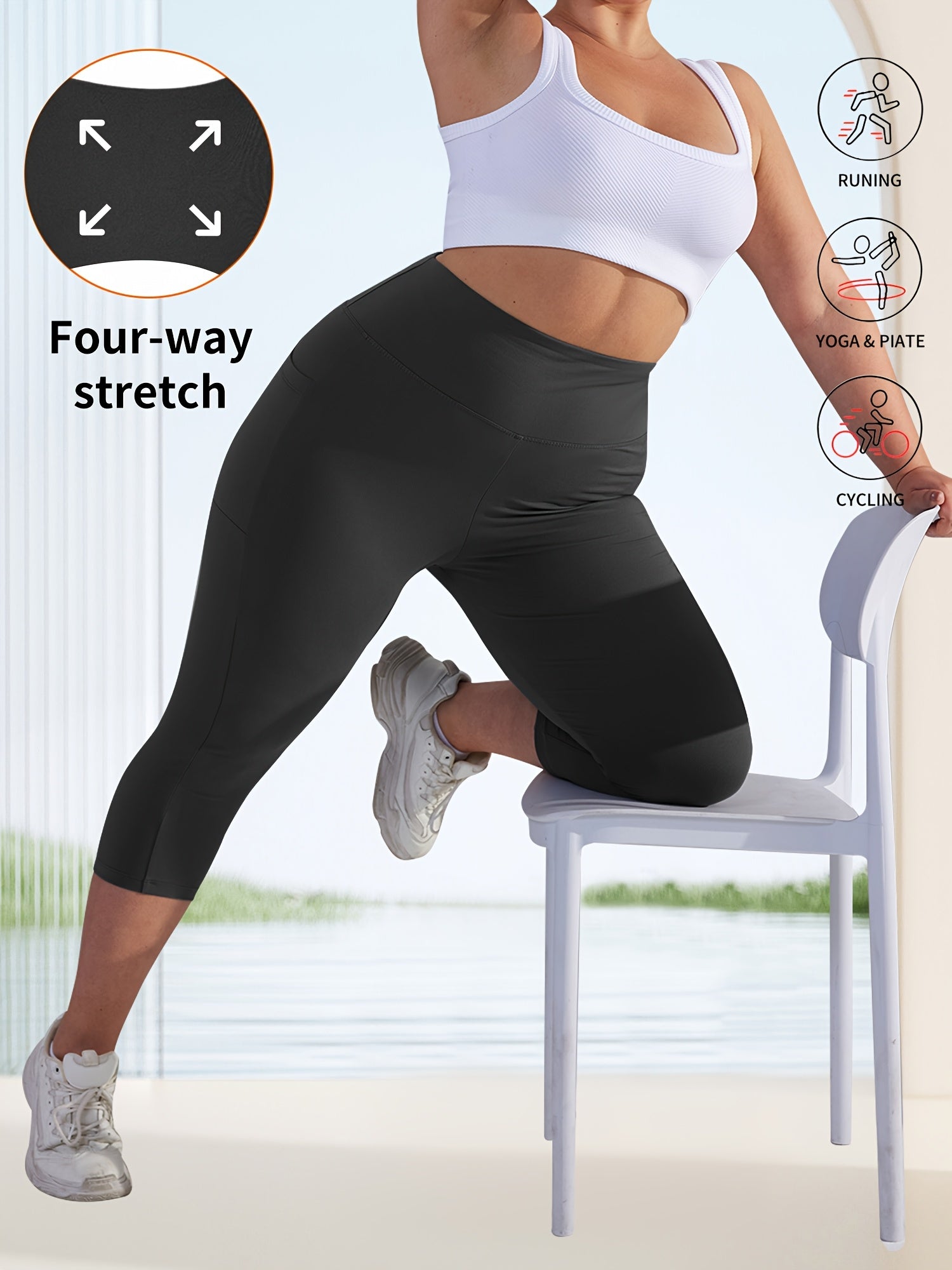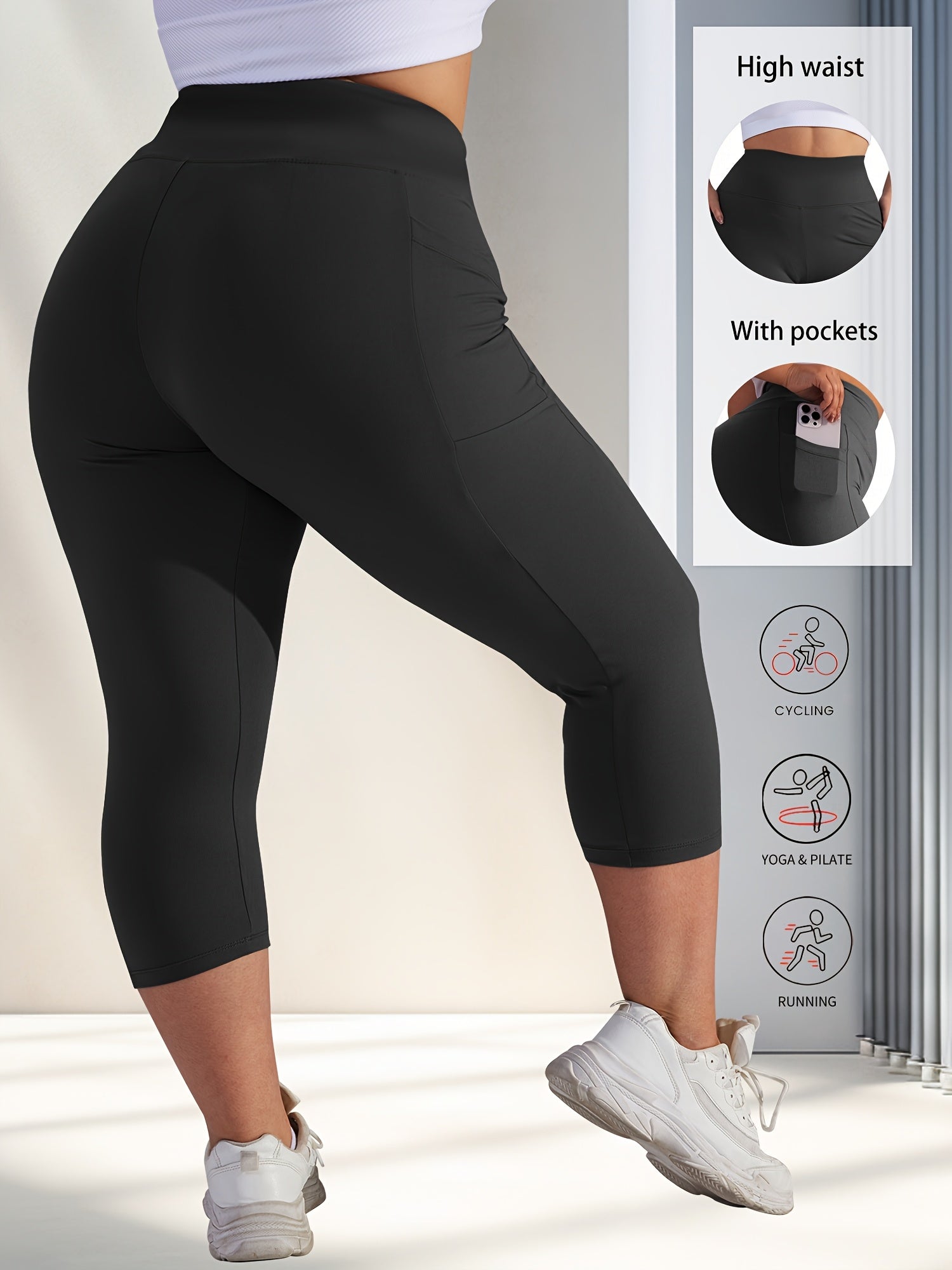 Женские капри-лосины большого размера с высокой талией и карманами, из полиэстеровой смеси, тёмно-синий