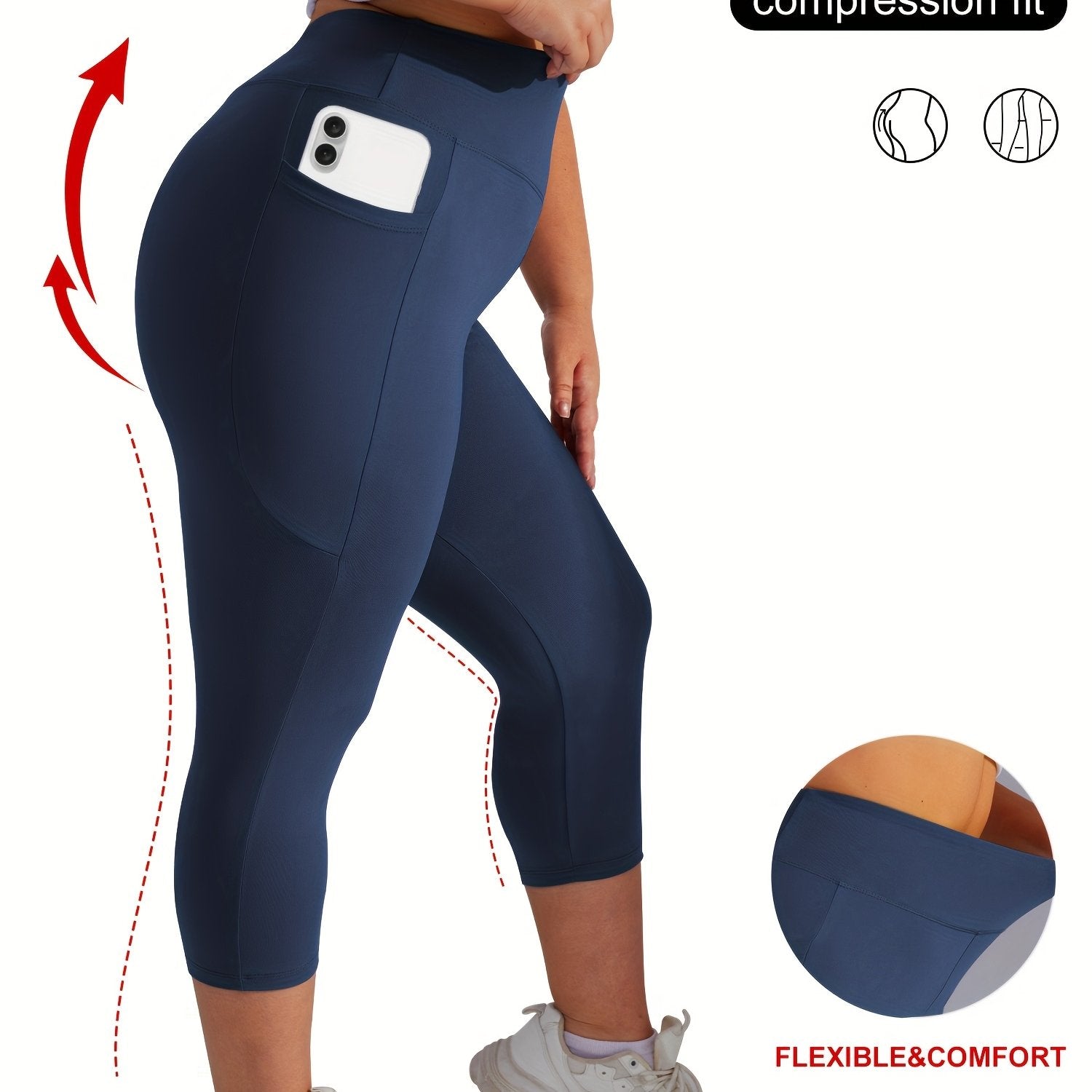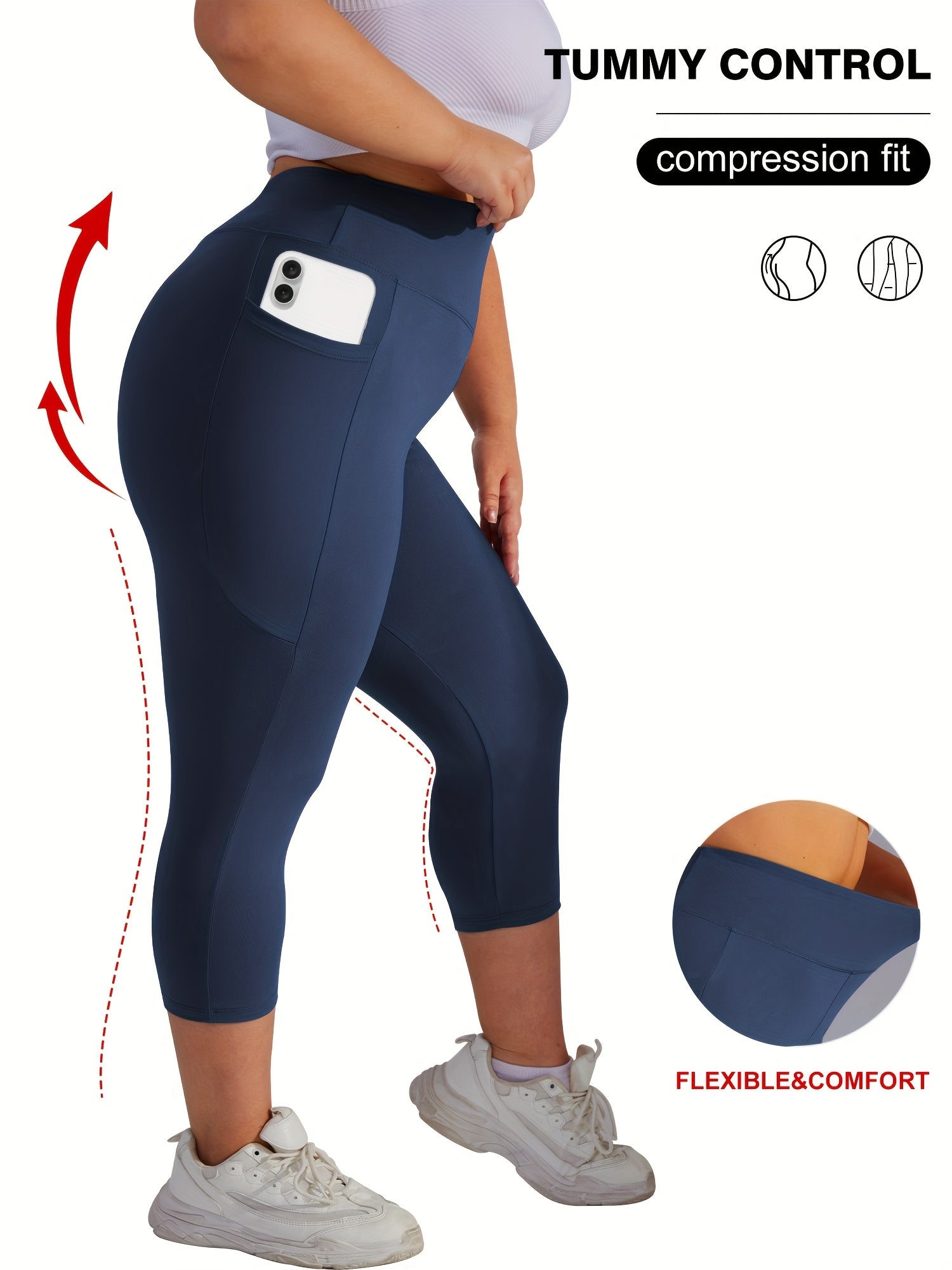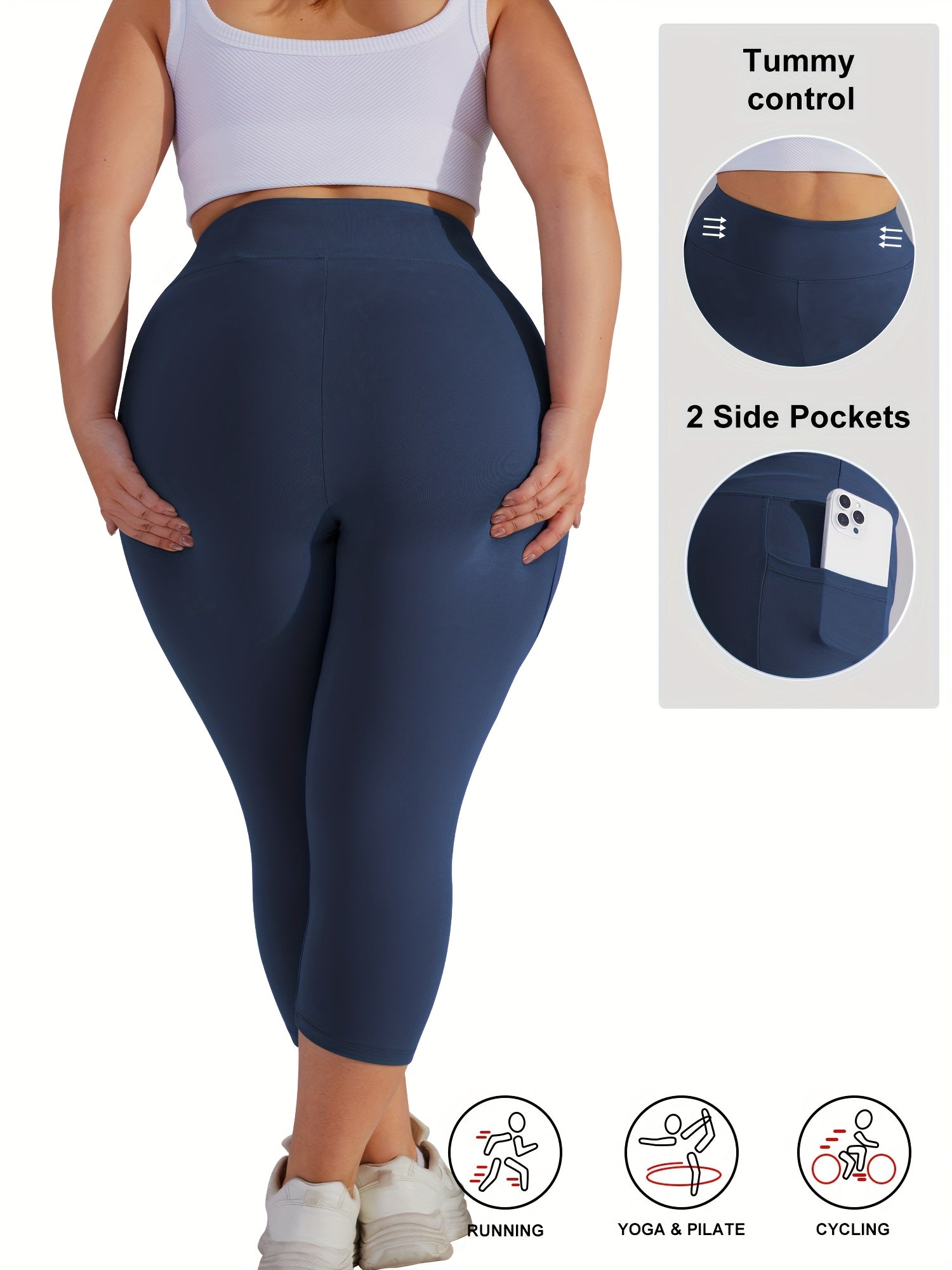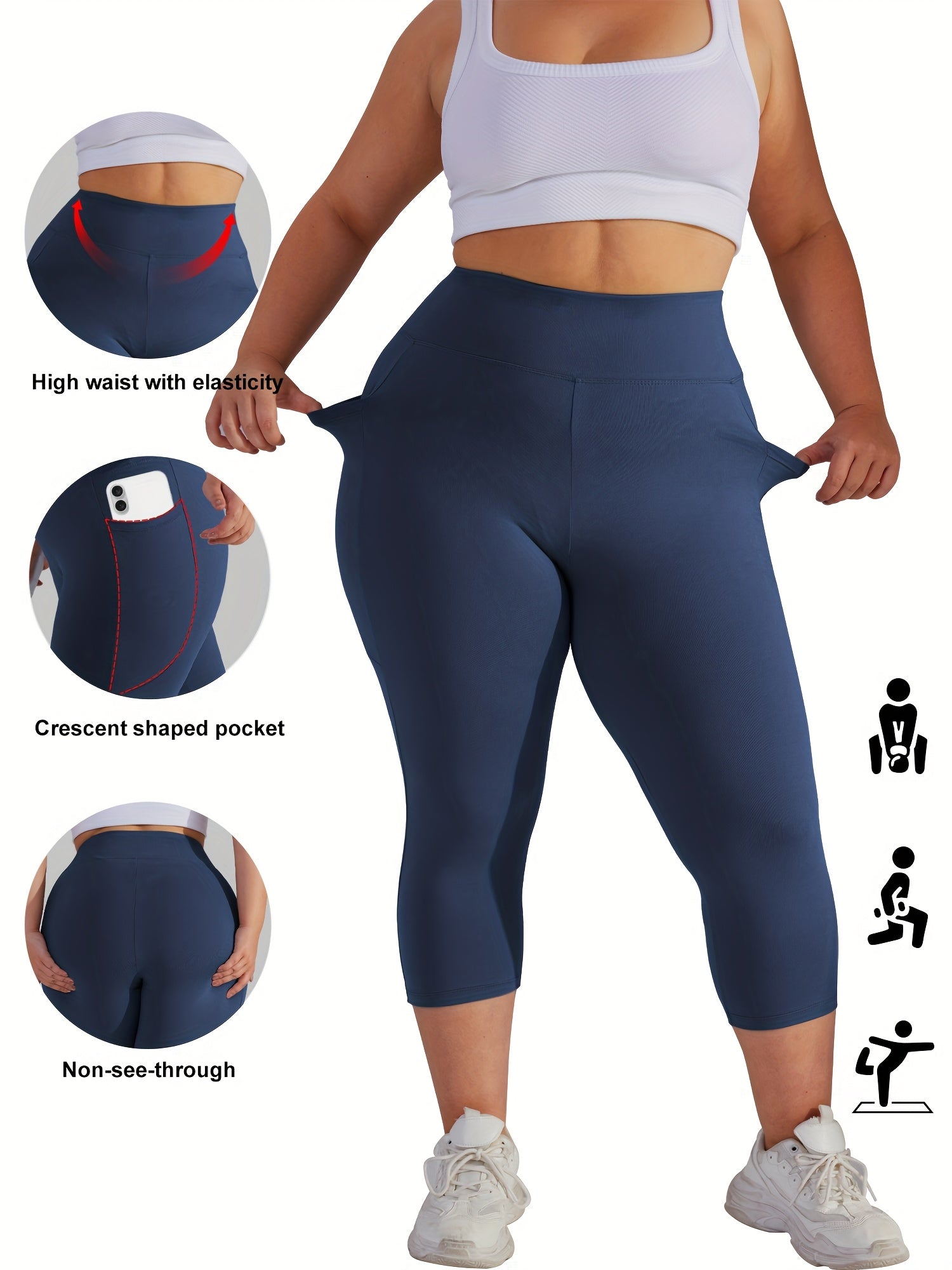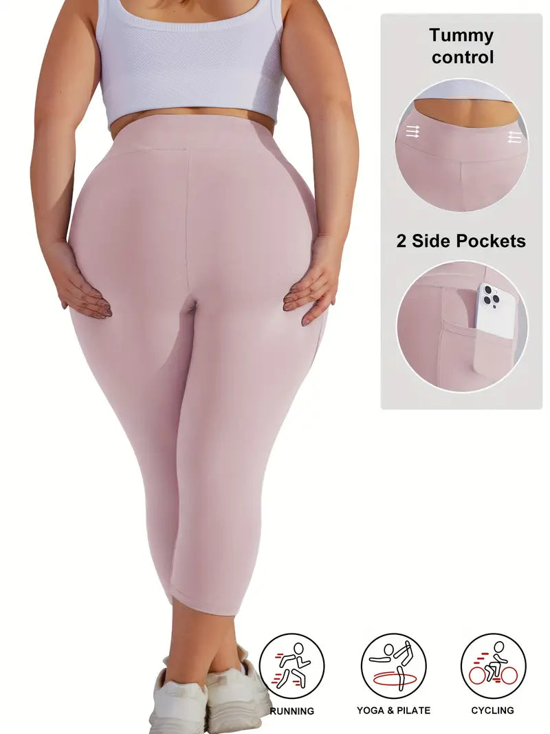 Женские леггинсы для йоги большого размера с высокой талией, карманами и контролем живота