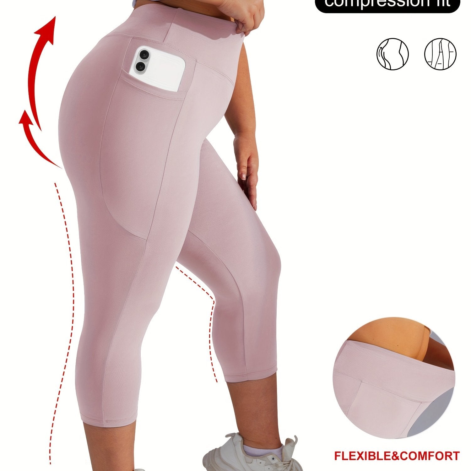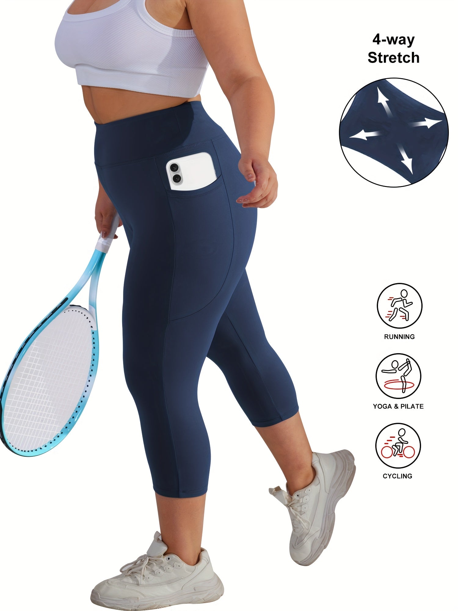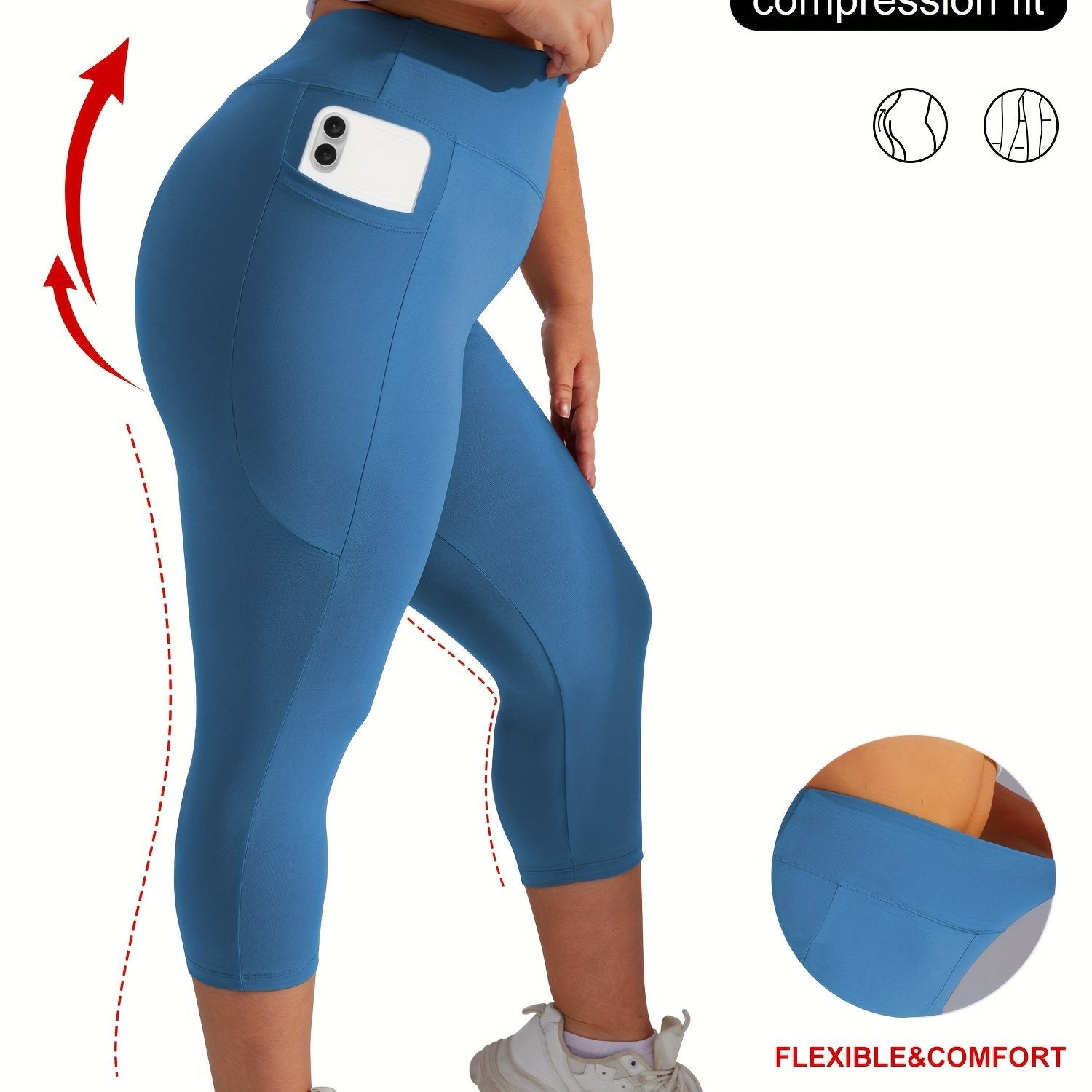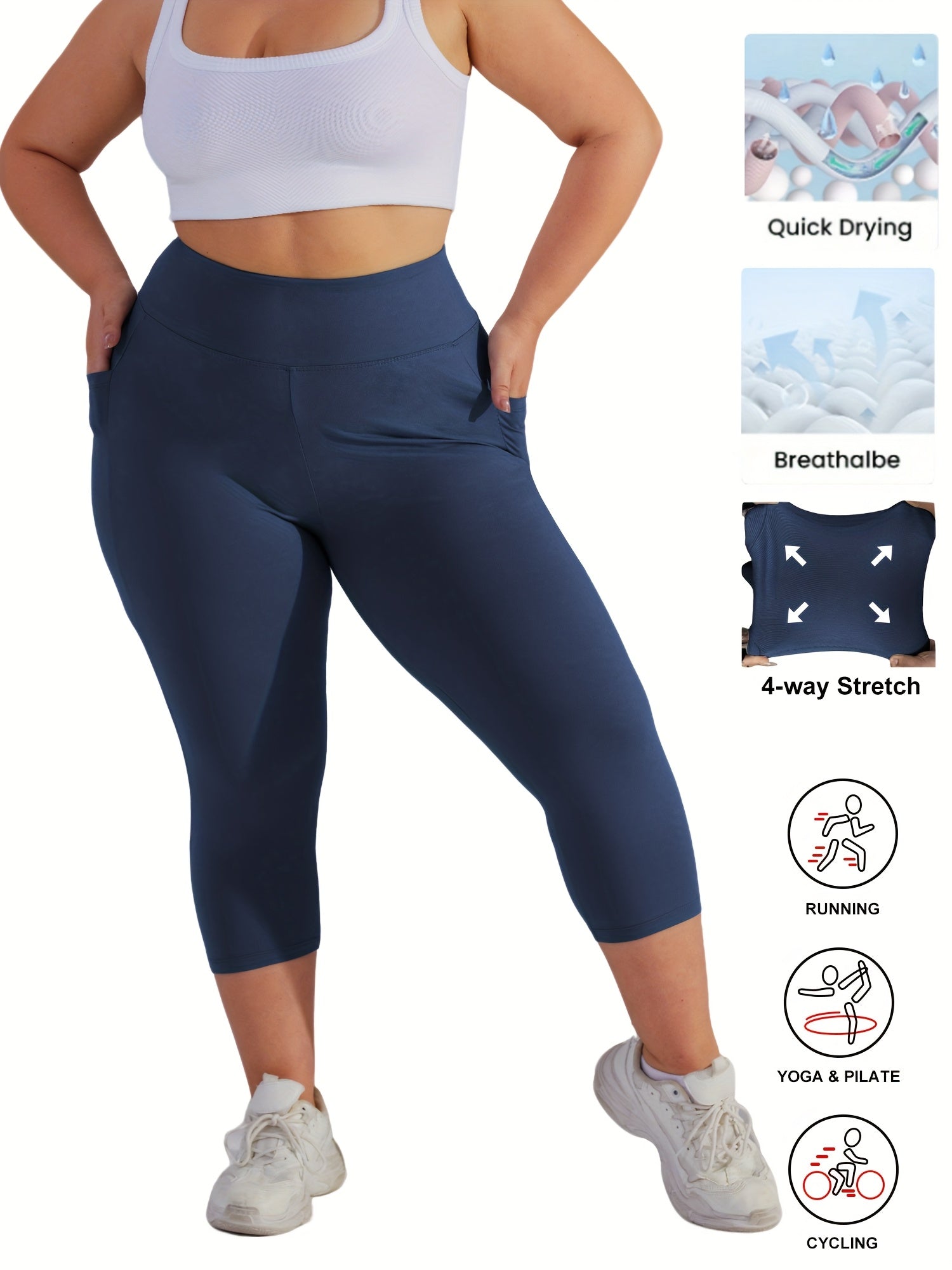 Женские леггинсы для йоги большого размера с высокой талией, карманами и контролем живота