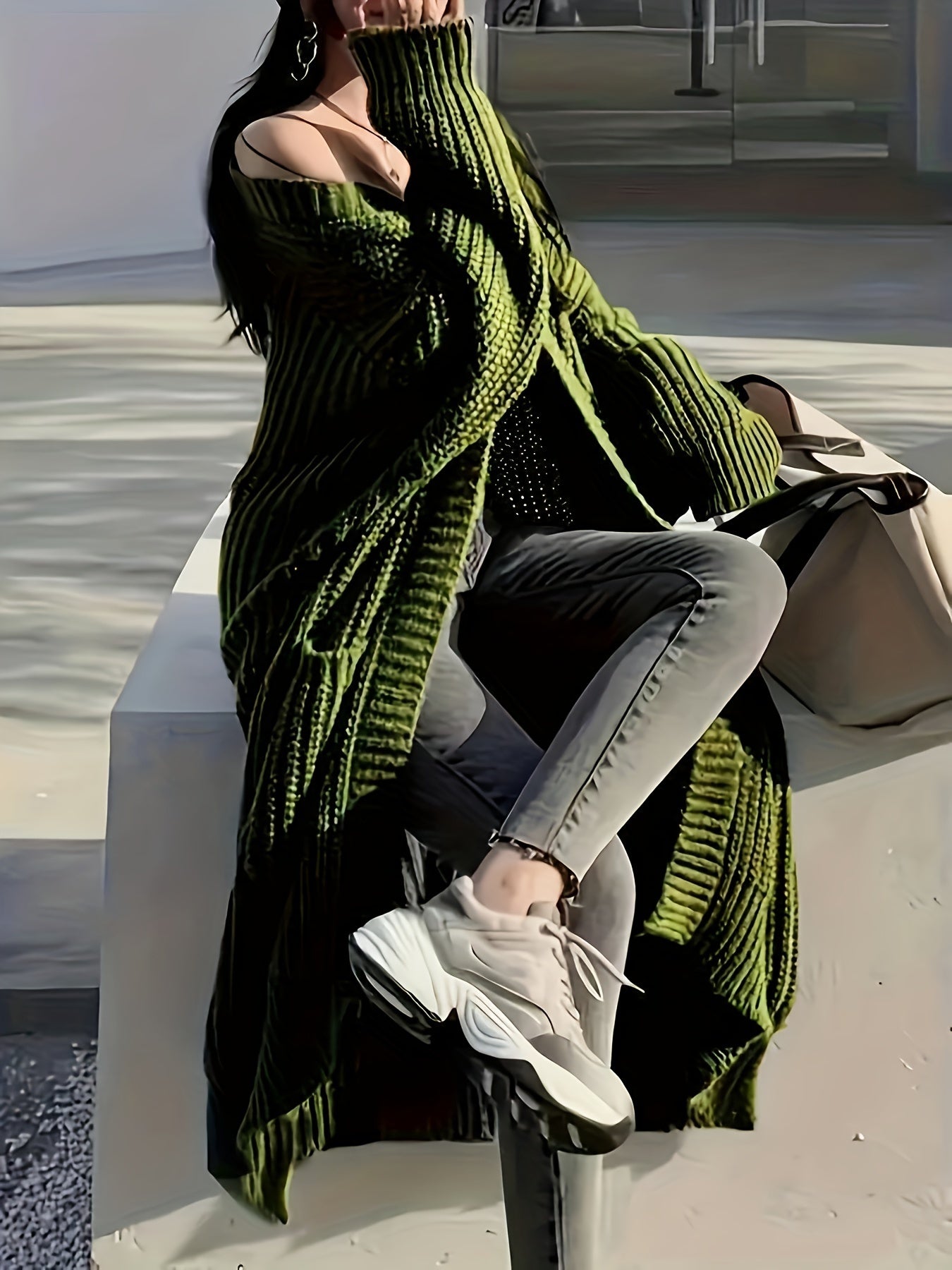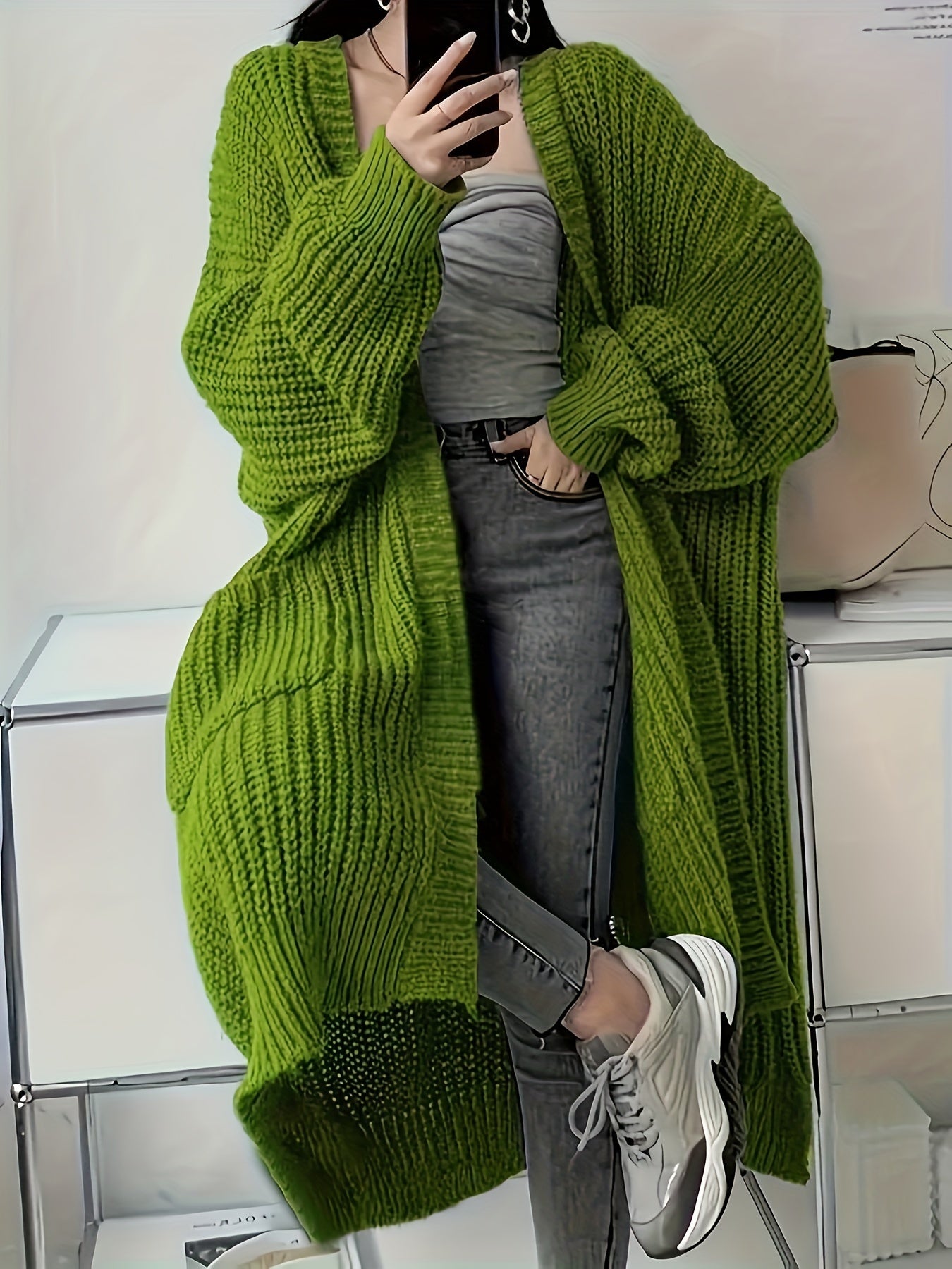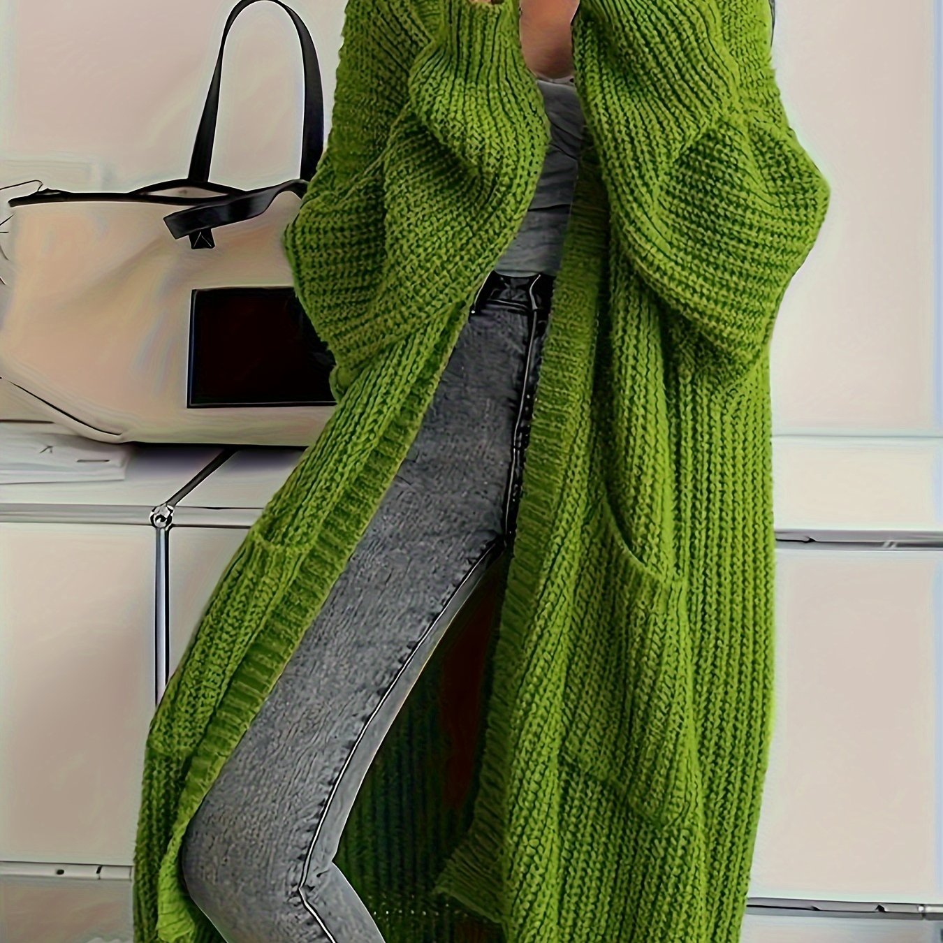 Женский кардиган с длинными рукавами и открытой передней частью, большой размер, повседневный, однотонный, вязаный