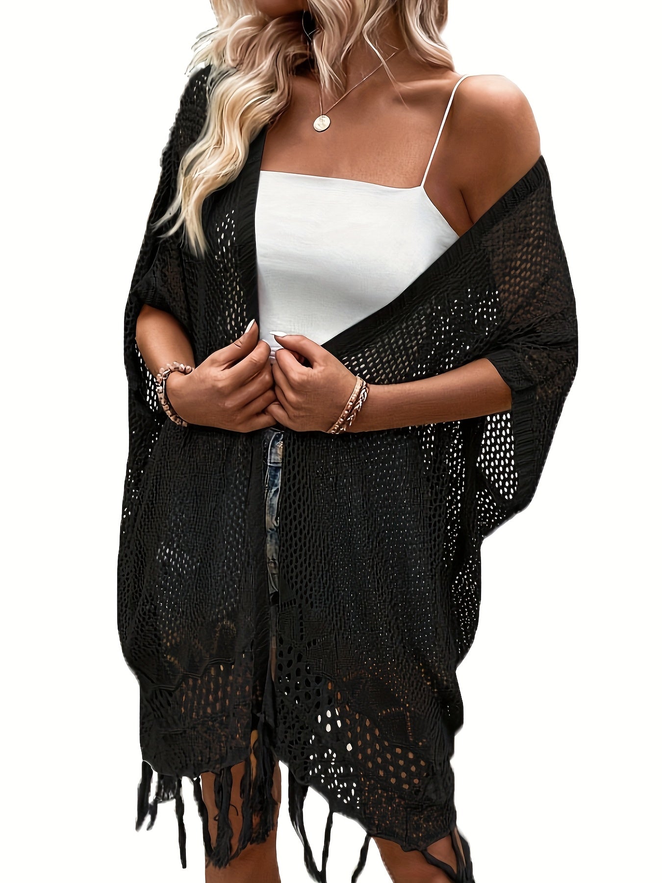 Женский кардиган с крупным гороховым кружевом и открытым передом, пляжная накидка plus size