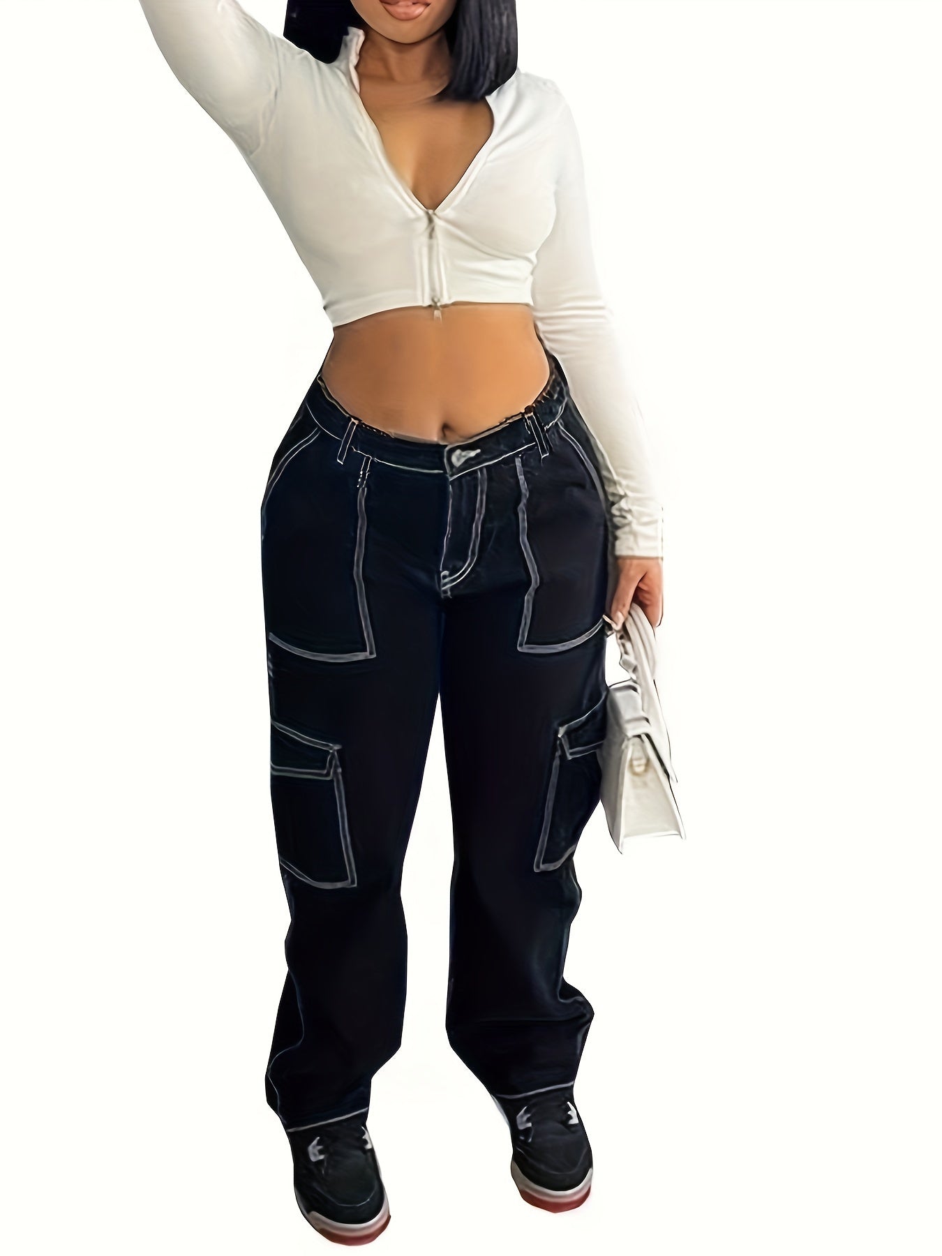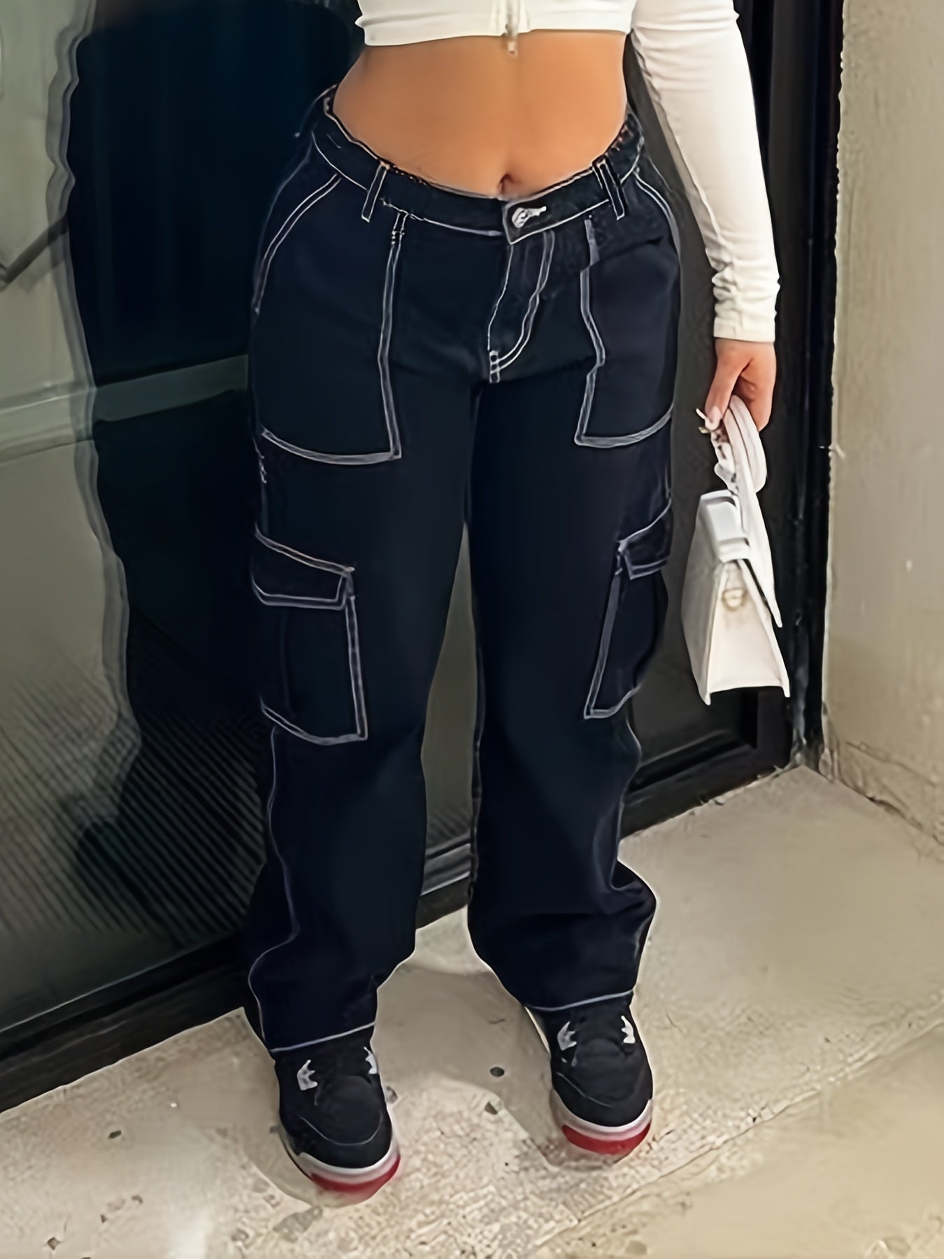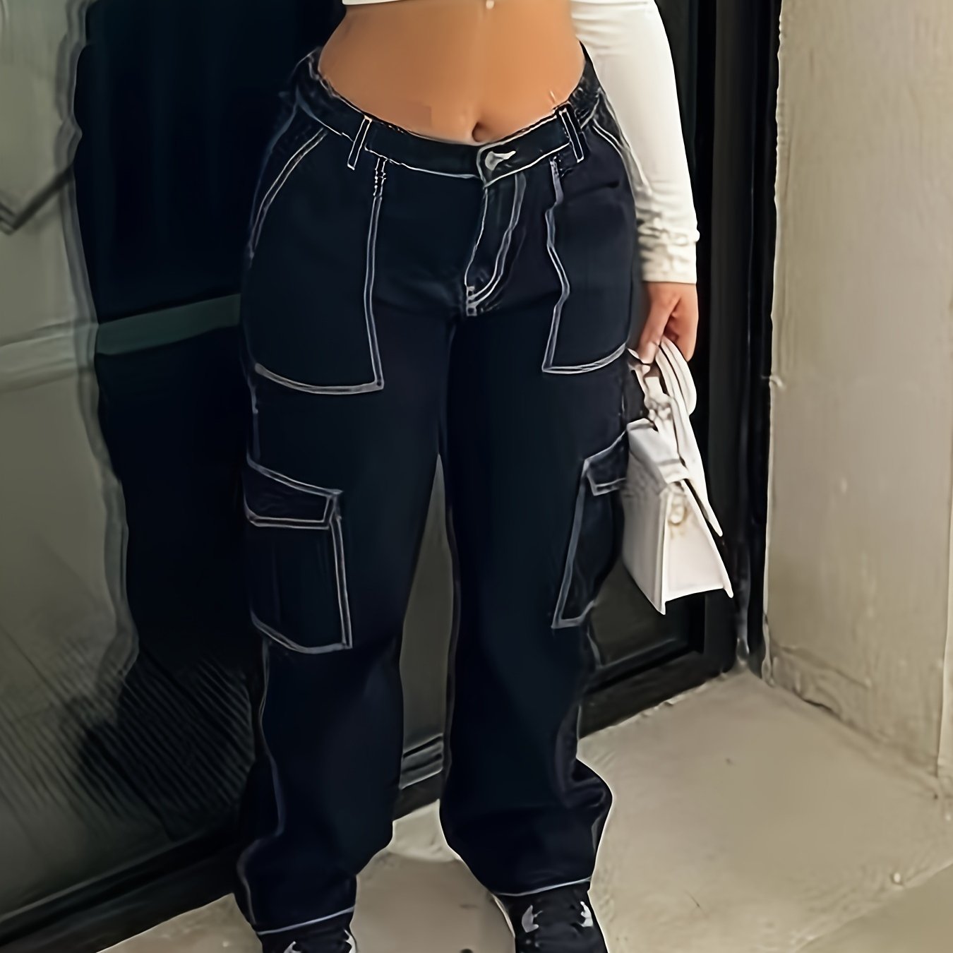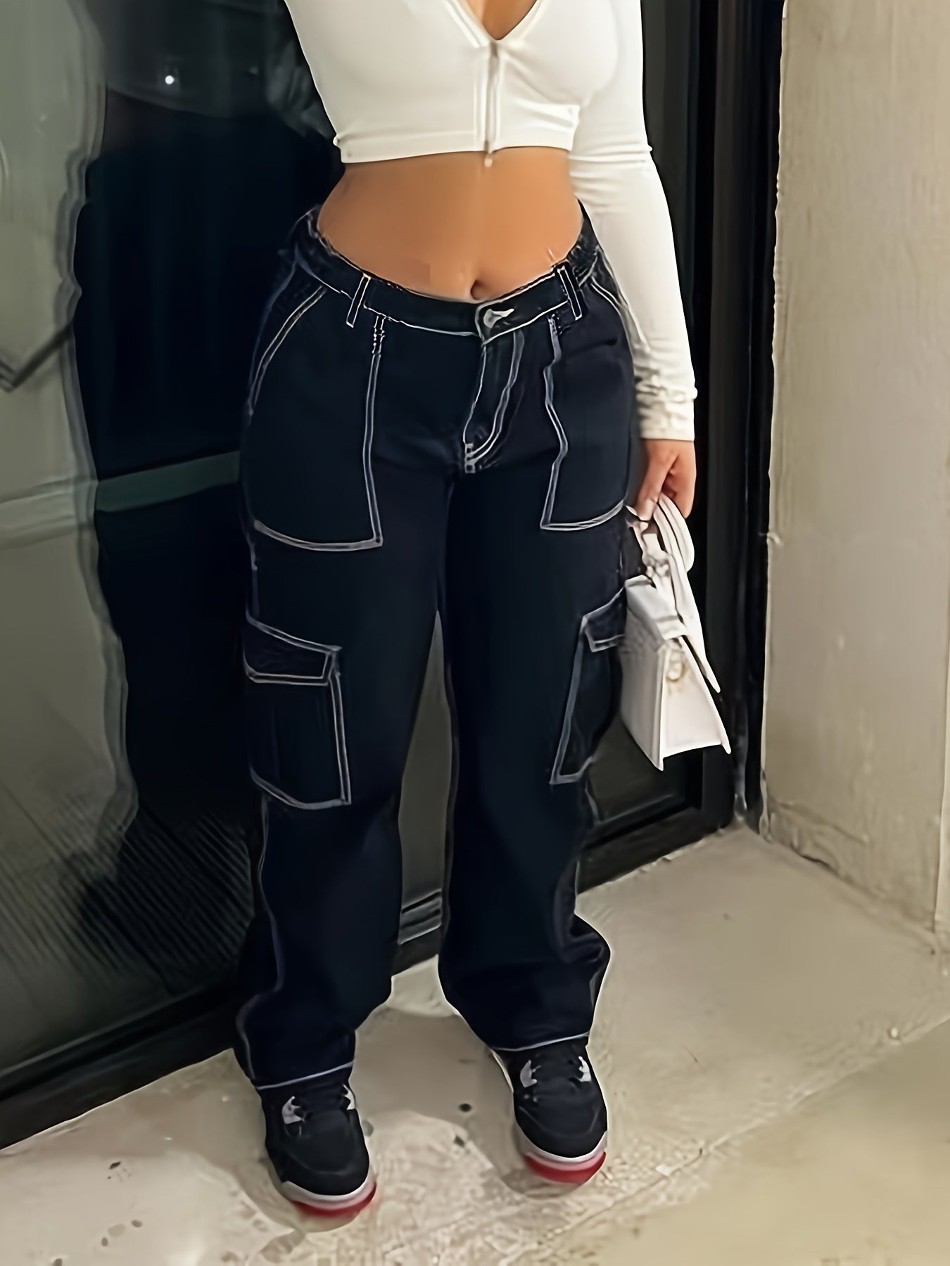 Женские брюки карго из смеси вискозы больших размеров с карманами и молнией