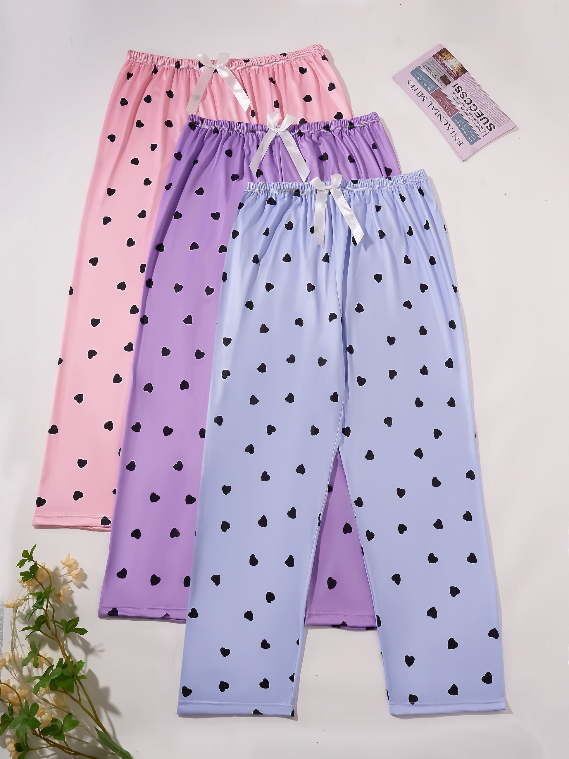 Women's Plus Size Sleep Pants Heart Print Bow Elastic Waist Loose Lounge Trousers