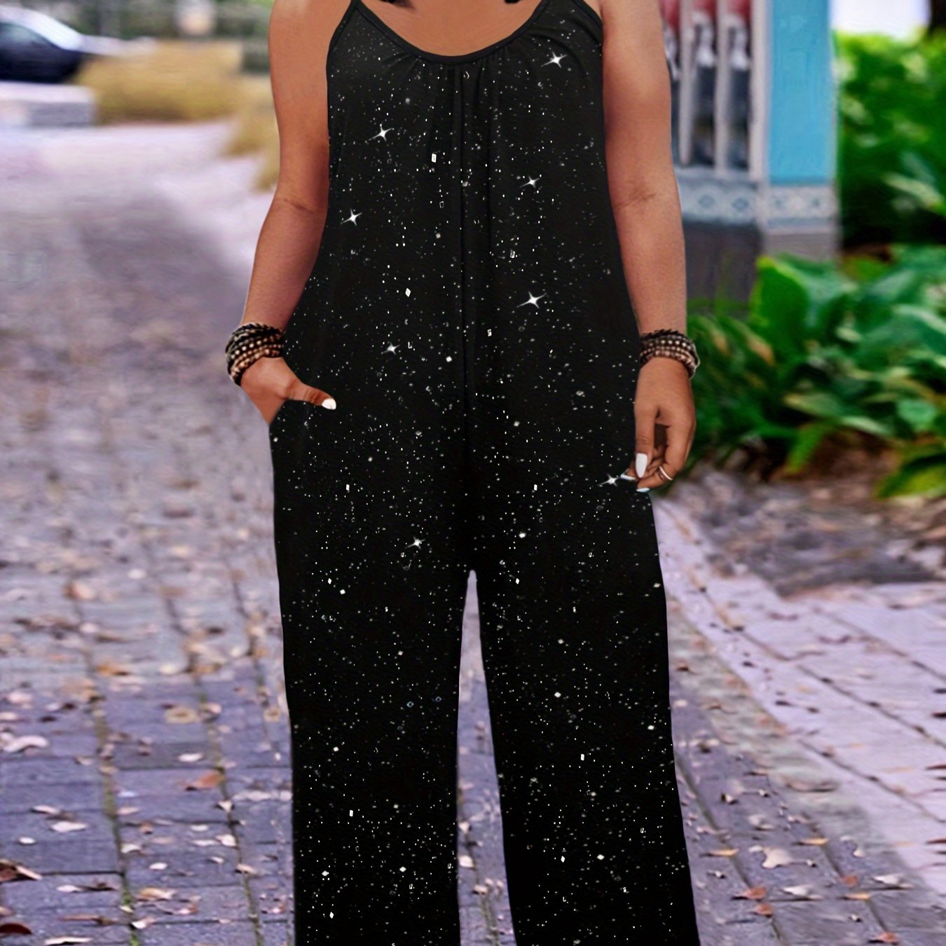 Женский комбинезон большого размера без рукавов летний повседневный с карманами и топом с бретелями
