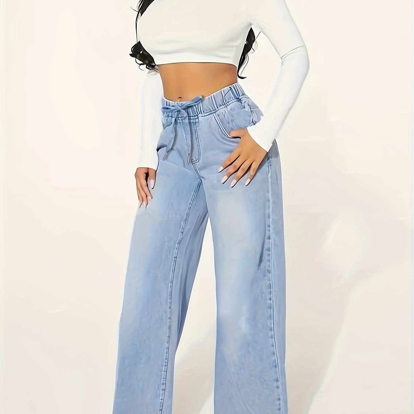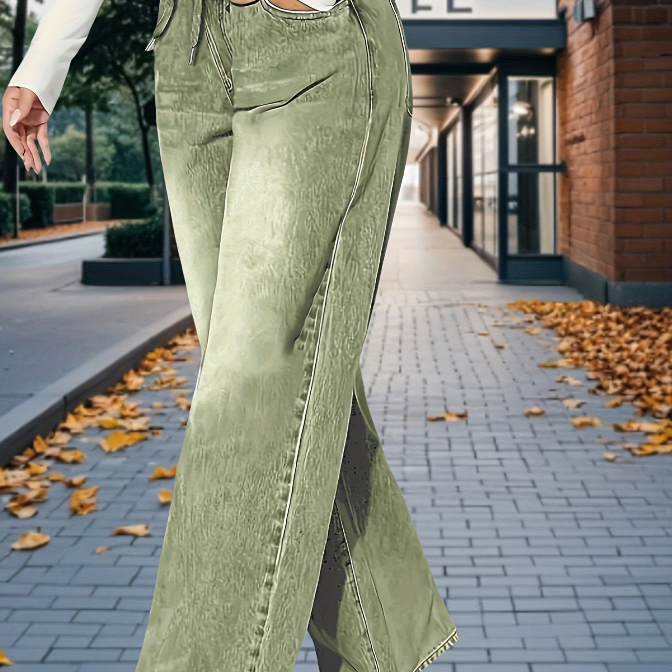 "Джинсы прямого кроя для женщин больших размеров с шнурком - 75% хлопок, 23% полиэстер, 2% спандекс - Долгие брюки однотонного цвета для любого сезона"