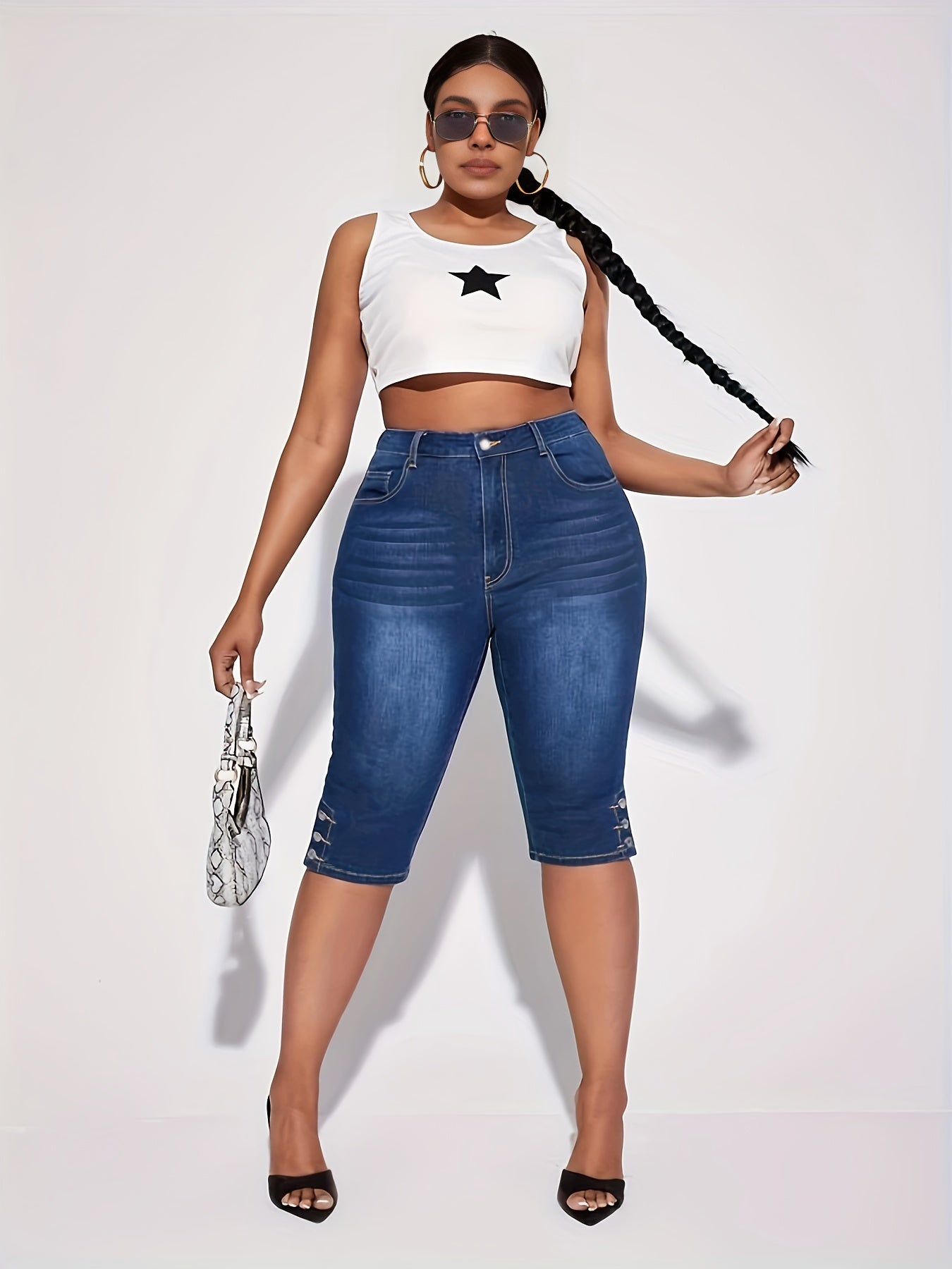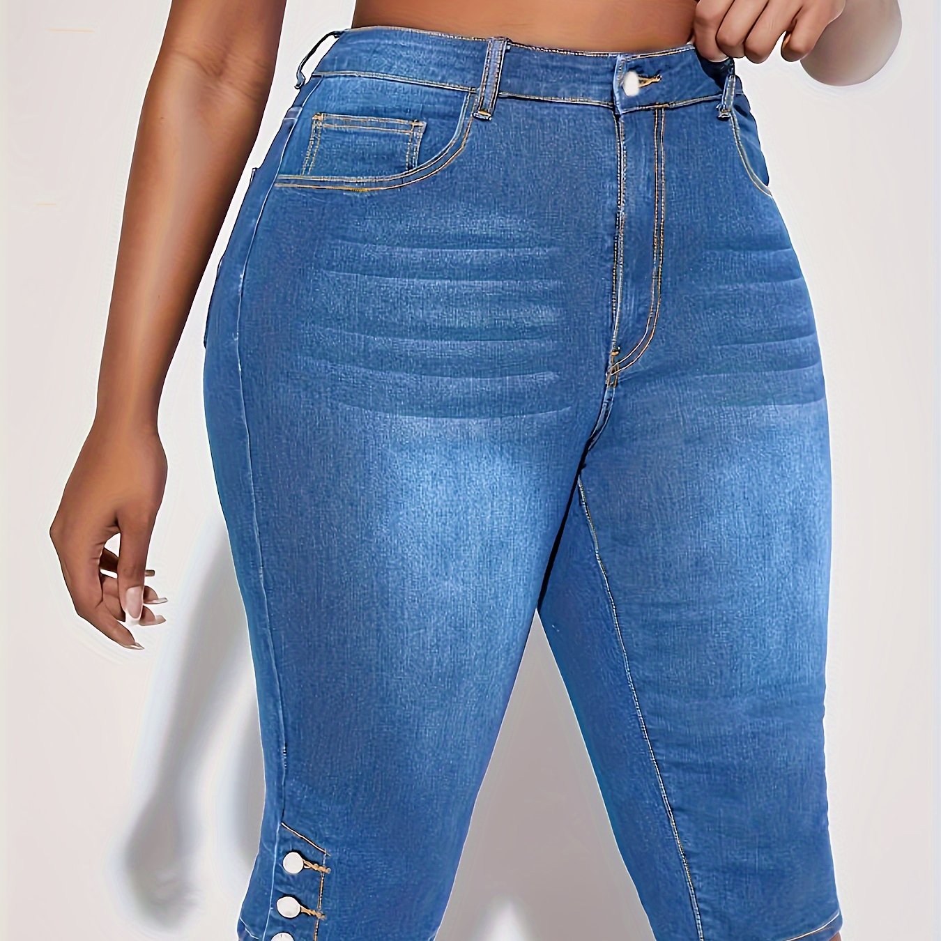 Женские джинсы больших размеров из эластичного денима — эластичный пояс, повседневные и официальные