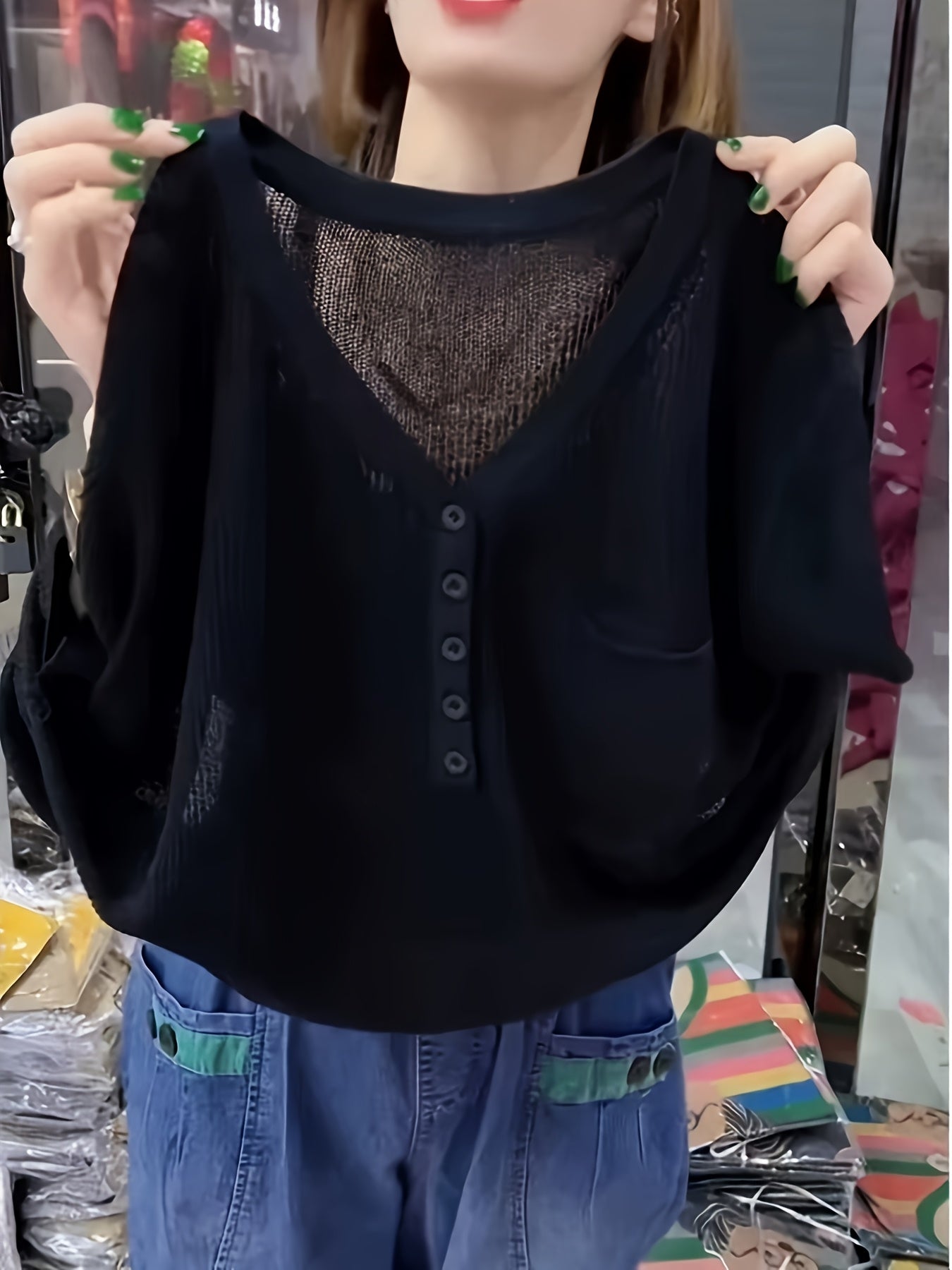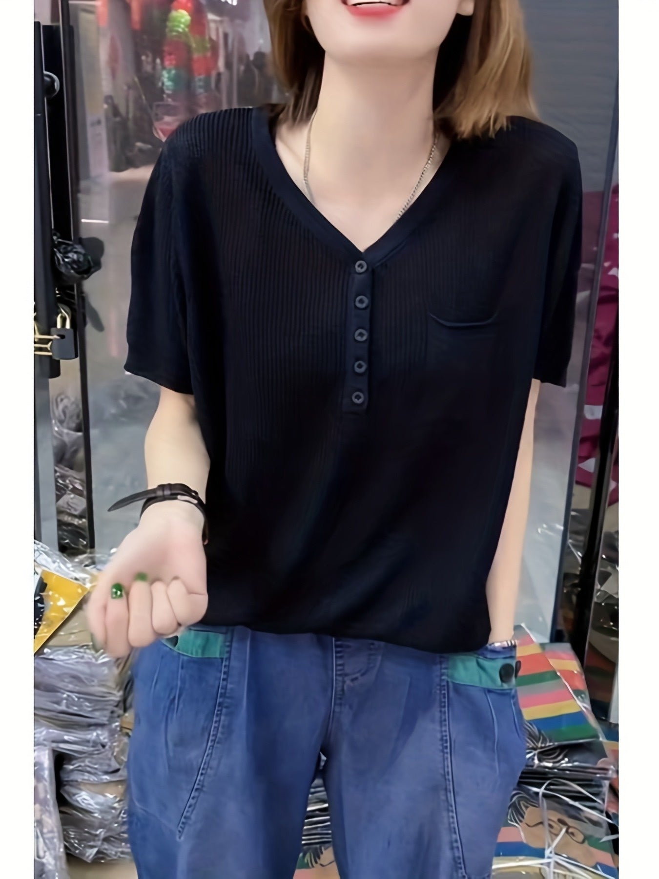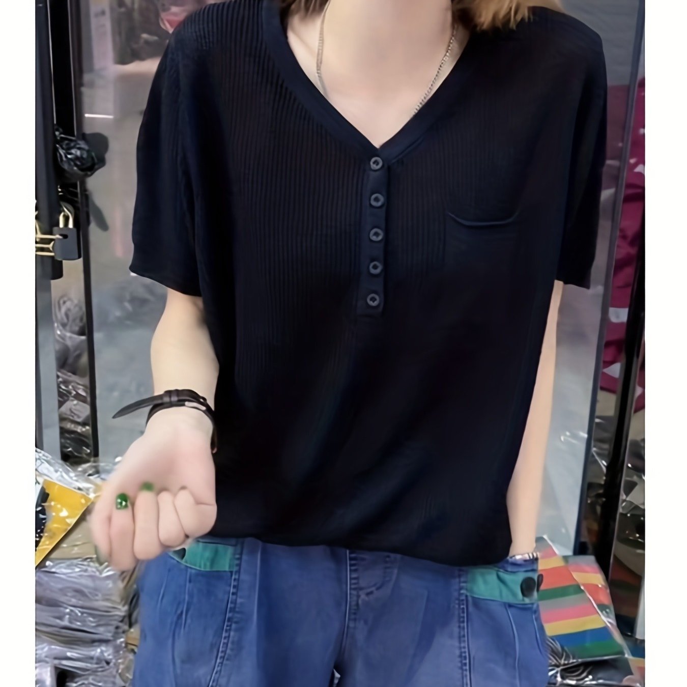 Women's Plus Size Stretchy V-Neck T-Shirt Navy Blue Casual Top