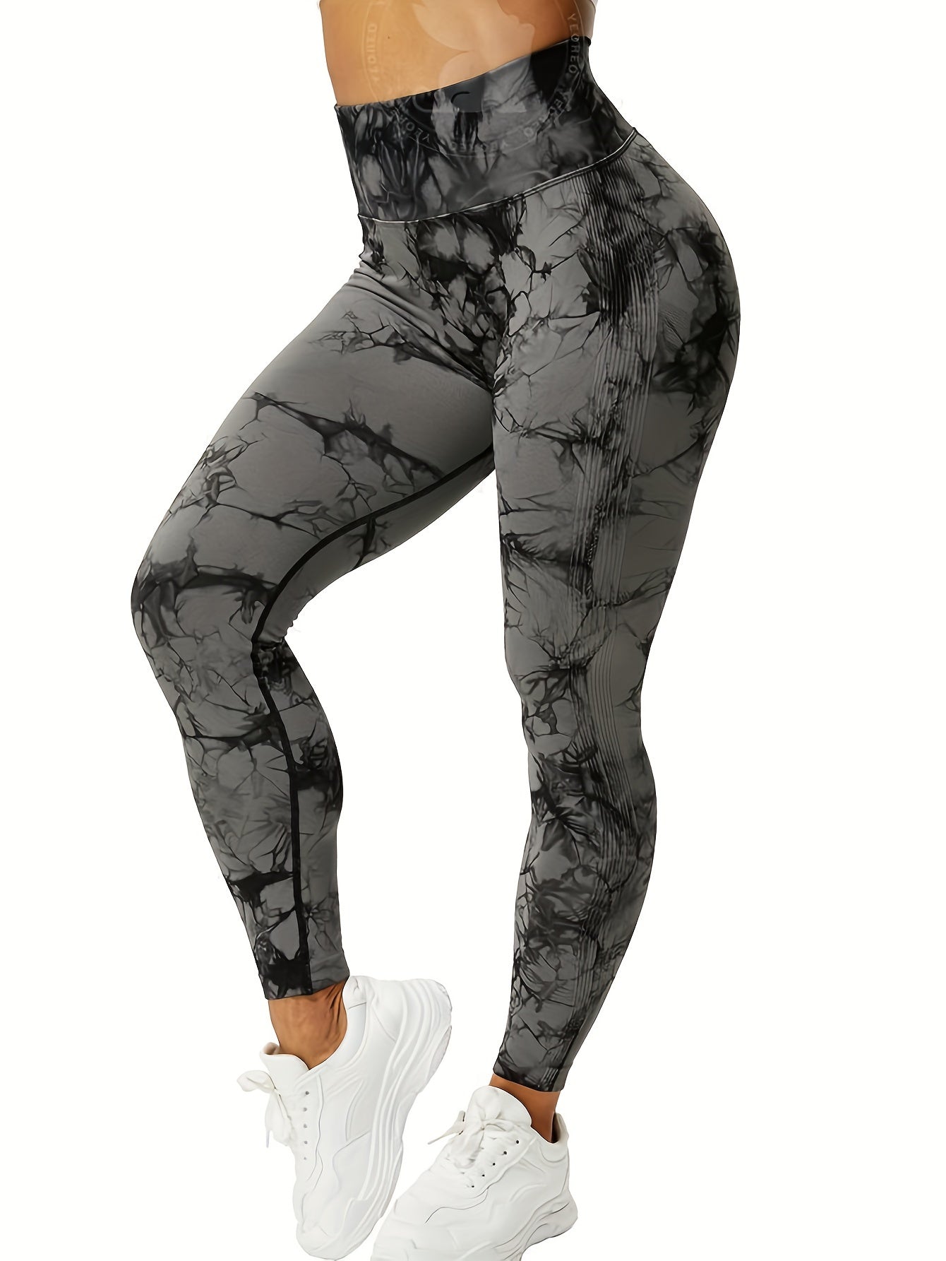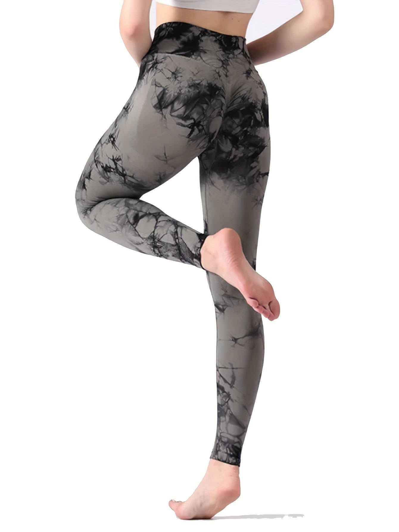 Женские леггинсы для йоги с высоким поясом и эффектом тай-дай, с эластичной и впитывающей тканью