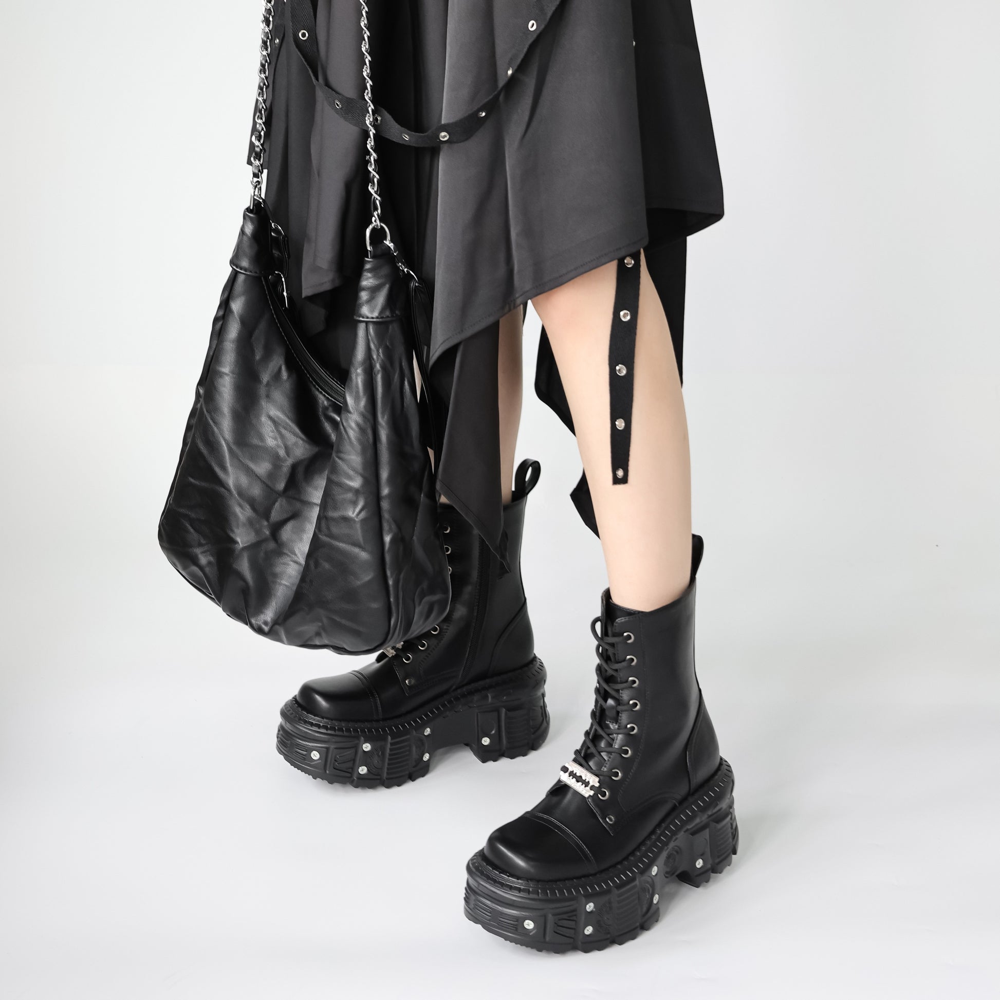 Женские панк-ботинки на платформе с закрытым голенищем, на шнуровке, круглым носком, однотонные, стиль Y2K