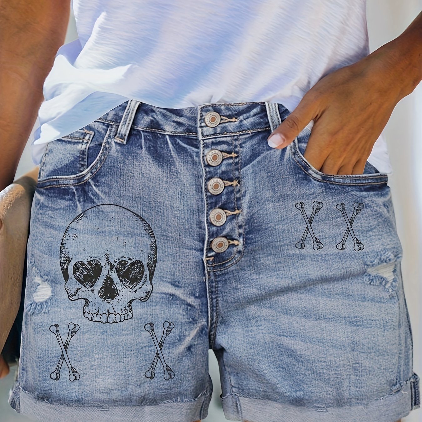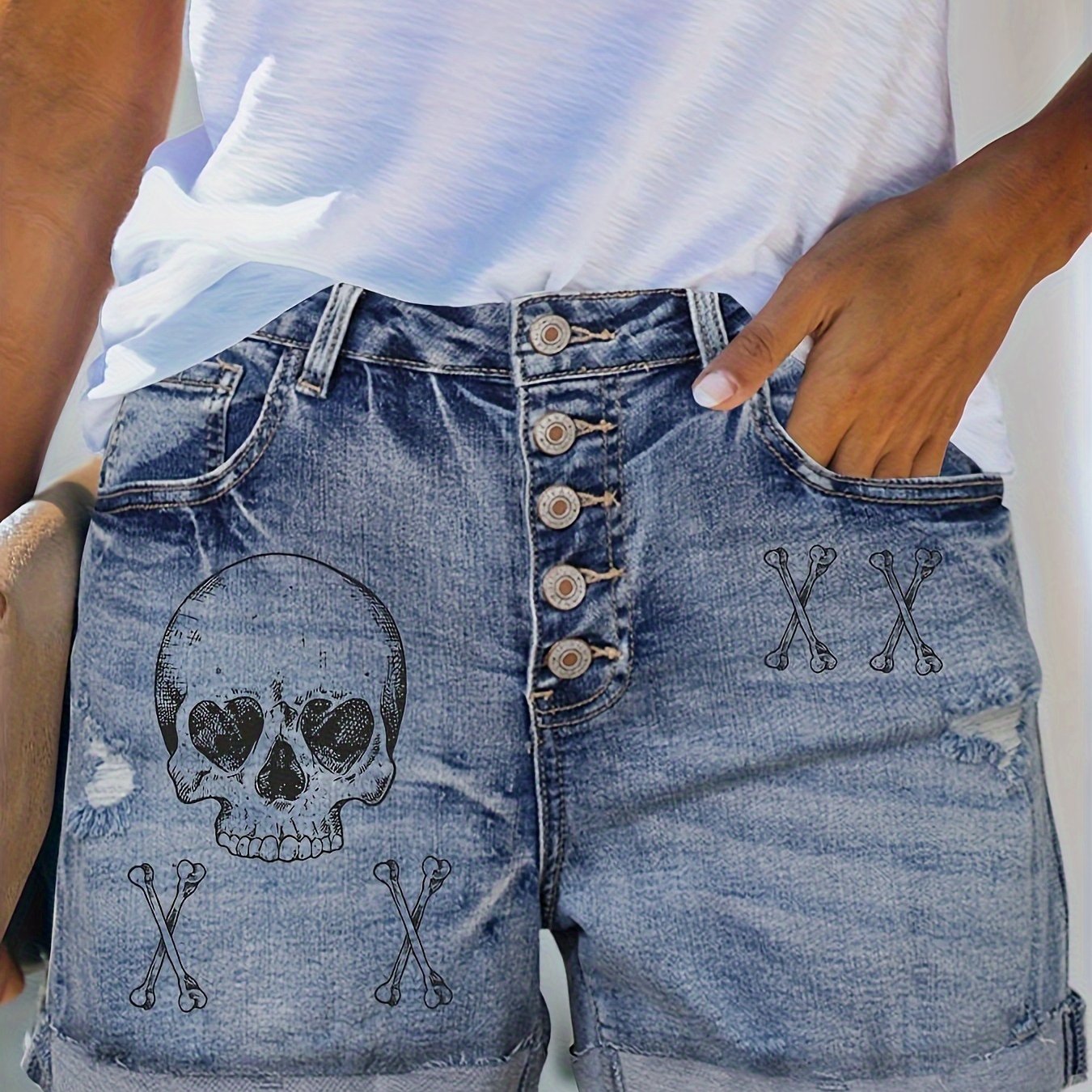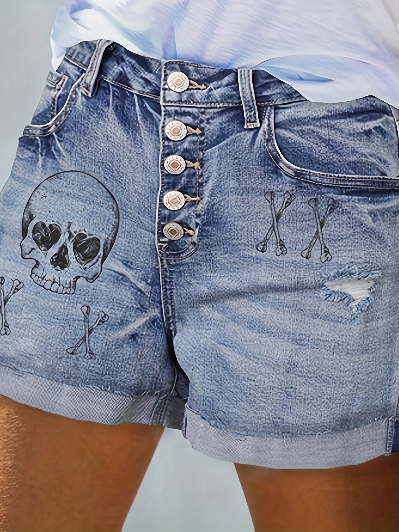 Женские рваные джинсовые шорты с готическим панком и принтом черепа, большой размер, высокая эластичность